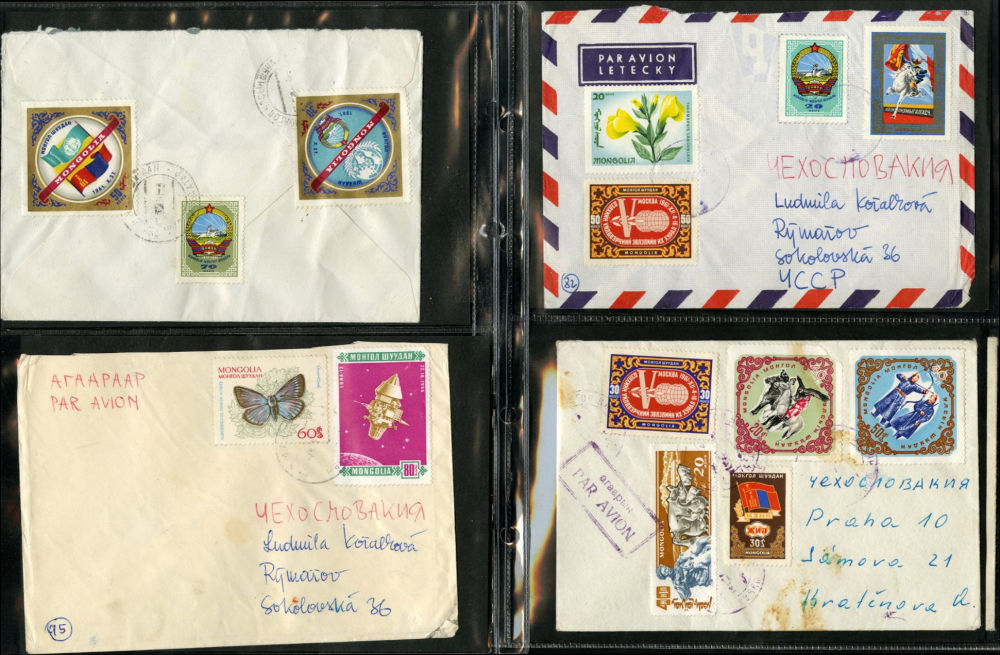 1407 COVER   imageMONGOLIA 1950s-70s collection of 140 covers (including a few postcards), variety of frankings, mostly commercial mail to Czechoslovakia, some registered, occasional flaws, mostly fine or better (Image) (Image 2) (Image 3) (Image 4) (Image 5) (Image 6) (Image 7) (Image 8) (Image 9) (Image 10) (Image 11) (Image 12) (Image 13) (All Images)