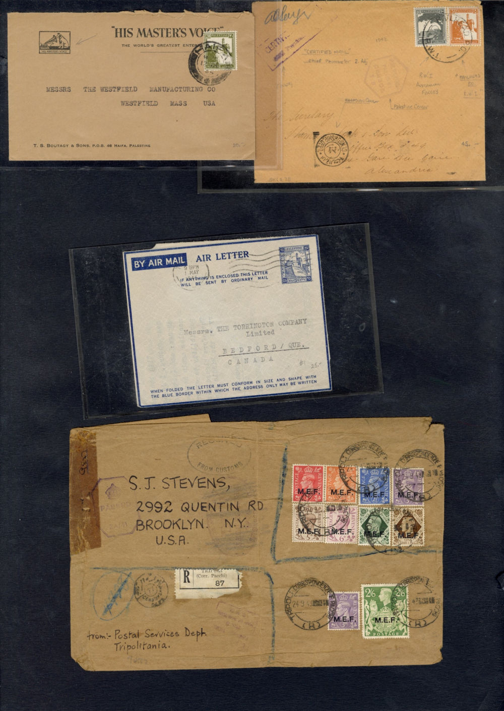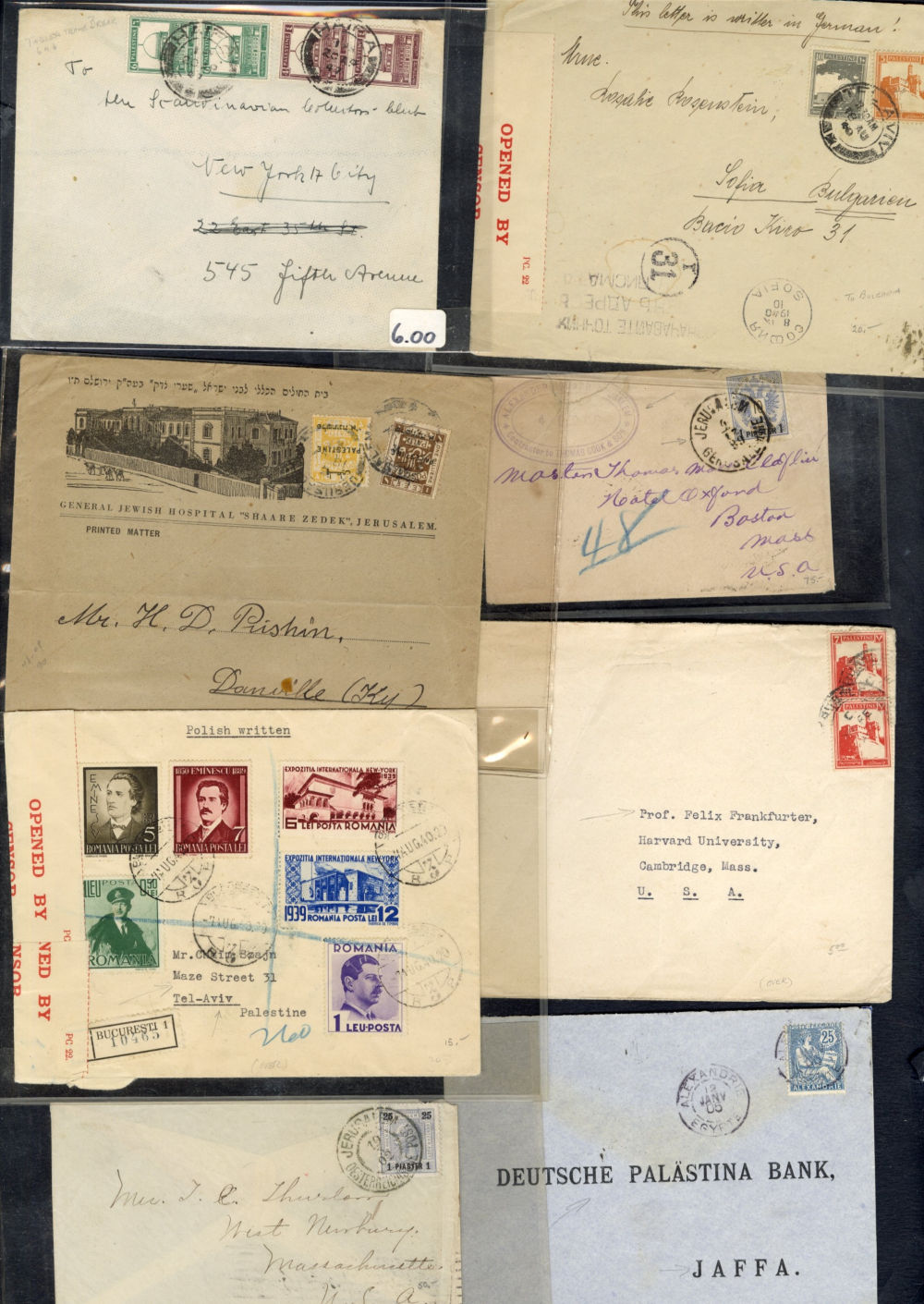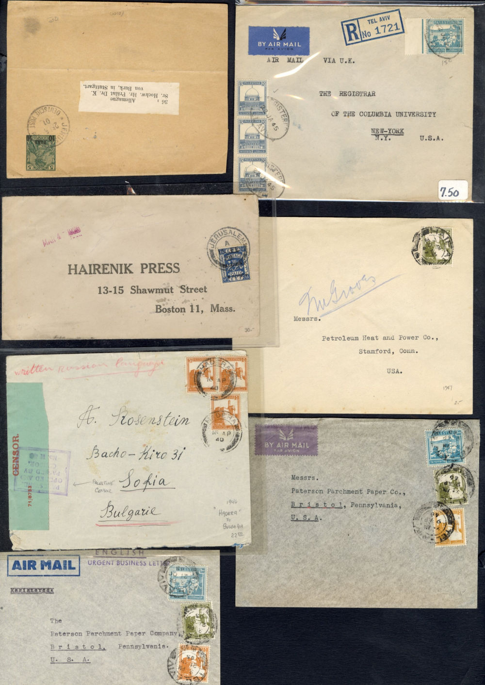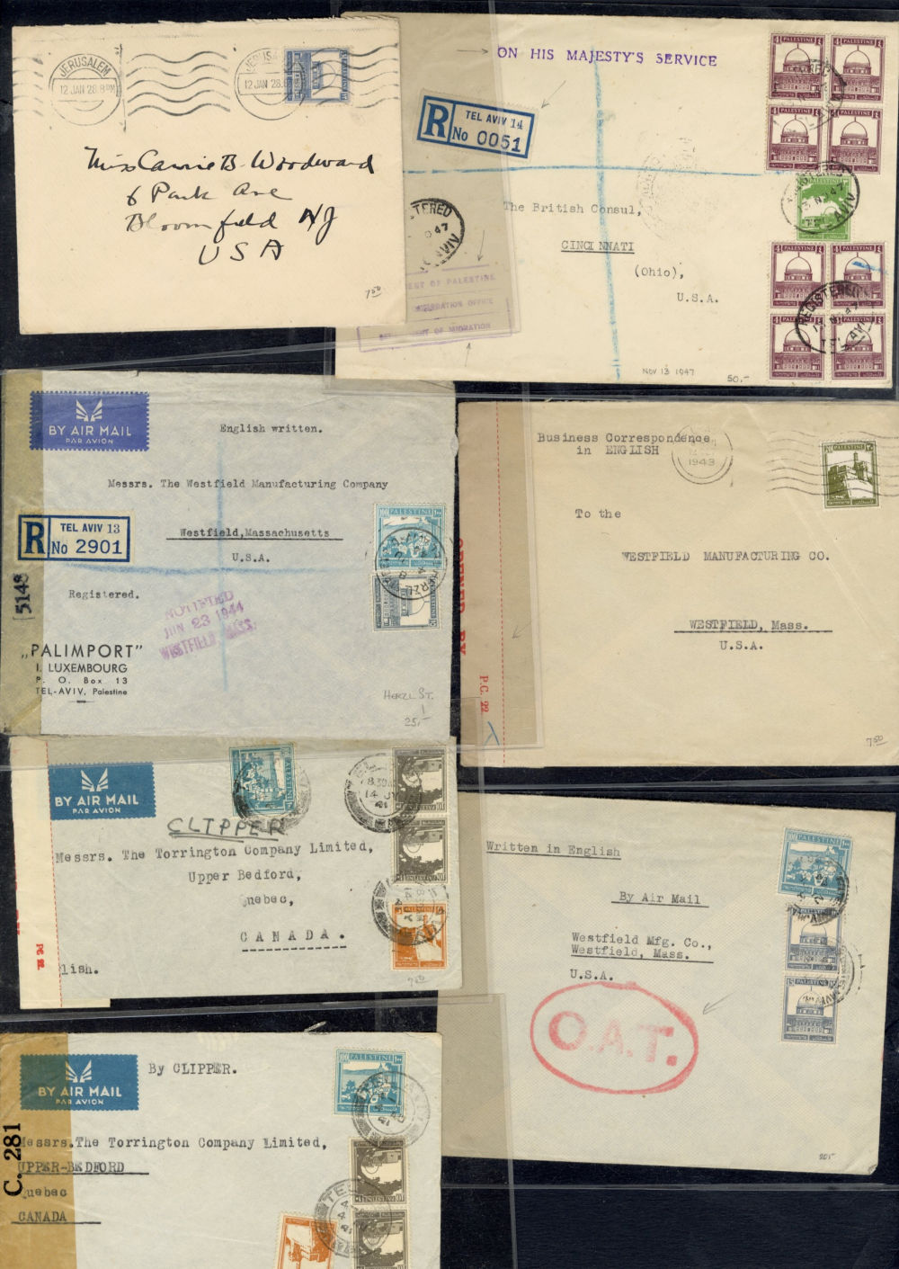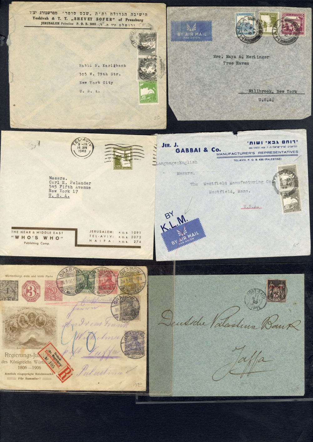 1411 COVER   imagePALESTINE 1900-40s selection of 60+ covers or cards, mostly British Mandate franking, some Registered mail, flights, censored, variety of destinations, some German and French Forerunner covers, few miscellaneous items, mostly fine or better (Image) (Image 2) (Image 3) (Image 4) (Image 5) (Image 6) (Image 7) (Image 8) (Image 9) (Image 10) (All Images)