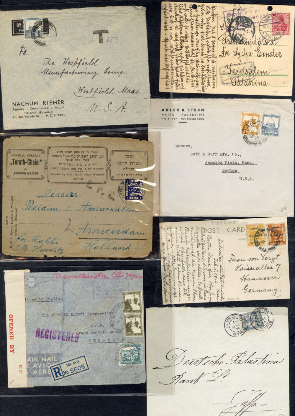 1412 O, og   PALESTINE 1900-45 collection of used and unused singles and sets, British Mandate issues, also 150+ covers or cards, range of Ottoman, Austrian, German and Italian offices in the Holyland, also Interim Period, 50 covers or cards, including Rishon Le Zion, registered mail, some with certificates, mixed condition, some interesting and worthwhile items