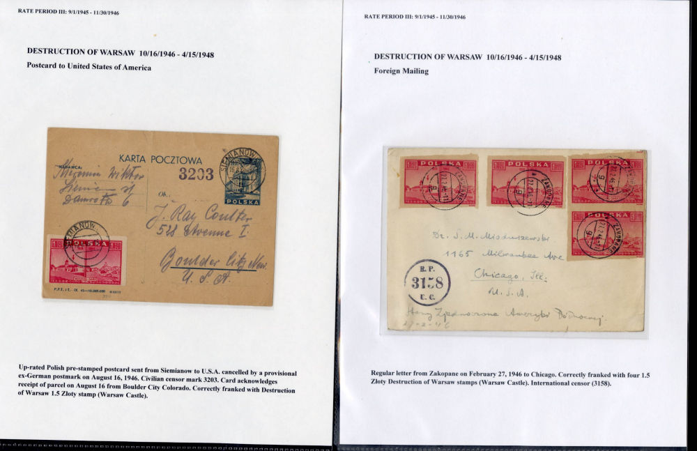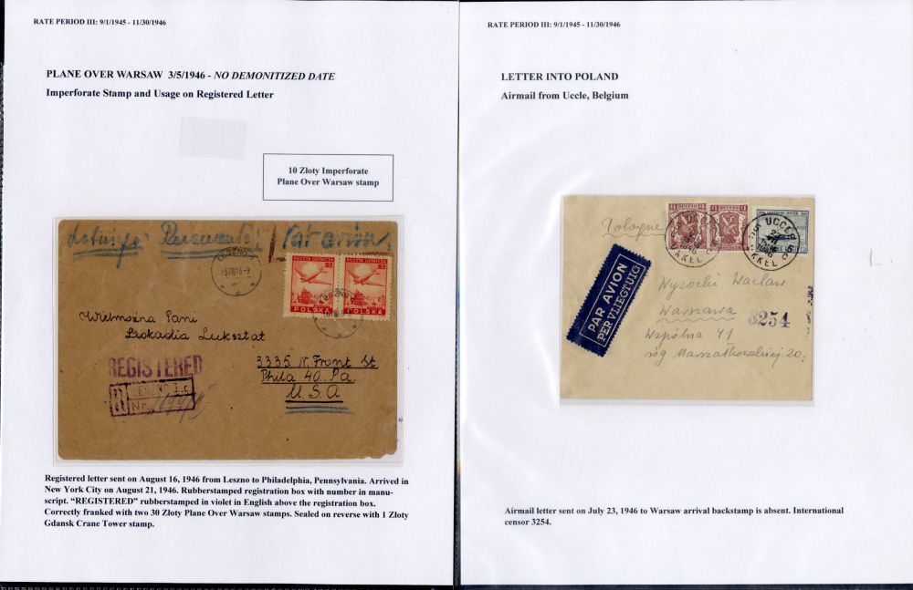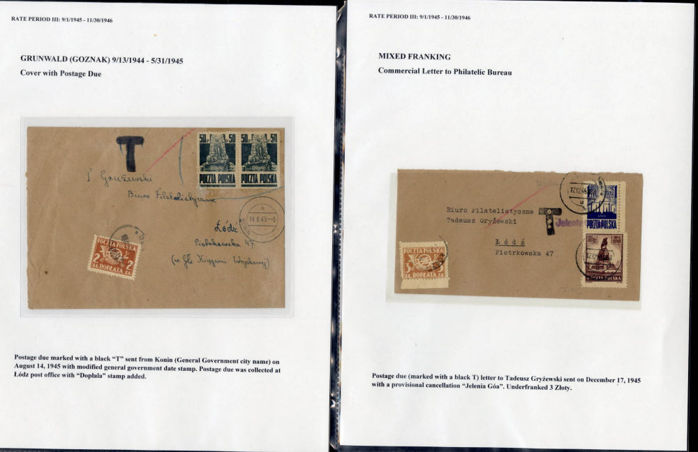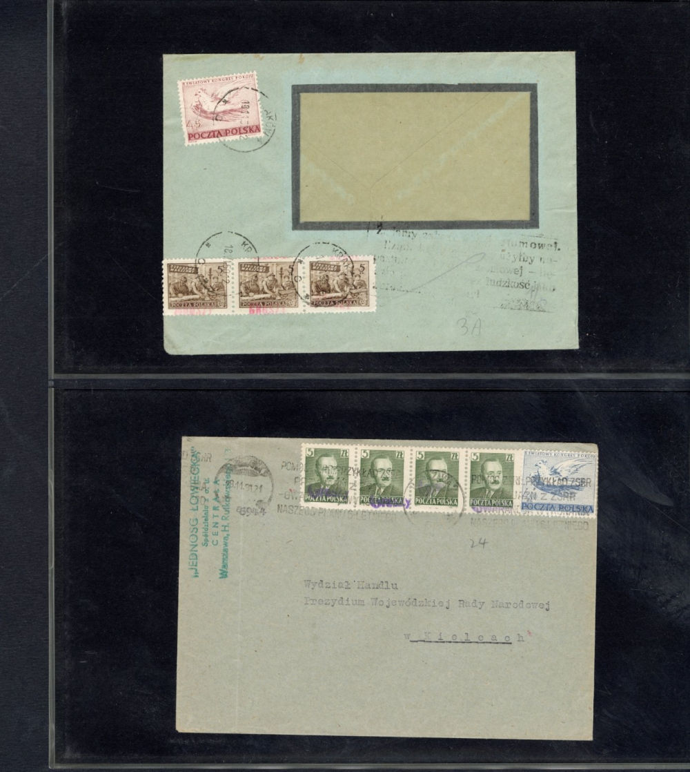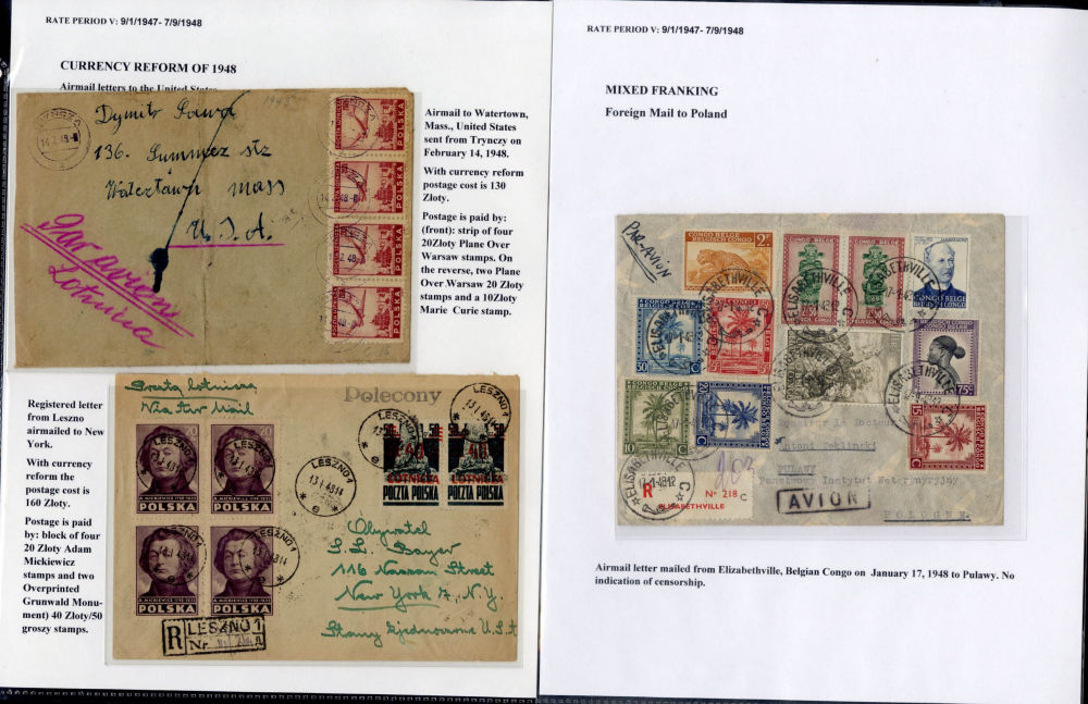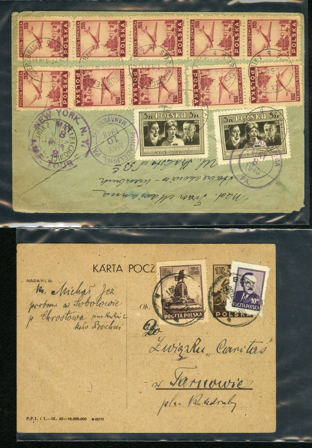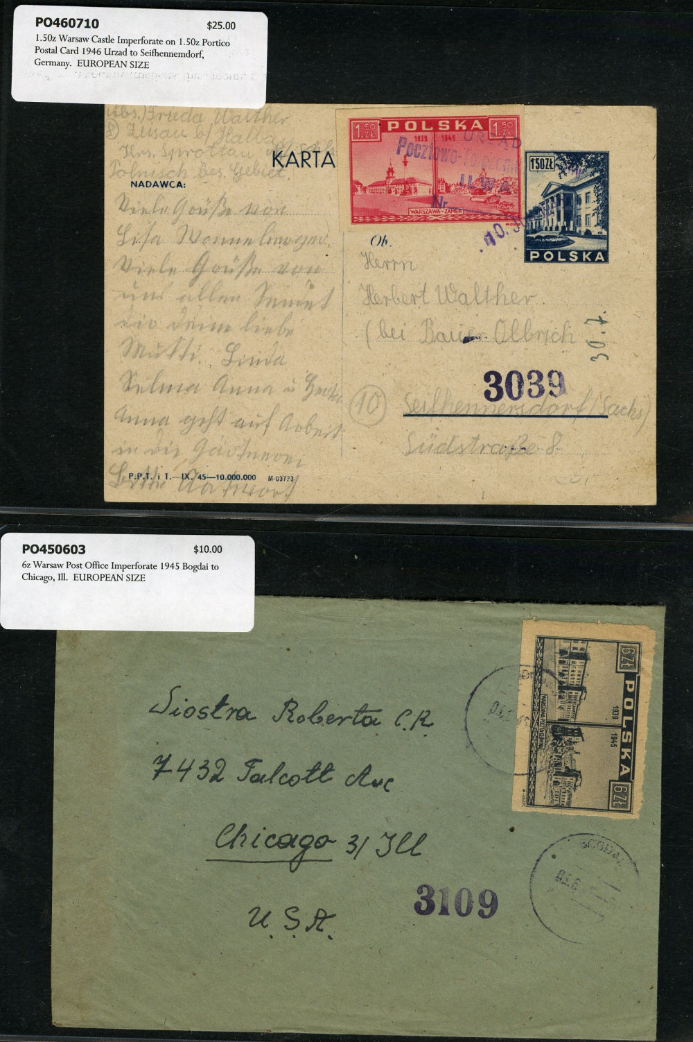 1419 COVER   imagePOLAND 1944-48 collection of 38 covers or cards on exhibit pages, showing mixed frankings, early usages, postage due letter, incoming mail, one from Belgian Congo to Pulawy, Currency Reform, Rate changes and combinations of issues, many quite scarce (Image) (Image 2) (Image 3) (Image 4) (Image 5) (Image 6) (Image 7) (Image 8) (Image 9) (Image 10) (Image 11) (Image 12) (Image 13) (Image 14) (Image 15) (Image 16) (Image 17) (Image 18) (Image 19) (Image 20) (Image 21) (All Images)