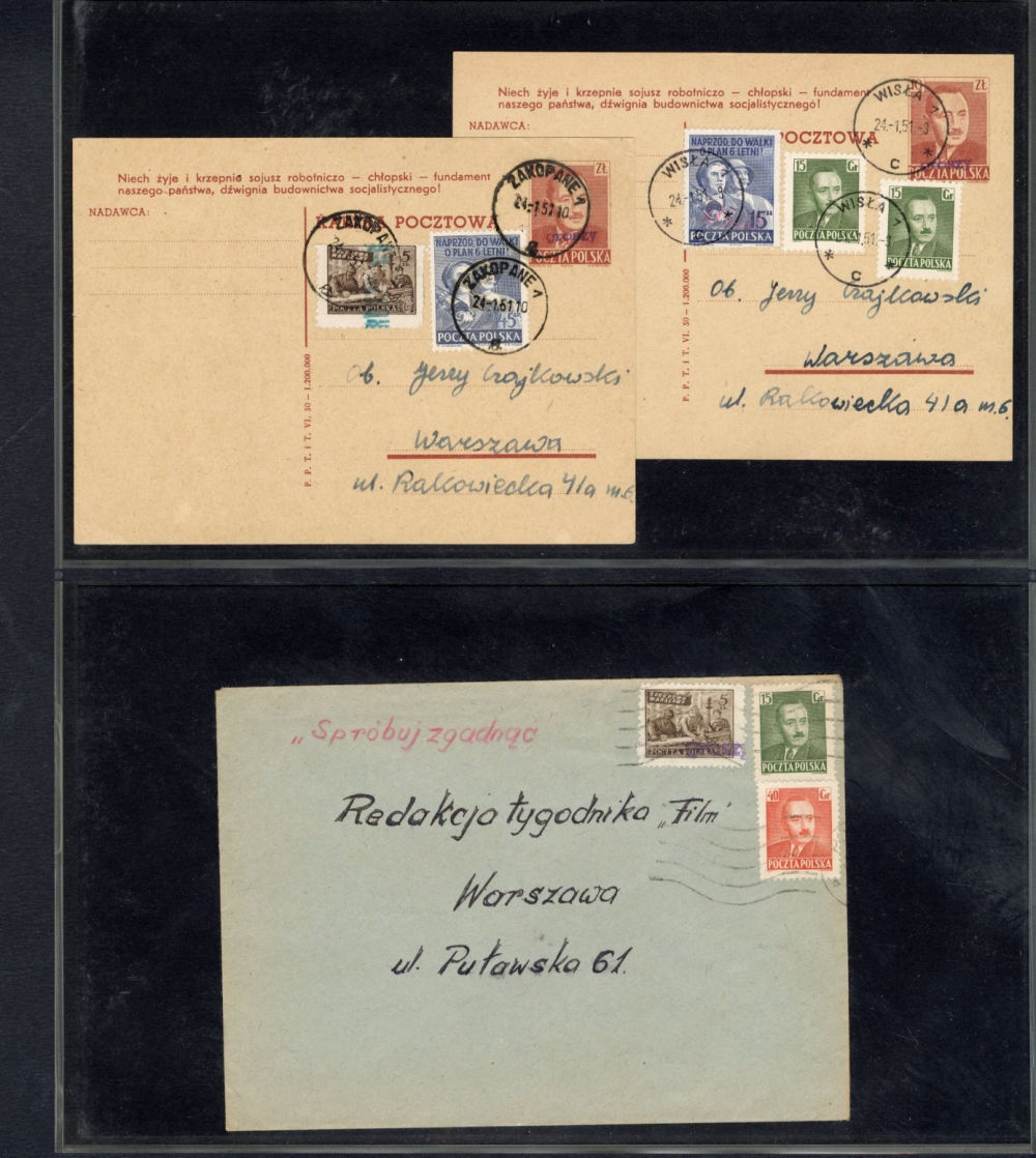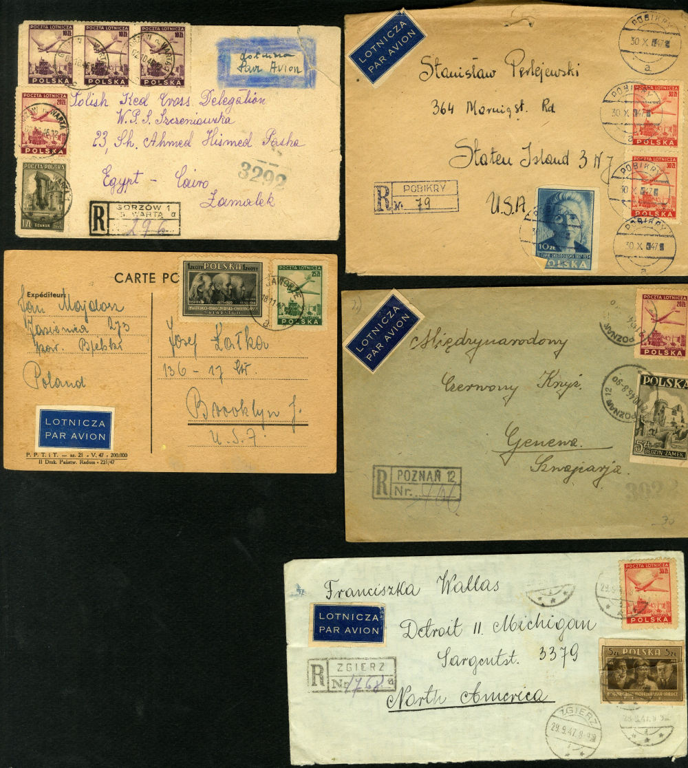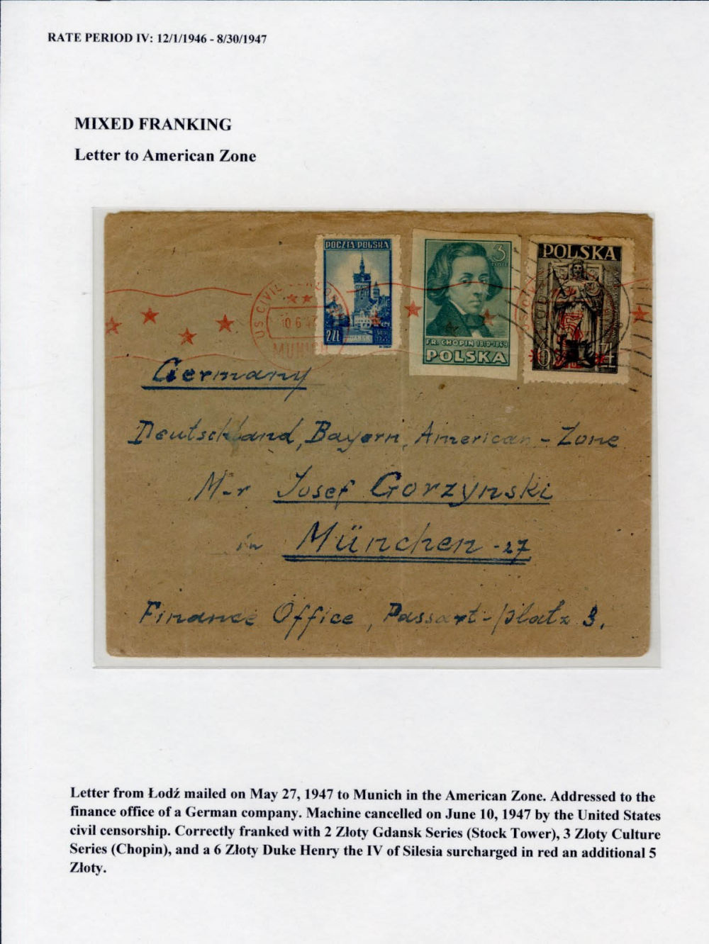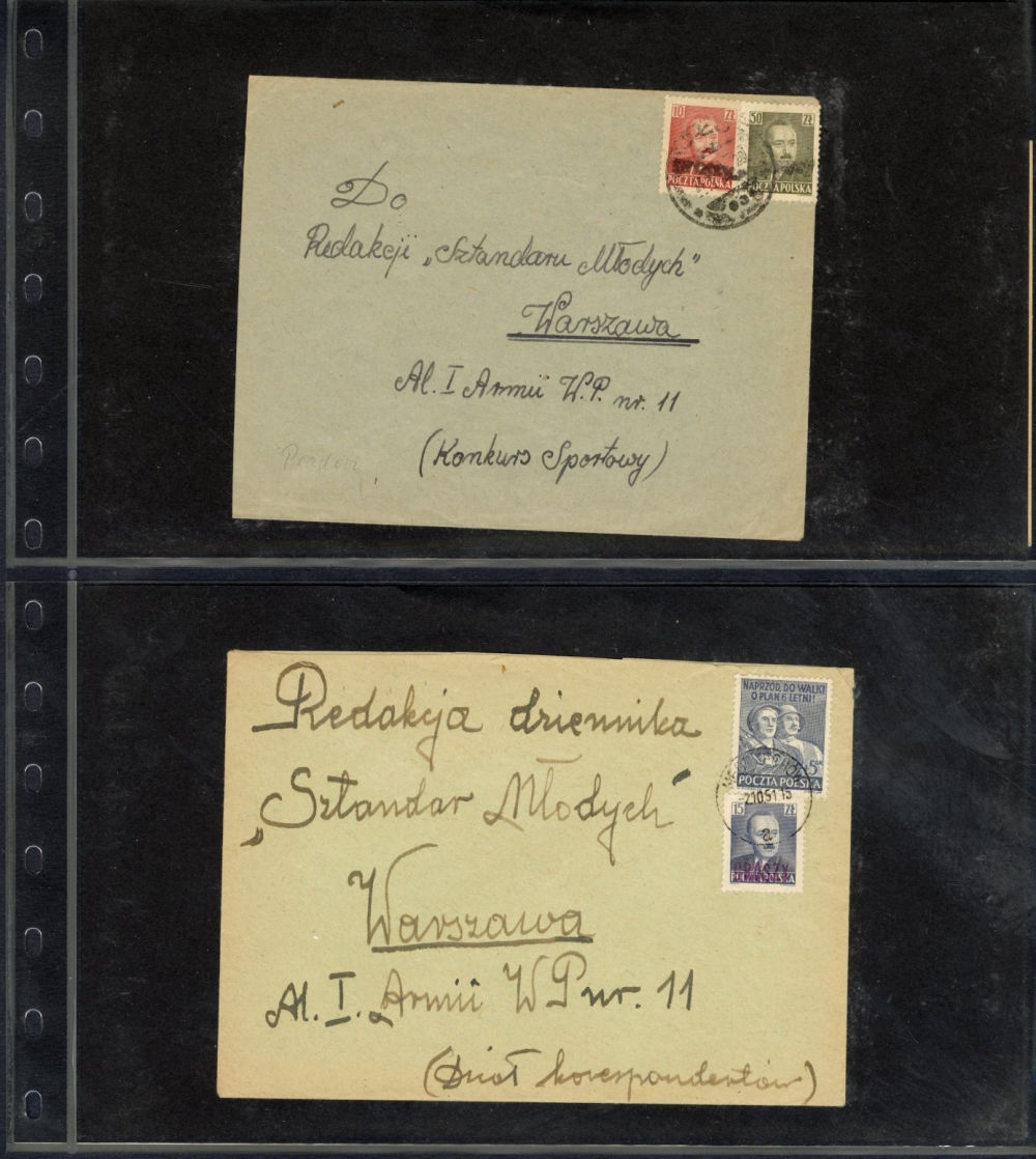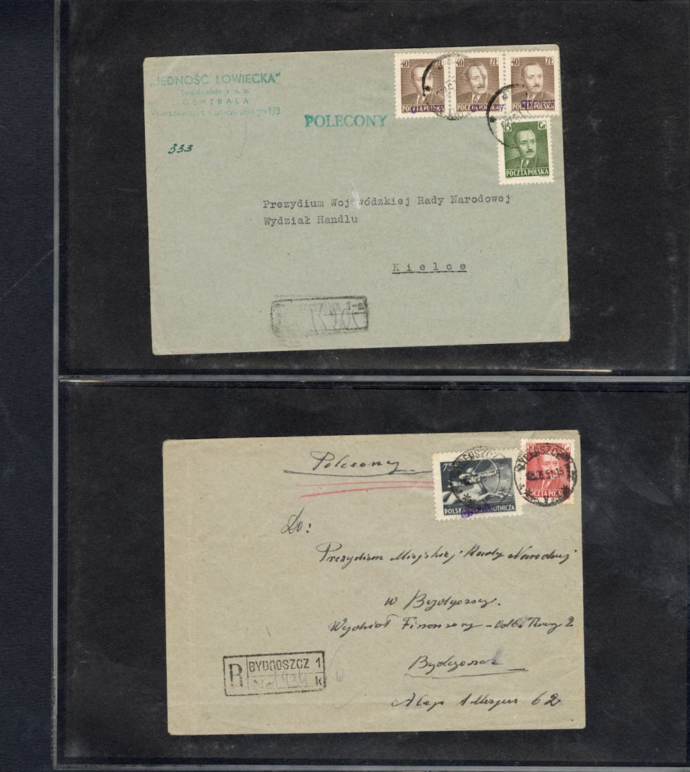 1419 COVER   imagePOLAND 1944-48 collection of 38 covers or cards on exhibit pages, showing mixed frankings, early usages, postage due letter, incoming mail, one from Belgian Congo to Pulawy, Currency Reform, Rate changes and combinations of issues, many quite scarce (Image) (Image 2) (Image 3) (Image 4) (Image 5) (Image 6) (Image 7) (Image 8) (Image 9) (Image 10) (Image 11) (Image 12) (Image 13) (Image 14) (Image 15) (Image 16) (Image 17) (Image 18) (Image 19) (Image 20) (Image 21) (All Images)