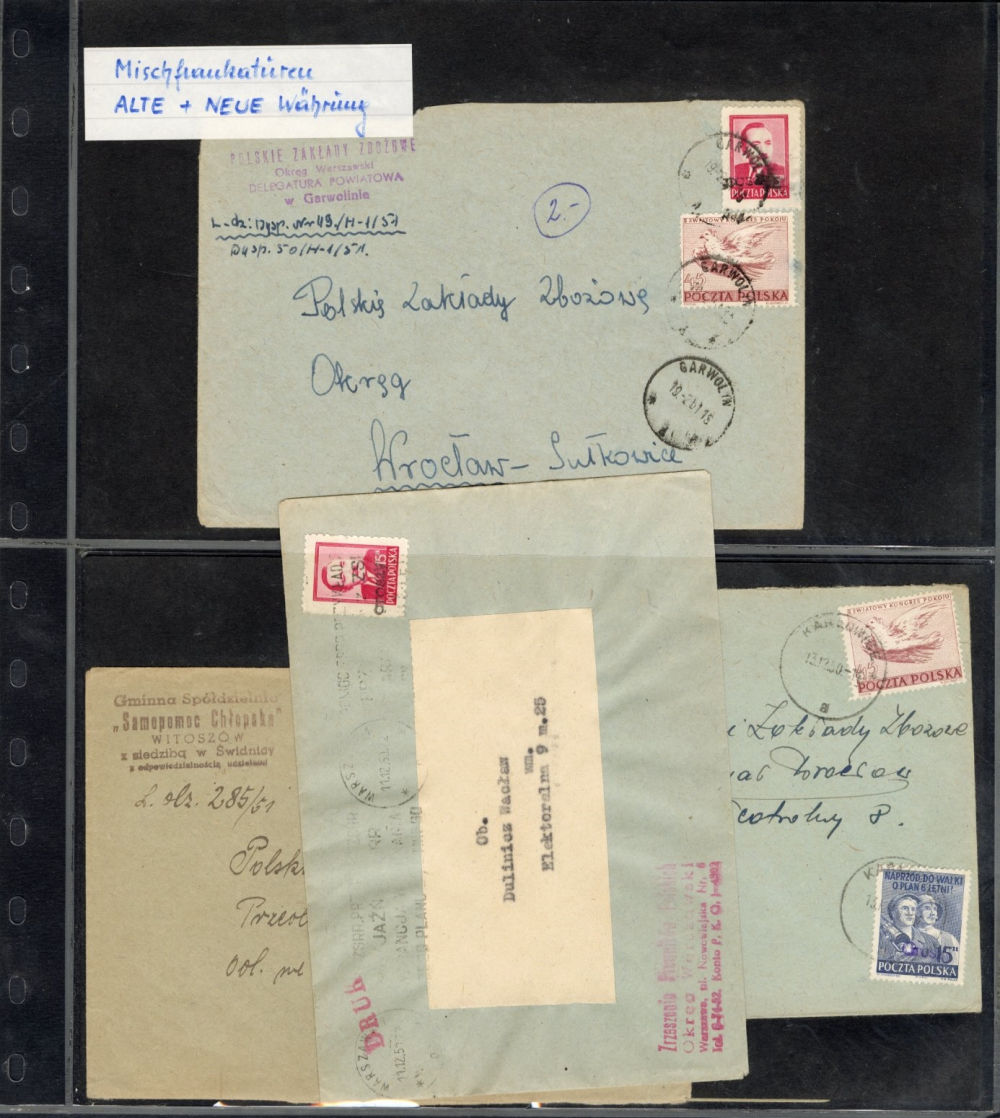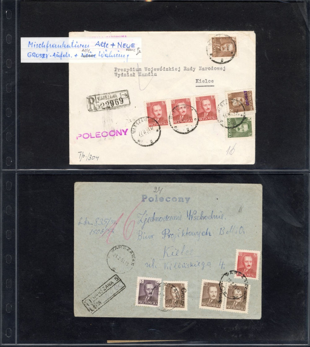 1416 O, og   imagePOLAND 1948-52 Currency Reform "Groszy", collection of hundreds, used and unused stamps, various towns, hence different types of handstamps, red, violet, black, some varieties, occasional covers, better items, mixed frankings, combinations, postage dues, official mail, etc., interesting lot, with good potential for further study and expansion (Image) (Image 2) (Image 3) (Image 4) (Image 5) (Image 6) (Image 7) (Image 8) (Image 9) (Image 10) (Image 11) (Image 12) (Image 13) (Image 14) (All Images)