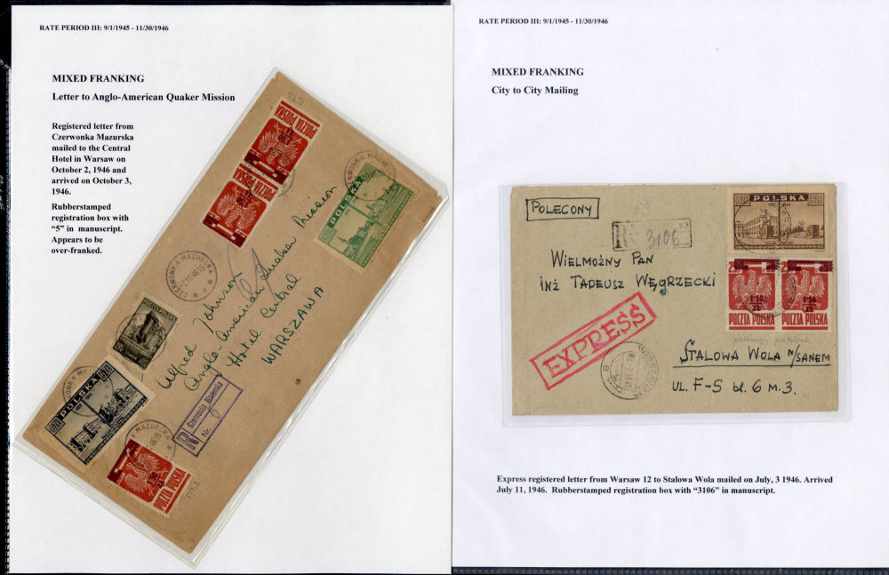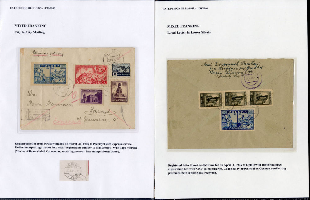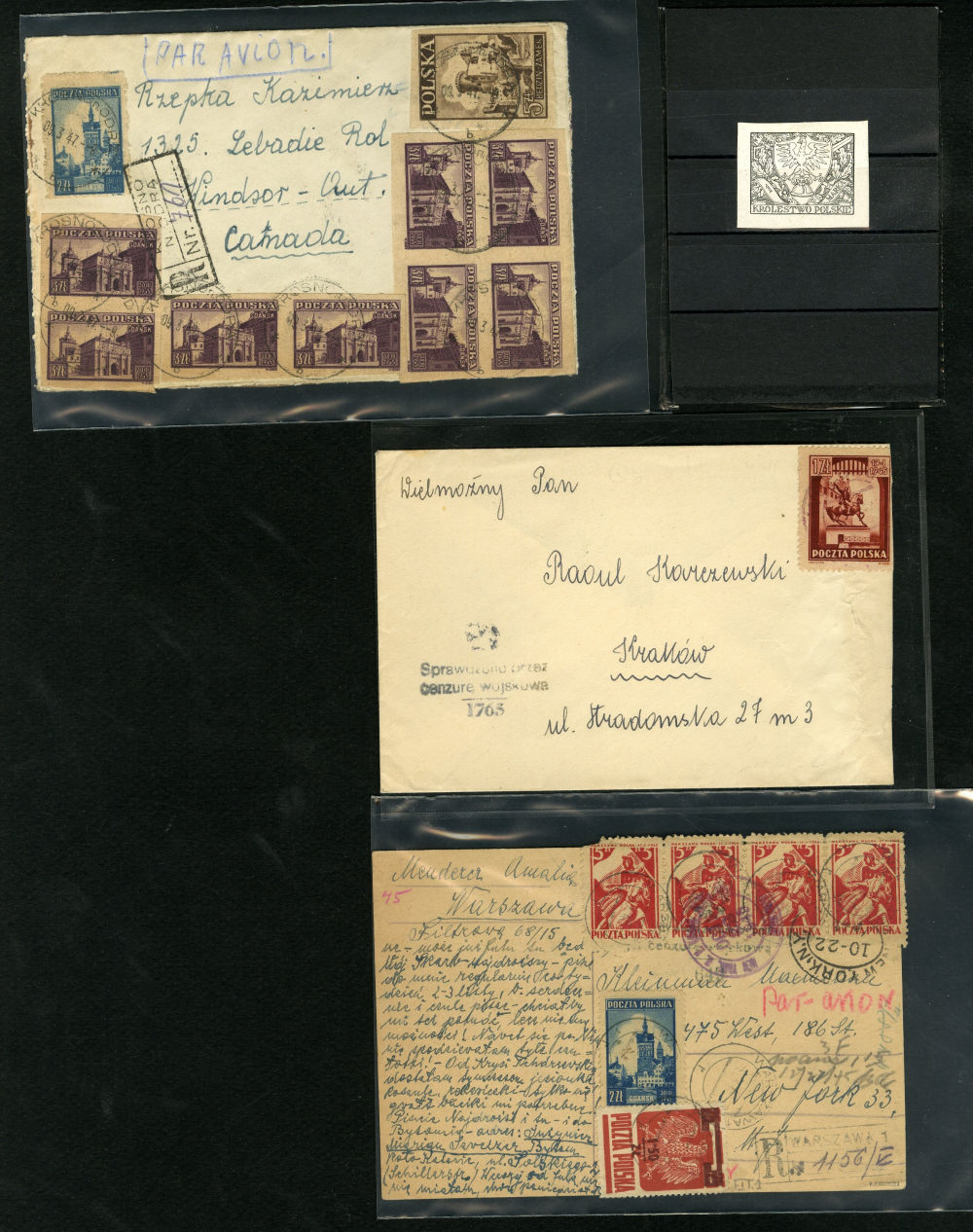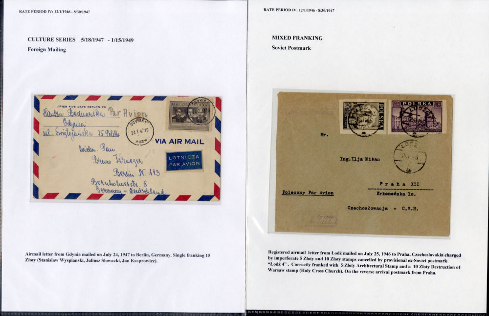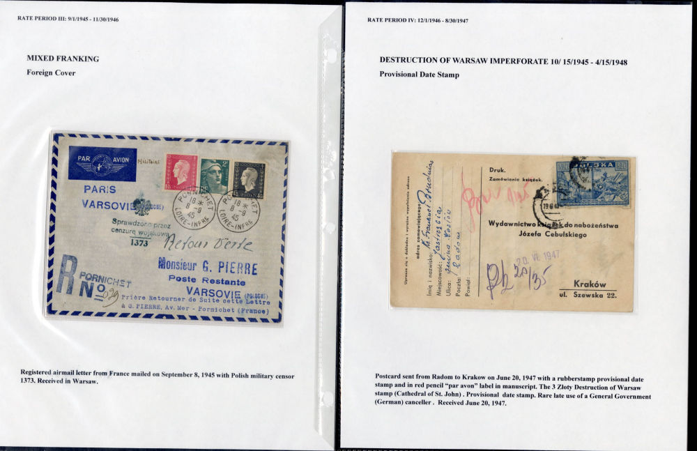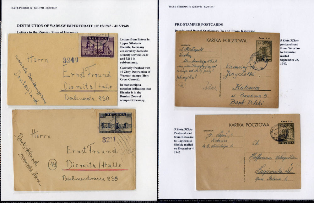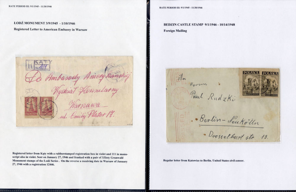 1420 COVER   imagePOLAND 1944-48 collection of 110+ covers or cards, some on exhibit pages, intended to illustrate five Postal Rate periods from August 1944 to September 1948, internal and foreign destinations, including two covers used by the Russian military, sent from Kolbuszowo and Stalowa Wola to Tbilisi in Soviet Georgia, City Surcharges on covers or cards (also unused set of blocks of four), varieties, miscellaneous items and more, some quite scarce, mixed condition, generally fine (Image) (Image 2) (Image 3) (Image 4) (Image 5) (Image 6) (Image 7) (Image 8) (Image 9) (Image 10) (Image 11) (Image 12) (Image 13) (Image 14) (Image 15) (Image 16) (Image 17) (Image 18) (Image 19) (Image 20) (Image 21) (Image 22) (Image 23) (Image 24) (Image 25) (Image 26) (Image 27) (Image 28) (Image 29) (Image 30) (Image 31) (Image 32) (Image 33) (All Images)