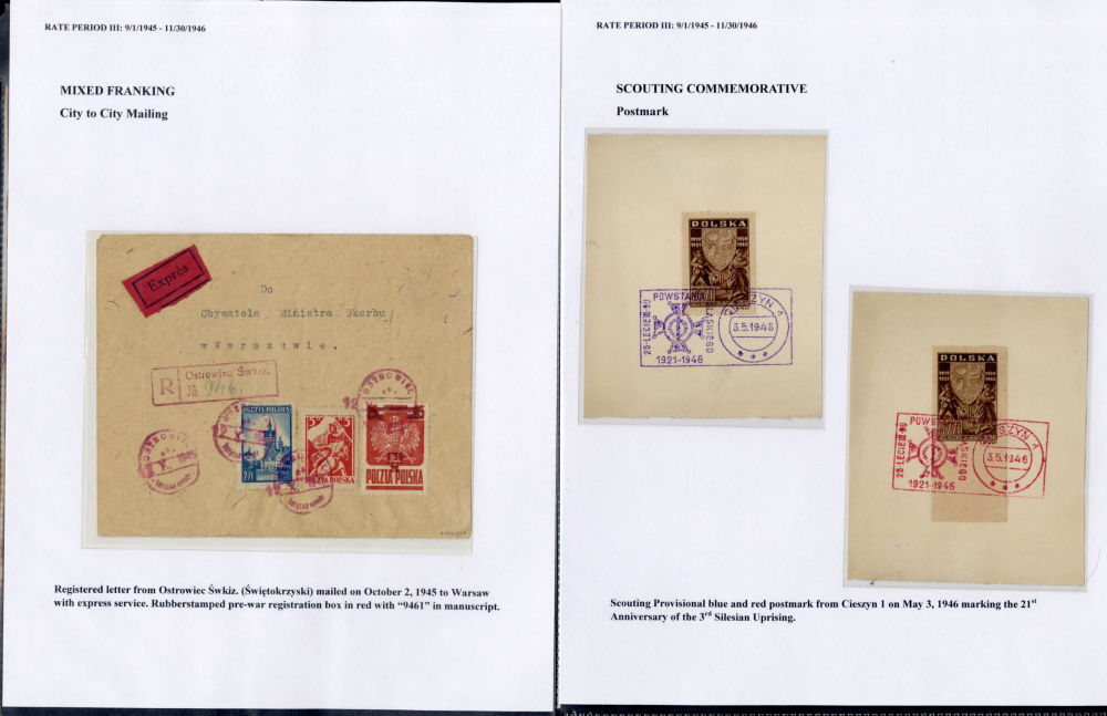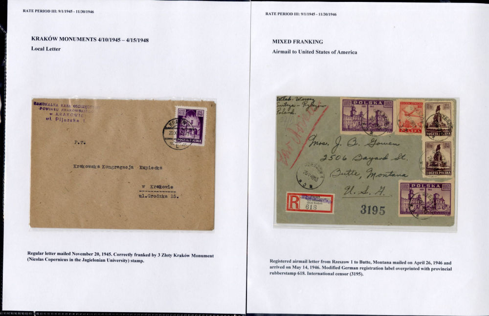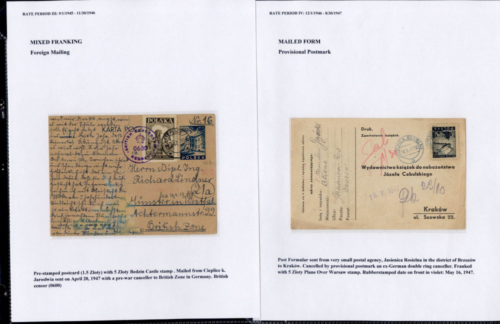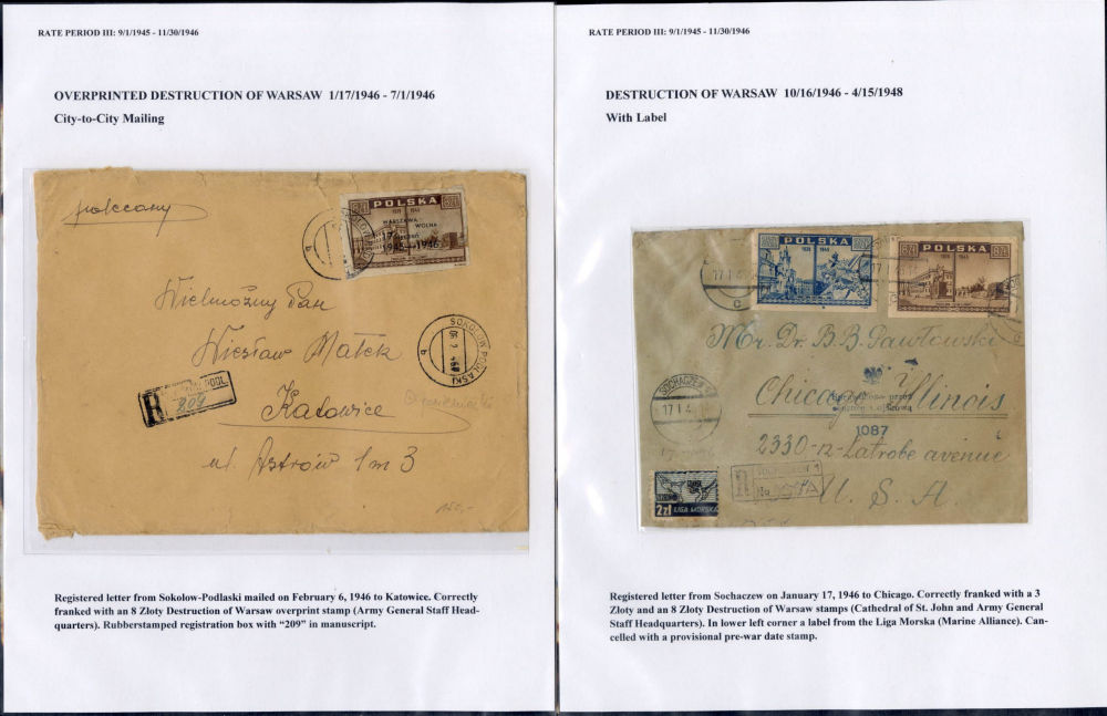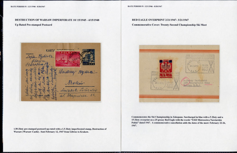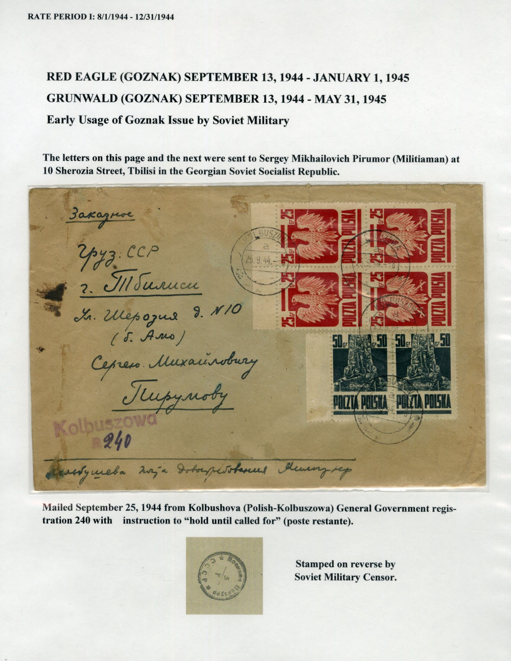 1420 COVER   imagePOLAND 1944-48 collection of 110+ covers or cards, some on exhibit pages, intended to illustrate five Postal Rate periods from August 1944 to September 1948, internal and foreign destinations, including two covers used by the Russian military, sent from Kolbuszowo and Stalowa Wola to Tbilisi in Soviet Georgia, City Surcharges on covers or cards (also unused set of blocks of four), varieties, miscellaneous items and more, some quite scarce, mixed condition, generally fine (Image) (Image 2) (Image 3) (Image 4) (Image 5) (Image 6) (Image 7) (Image 8) (Image 9) (Image 10) (Image 11) (Image 12) (Image 13) (Image 14) (Image 15) (Image 16) (Image 17) (Image 18) (Image 19) (Image 20) (Image 21) (Image 22) (Image 23) (Image 24) (Image 25) (Image 26) (Image 27) (Image 28) (Image 29) (Image 30) (Image 31) (Image 32) (Image 33) (All Images)