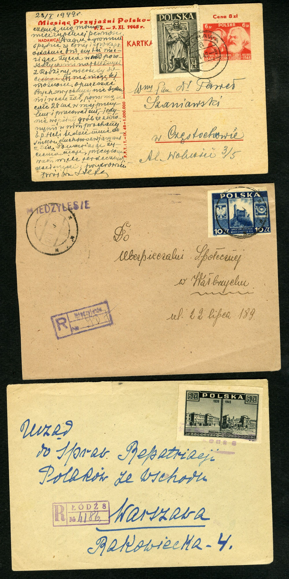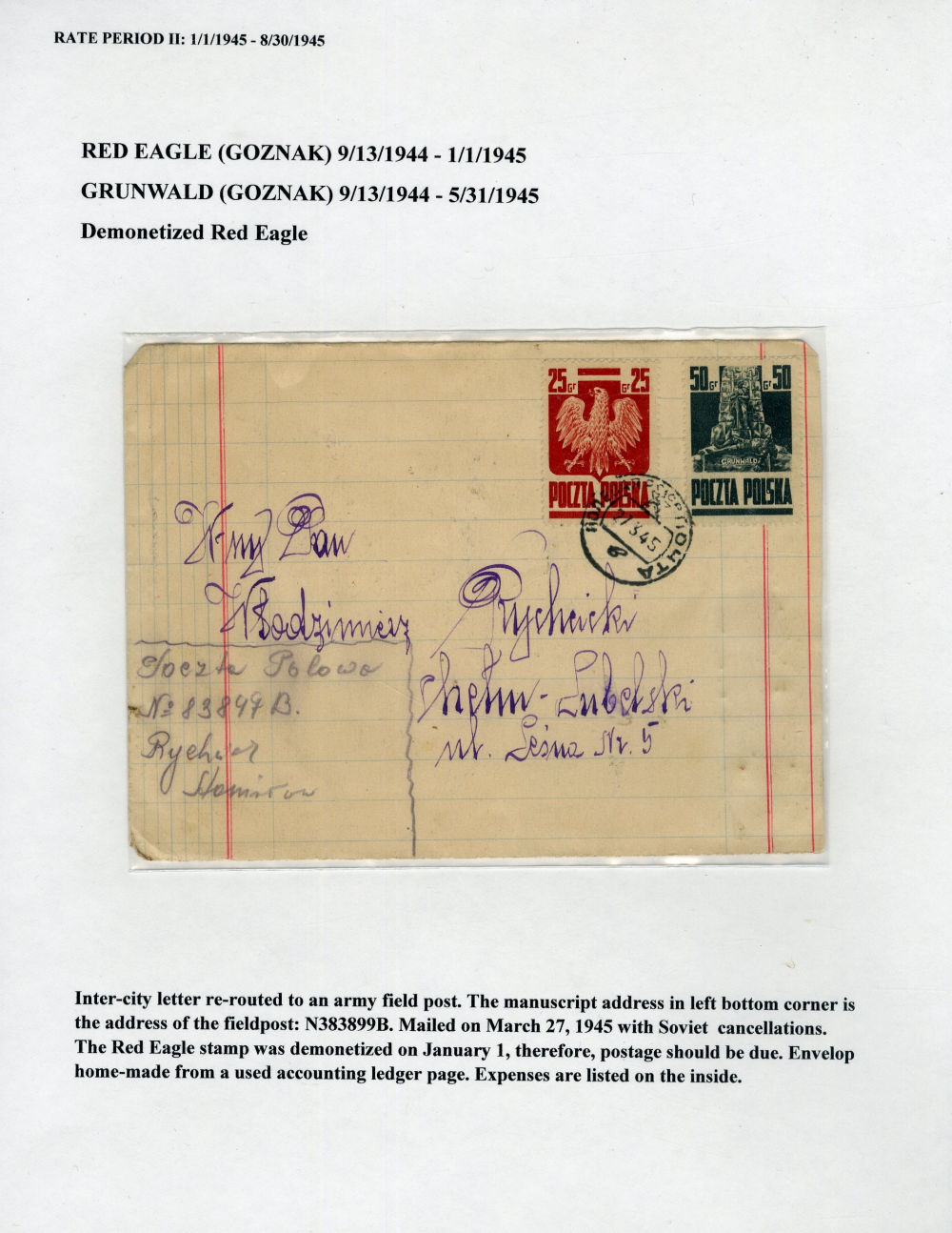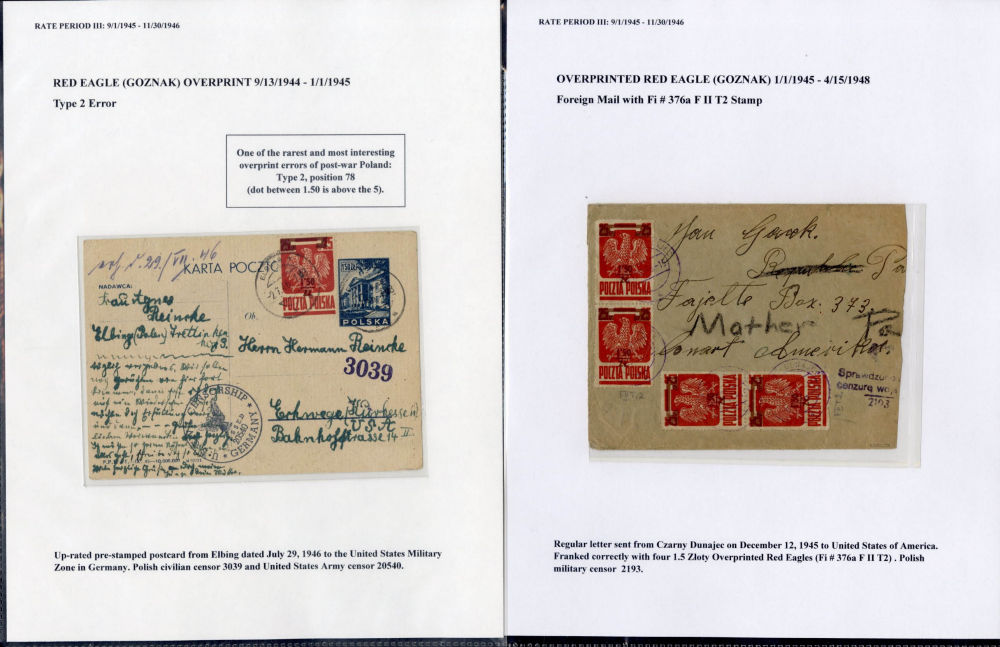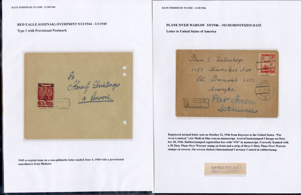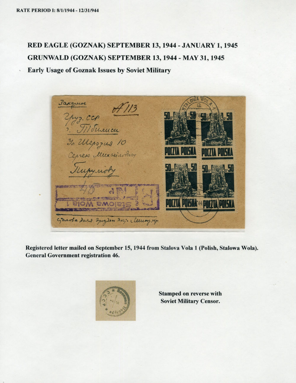 1420 COVER   imagePOLAND 1944-48 collection of 110+ covers or cards, some on exhibit pages, intended to illustrate five Postal Rate periods from August 1944 to September 1948, internal and foreign destinations, including two covers used by the Russian military, sent from Kolbuszowo and Stalowa Wola to Tbilisi in Soviet Georgia, City Surcharges on covers or cards (also unused set of blocks of four), varieties, miscellaneous items and more, some quite scarce, mixed condition, generally fine (Image) (Image 2) (Image 3) (Image 4) (Image 5) (Image 6) (Image 7) (Image 8) (Image 9) (Image 10) (Image 11) (Image 12) (Image 13) (Image 14) (Image 15) (Image 16) (Image 17) (Image 18) (Image 19) (Image 20) (Image 21) (Image 22) (Image 23) (Image 24) (Image 25) (Image 26) (Image 27) (Image 28) (Image 29) (Image 30) (Image 31) (Image 32) (Image 33) (All Images)