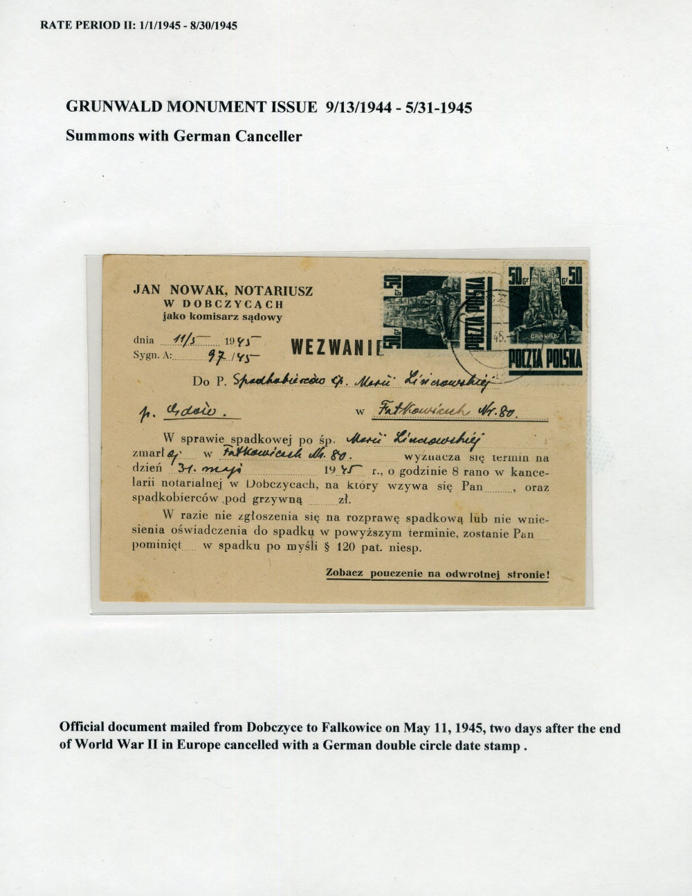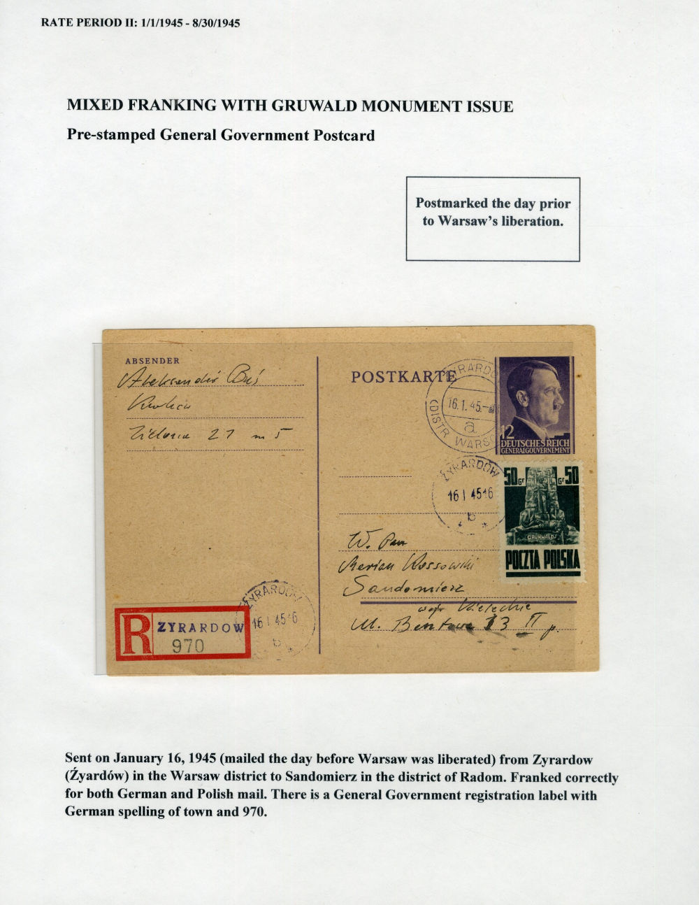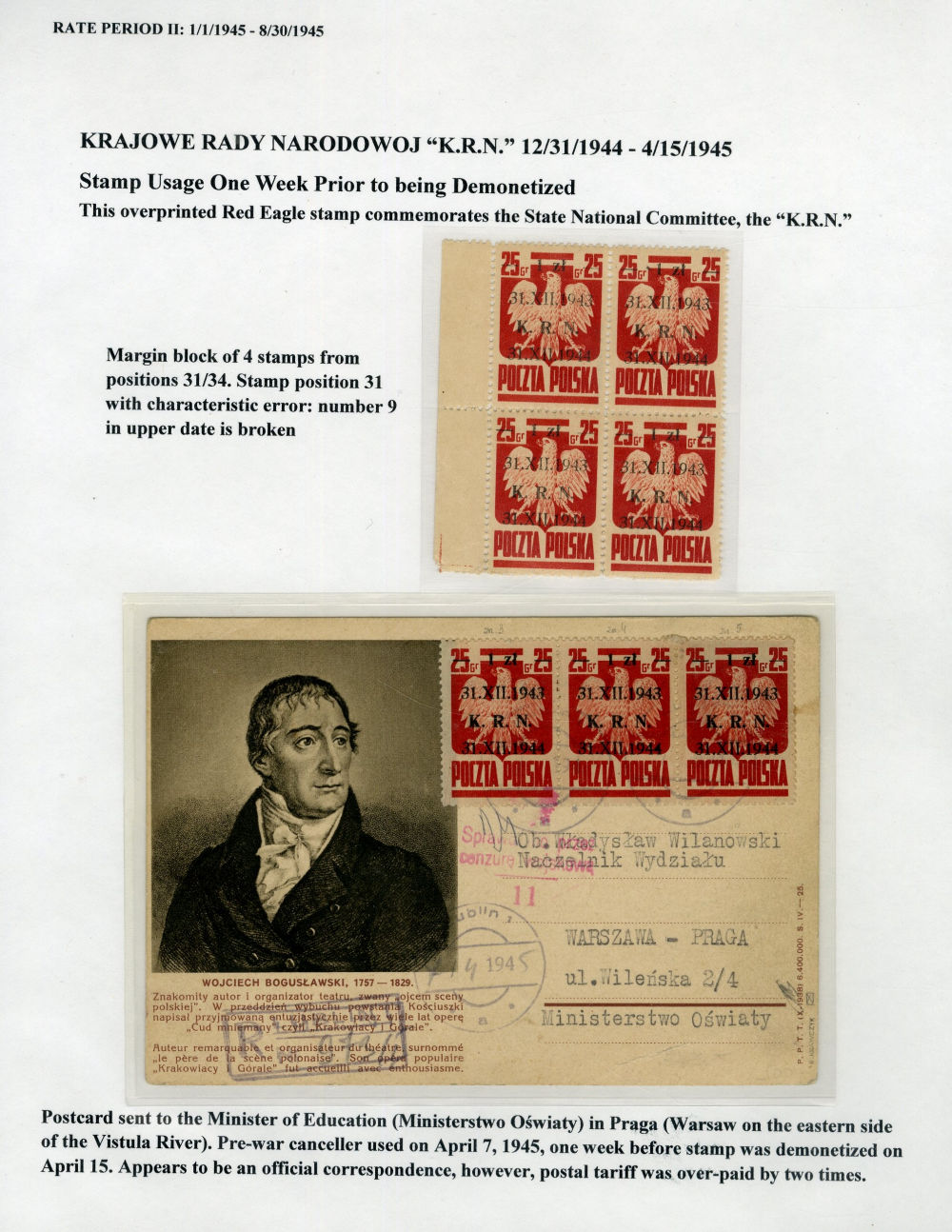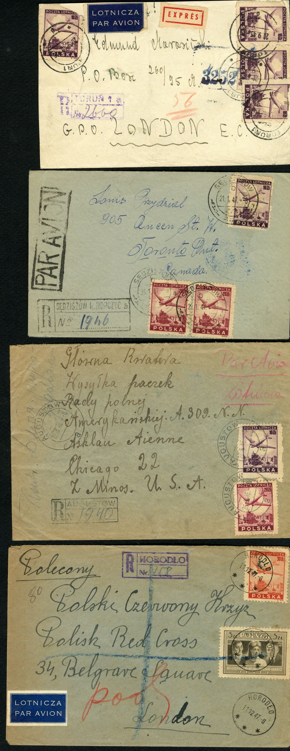 1420 COVER   imagePOLAND 1944-48 collection of 110+ covers or cards, some on exhibit pages, intended to illustrate five Postal Rate periods from August 1944 to September 1948, internal and foreign destinations, including two covers used by the Russian military, sent from Kolbuszowo and Stalowa Wola to Tbilisi in Soviet Georgia, City Surcharges on covers or cards (also unused set of blocks of four), varieties, miscellaneous items and more, some quite scarce, mixed condition, generally fine (Image) (Image 2) (Image 3) (Image 4) (Image 5) (Image 6) (Image 7) (Image 8) (Image 9) (Image 10) (Image 11) (Image 12) (Image 13) (Image 14) (Image 15) (Image 16) (Image 17) (Image 18) (Image 19) (Image 20) (Image 21) (Image 22) (Image 23) (Image 24) (Image 25) (Image 26) (Image 27) (Image 28) (Image 29) (Image 30) (Image 31) (Image 32) (Image 33) (All Images)