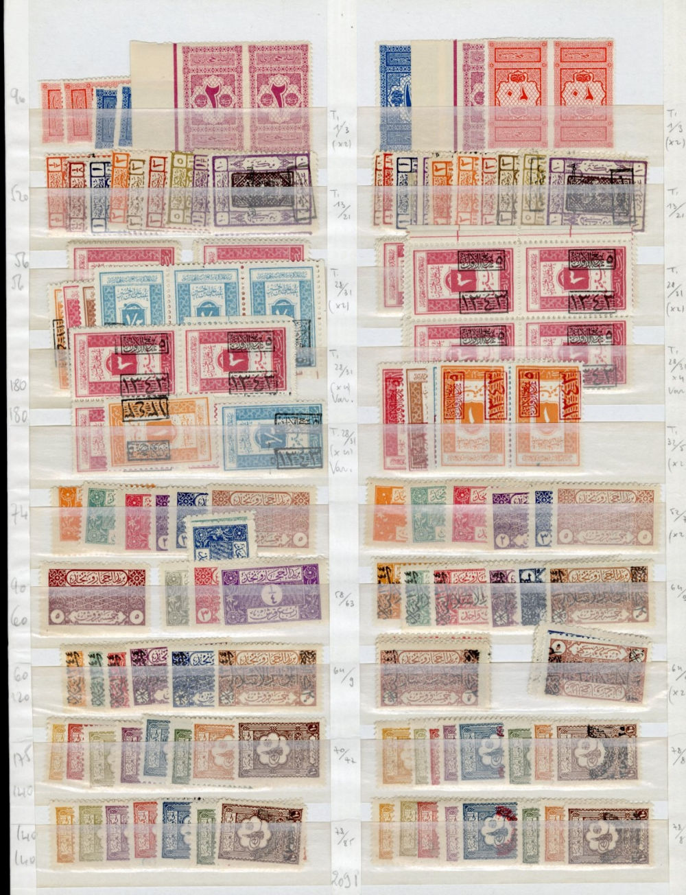 1428 O, og   imageSAUDI ARABIA 1916-75 Hejaz, Jedda and Kingdom of Saudi Arabia issues, duplicated selection of singles and sets on cards, many better items included, few blocks of four, generally unused, many n.h., fine-v.f., Michel Euro 10,000+ (Image) (Image 2) (Image 3) (Image 4) (Image 5) (All Images)