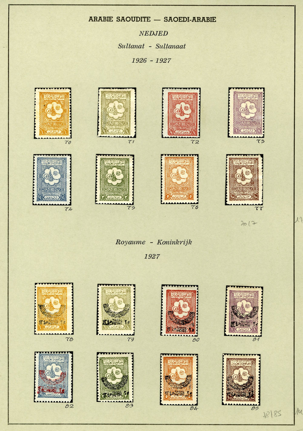 1429 og, nh   imageSAUDI ARABIA 1926-95 collection virtually complete on pages, with Proclamation set imperf., regular issues and commemoratives, souvenir sheets, Air Post, Postage Dues, h.r. or n.h. (from 1970s), fine-v.f. (Image) (Image 2) (Image 3) (Image 4) (Image 5) (Image 6) (Image 7) (Image 8) (Image 9) (Image 10) (Image 11) (Image 12) (Image 13) (Image 14) (Image 15) (Image 16) (Image 17) (Image 18) (Image 19) (Image 20) (Image 21) (Image 22) (Image 23) (Image 24) (Image 25) (Image 26) (Image 27) (All Images)