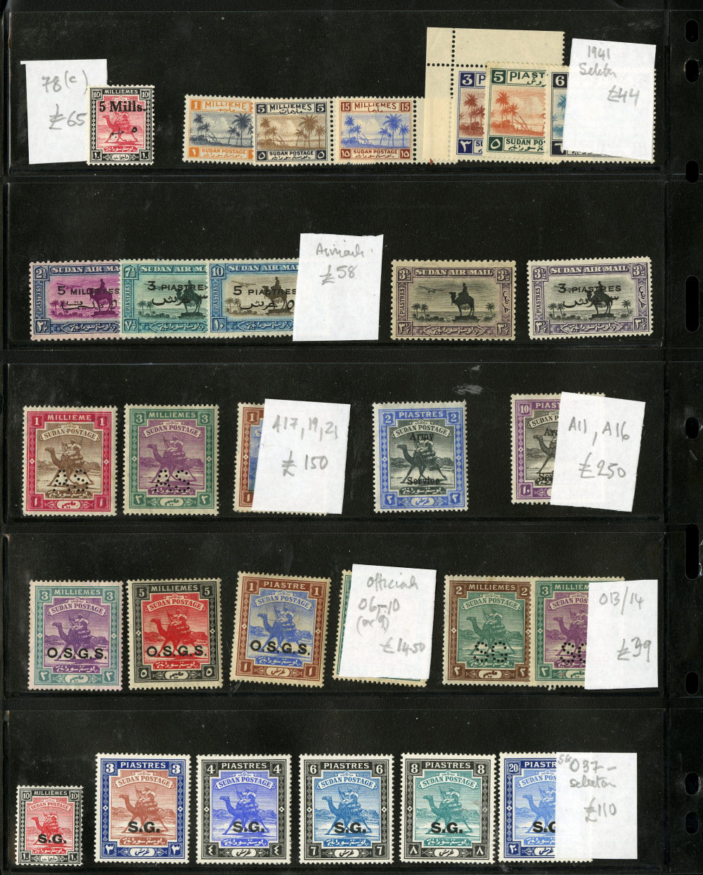 1432 O, og   imageSUDAN 1897-1935 collection on pages, with overprints and officials, also additional singles, sets, varieties, perfins, overprints, etc., few used, others l.h. or h.r, few n.h., fine-v.f., SG £6,000 (Image) (Image 2) (Image 3) (Image 4) (Image 5) (Image 6) (Image 7) (Image 8) (Image 9) (Image 10) (Image 11) (Image 12) (All Images)