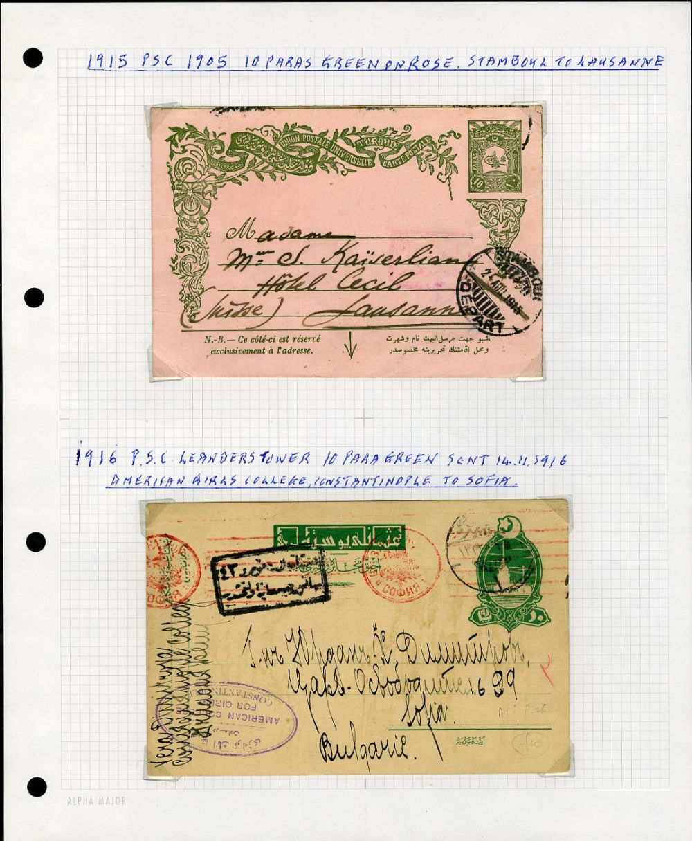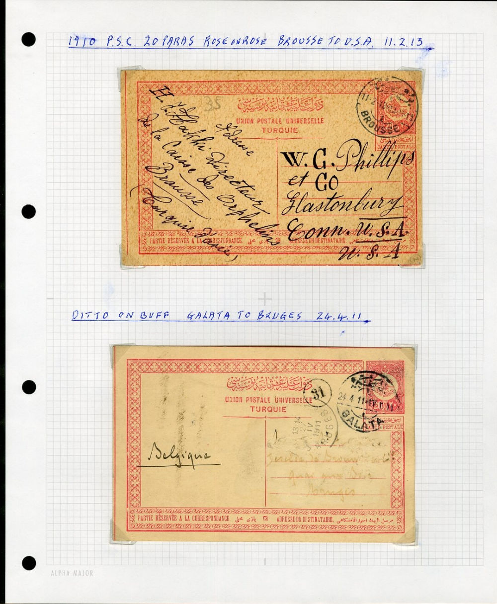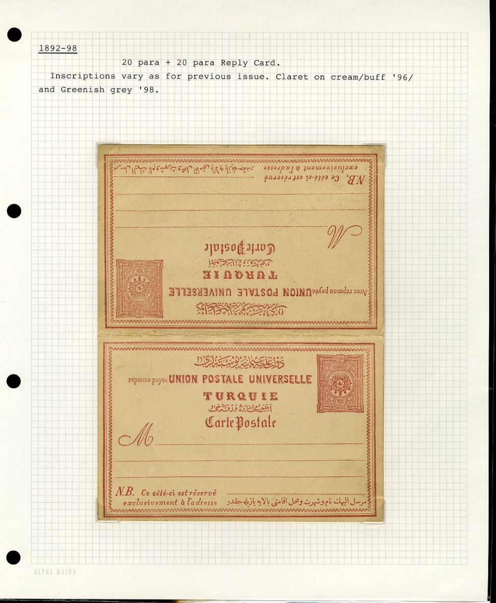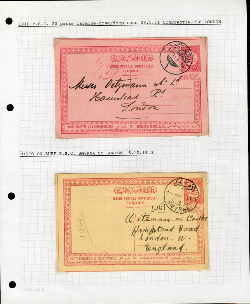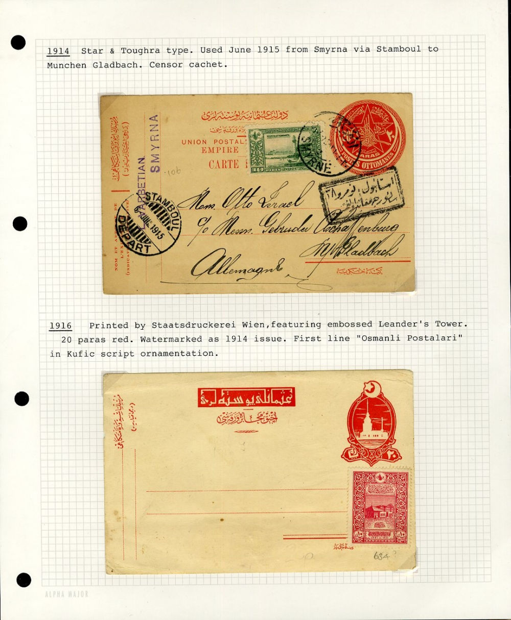 1436 COVER   imageTURKEY 1880-1920 Ottoman Empire, selection of 81 stationery items and covers, used and unused, written up on album leaves with wealth of cancelations and markings to a variety of destinations, used in Syria, Iraq, Holy Land with a Beni Saab card, Salonica, etc. A fine group (Image) (Image 2) (Image 3) (Image 4) (Image 5) (Image 6) (Image 7) (Image 8) (Image 9) (Image 10) (Image 11) (Image 12) (Image 13) (Image 14) (Image 15) (Image 16) (Image 17) (Image 18) (Image 19) (Image 20) (Image 21) (Image 22) (Image 23) (Image 24) (Image 25) (Image 26) (Image 27) (Image 28) (Image 29) (Image 30) (Image 31) (Image 32) (Image 33) (Image 34) (Image 35) (Image 36) (Image 37) (Image 38) (Image 39) (Image 40) (Image 41) (Image 42) (Image 43) (Image 44) (All Images)