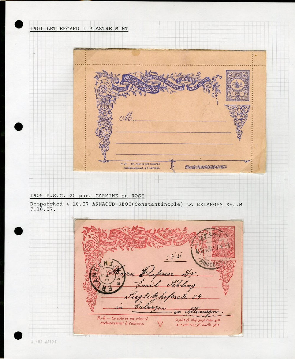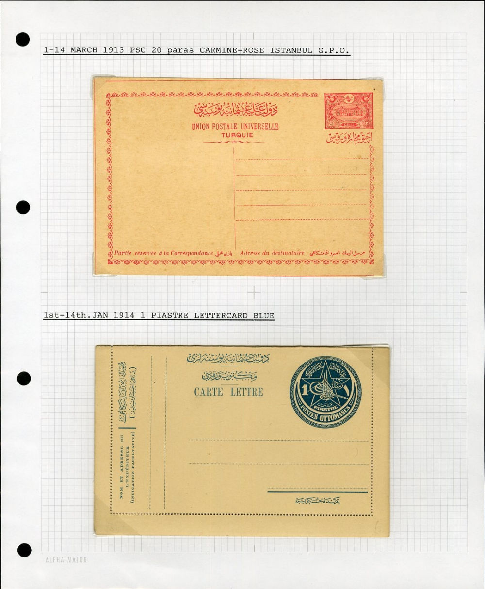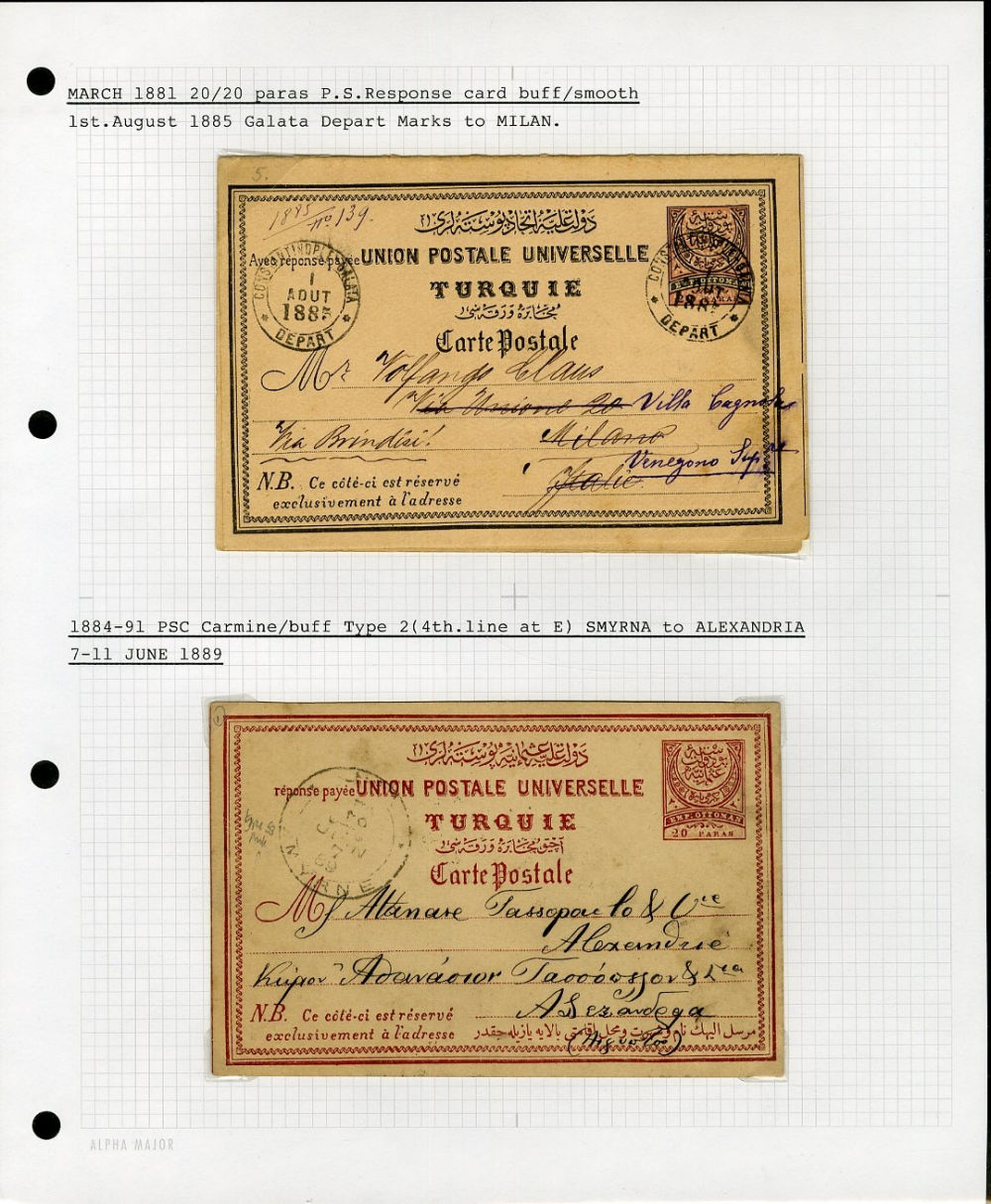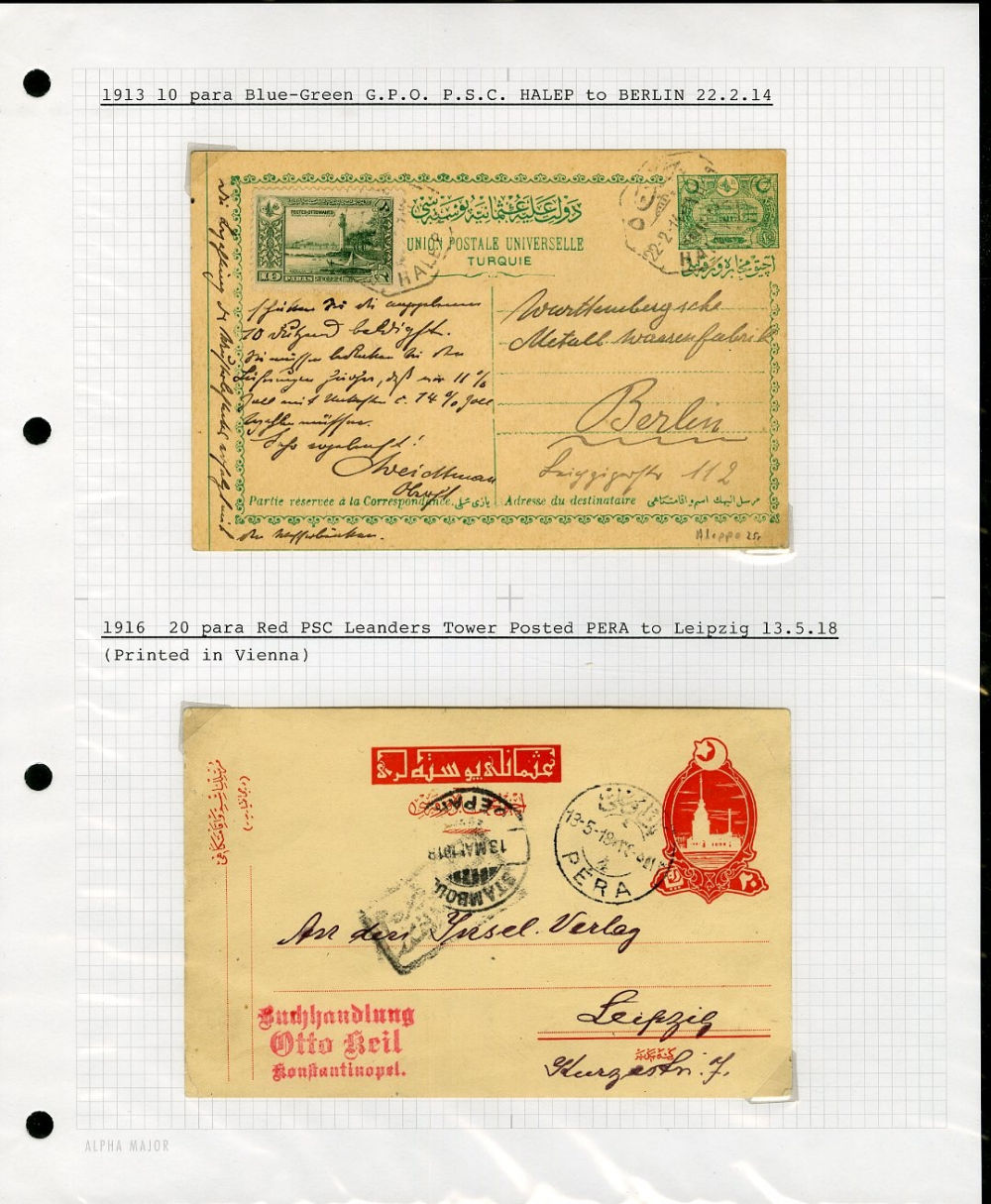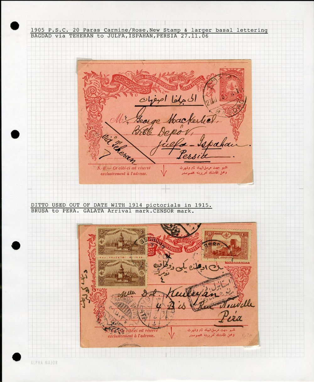 1436 COVER   imageTURKEY 1880-1920 Ottoman Empire, selection of 81 stationery items and covers, used and unused, written up on album leaves with wealth of cancelations and markings to a variety of destinations, used in Syria, Iraq, Holy Land with a Beni Saab card, Salonica, etc. A fine group (Image) (Image 2) (Image 3) (Image 4) (Image 5) (Image 6) (Image 7) (Image 8) (Image 9) (Image 10) (Image 11) (Image 12) (Image 13) (Image 14) (Image 15) (Image 16) (Image 17) (Image 18) (Image 19) (Image 20) (Image 21) (Image 22) (Image 23) (Image 24) (Image 25) (Image 26) (Image 27) (Image 28) (Image 29) (Image 30) (Image 31) (Image 32) (Image 33) (Image 34) (Image 35) (Image 36) (Image 37) (Image 38) (Image 39) (Image 40) (Image 41) (Image 42) (Image 43) (Image 44) (All Images)
