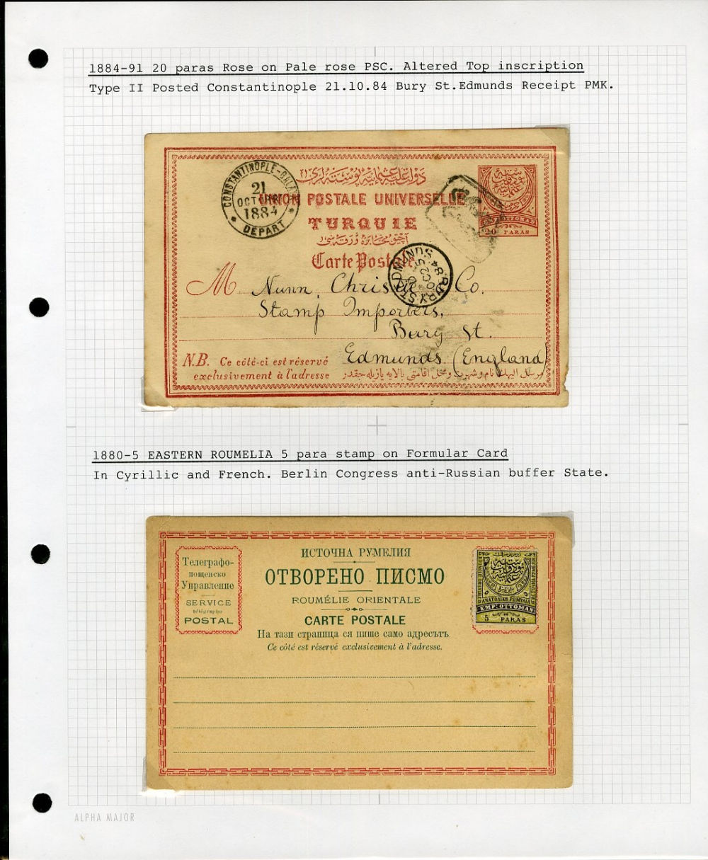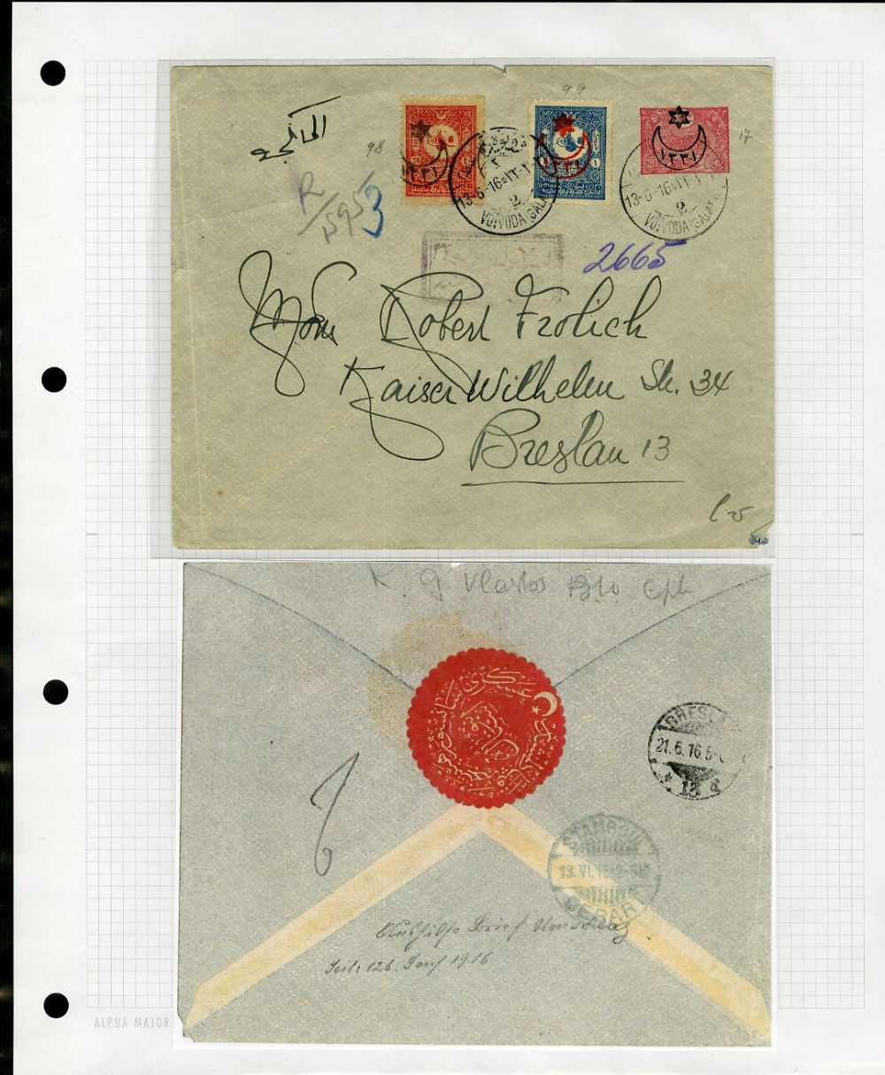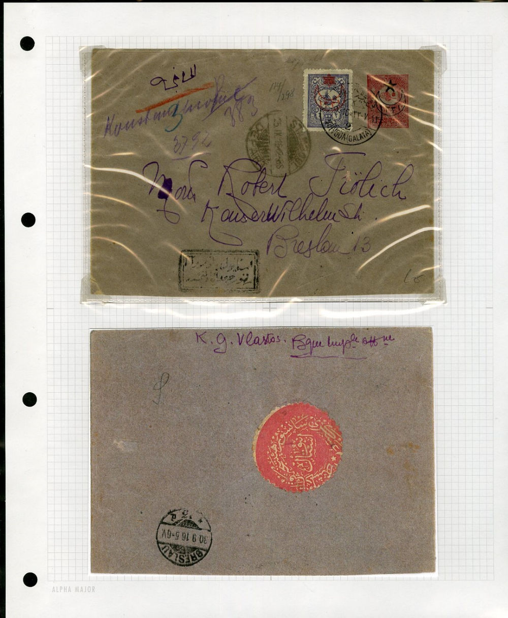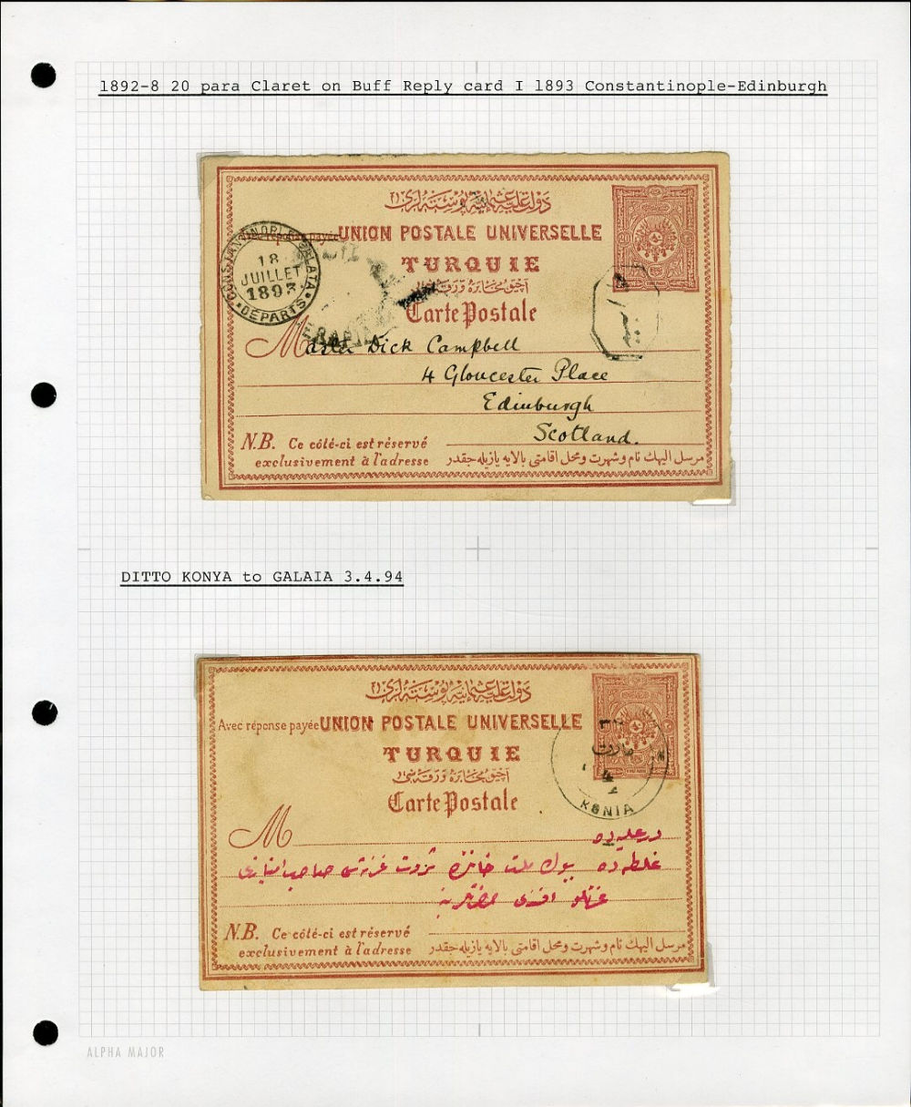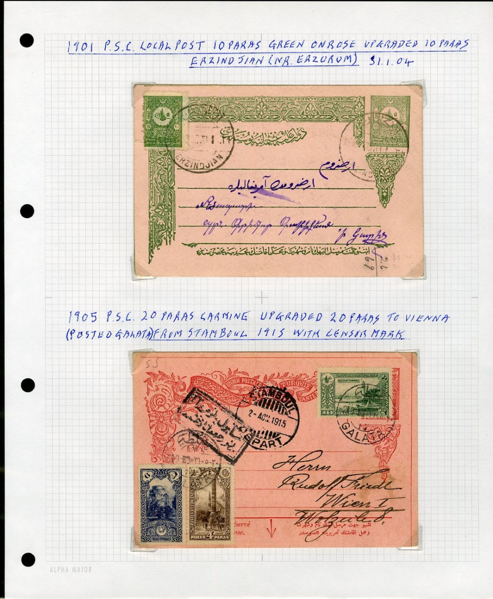 1436 COVER   imageTURKEY 1880-1920 Ottoman Empire, selection of 81 stationery items and covers, used and unused, written up on album leaves with wealth of cancelations and markings to a variety of destinations, used in Syria, Iraq, Holy Land with a Beni Saab card, Salonica, etc. A fine group (Image) (Image 2) (Image 3) (Image 4) (Image 5) (Image 6) (Image 7) (Image 8) (Image 9) (Image 10) (Image 11) (Image 12) (Image 13) (Image 14) (Image 15) (Image 16) (Image 17) (Image 18) (Image 19) (Image 20) (Image 21) (Image 22) (Image 23) (Image 24) (Image 25) (Image 26) (Image 27) (Image 28) (Image 29) (Image 30) (Image 31) (Image 32) (Image 33) (Image 34) (Image 35) (Image 36) (Image 37) (Image 38) (Image 39) (Image 40) (Image 41) (Image 42) (Image 43) (Image 44) (All Images)