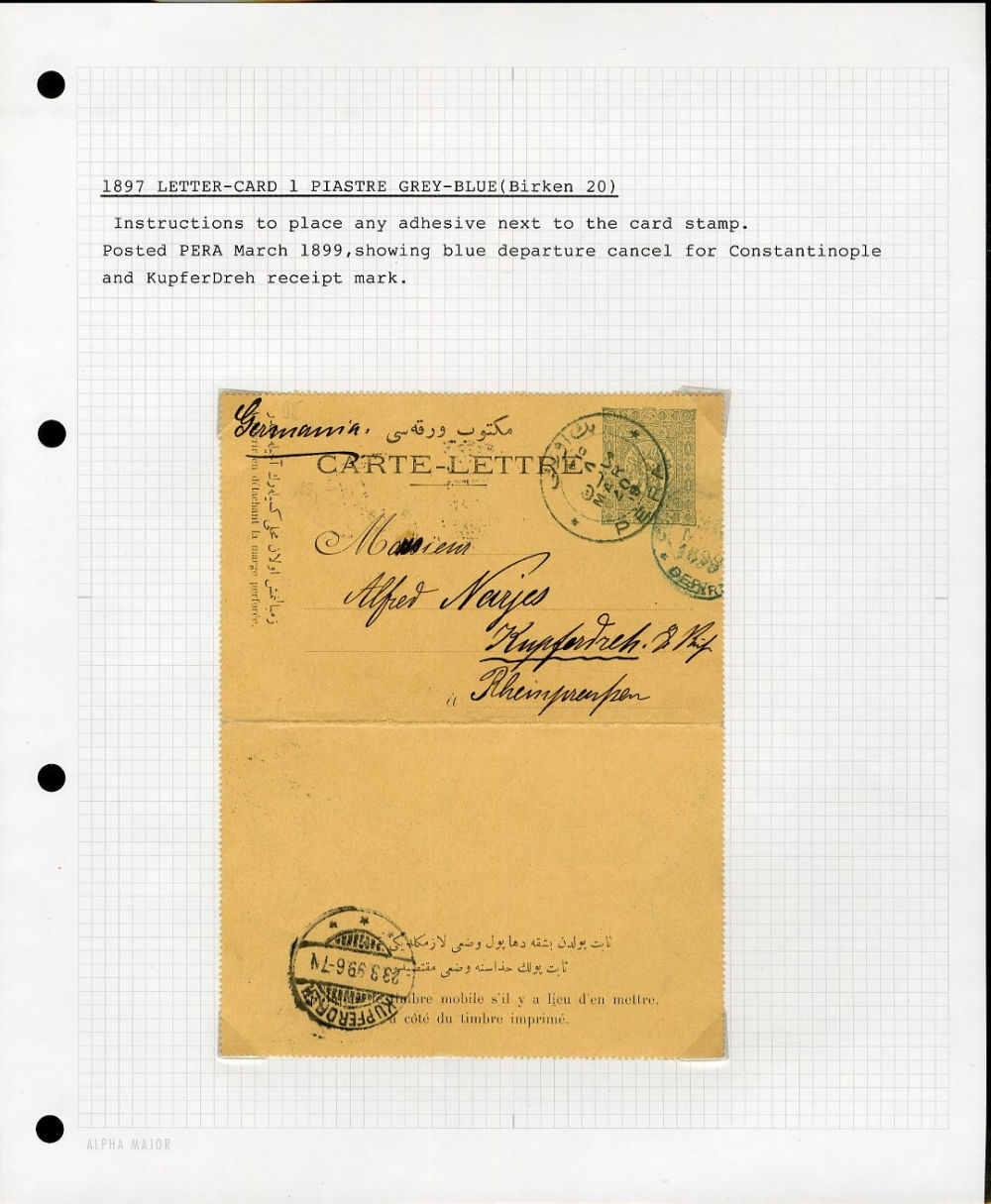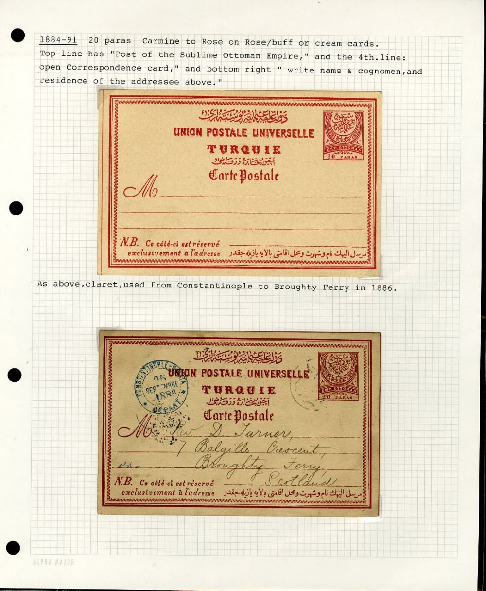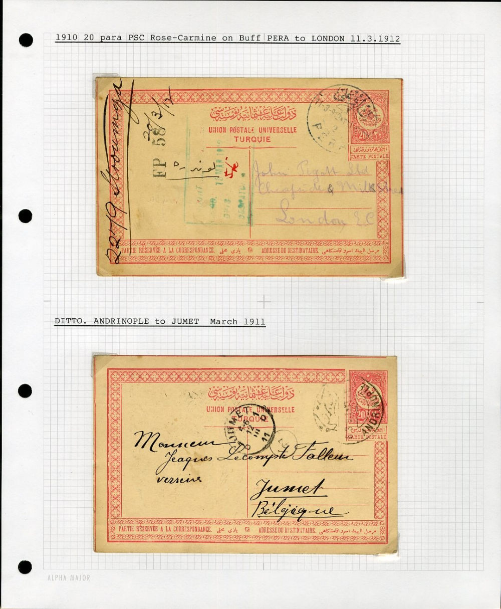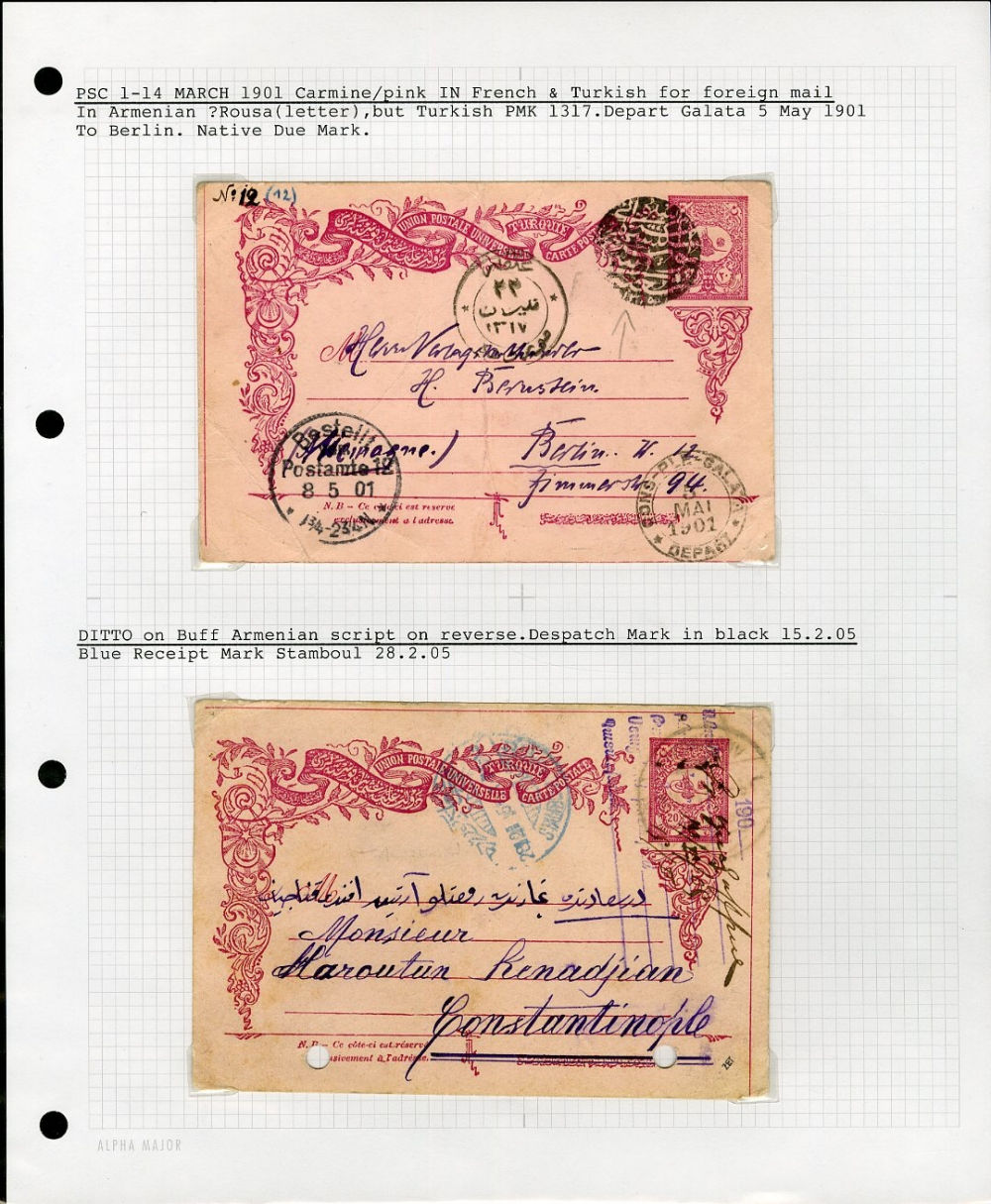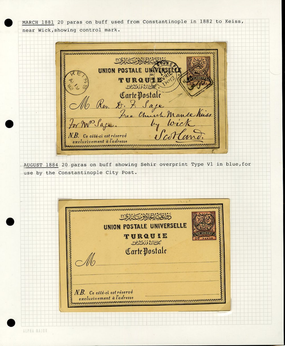 1436 COVER   imageTURKEY 1880-1920 Ottoman Empire, selection of 81 stationery items and covers, used and unused, written up on album leaves with wealth of cancelations and markings to a variety of destinations, used in Syria, Iraq, Holy Land with a Beni Saab card, Salonica, etc. A fine group (Image) (Image 2) (Image 3) (Image 4) (Image 5) (Image 6) (Image 7) (Image 8) (Image 9) (Image 10) (Image 11) (Image 12) (Image 13) (Image 14) (Image 15) (Image 16) (Image 17) (Image 18) (Image 19) (Image 20) (Image 21) (Image 22) (Image 23) (Image 24) (Image 25) (Image 26) (Image 27) (Image 28) (Image 29) (Image 30) (Image 31) (Image 32) (Image 33) (Image 34) (Image 35) (Image 36) (Image 37) (Image 38) (Image 39) (Image 40) (Image 41) (Image 42) (Image 43) (Image 44) (All Images)