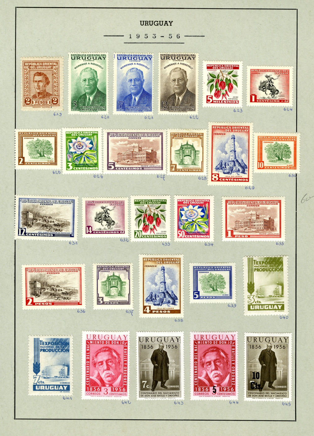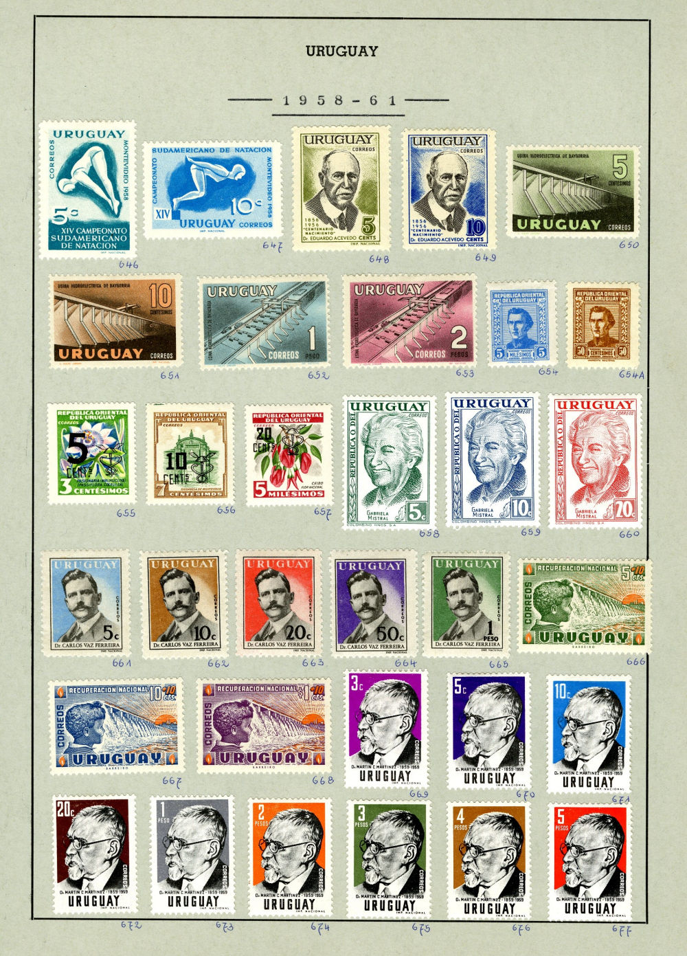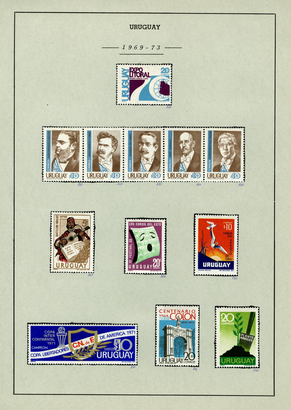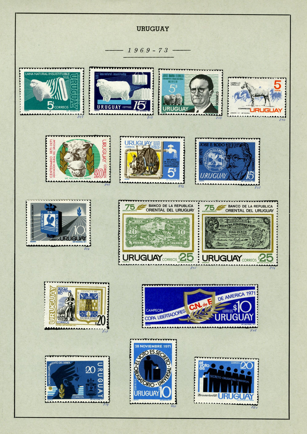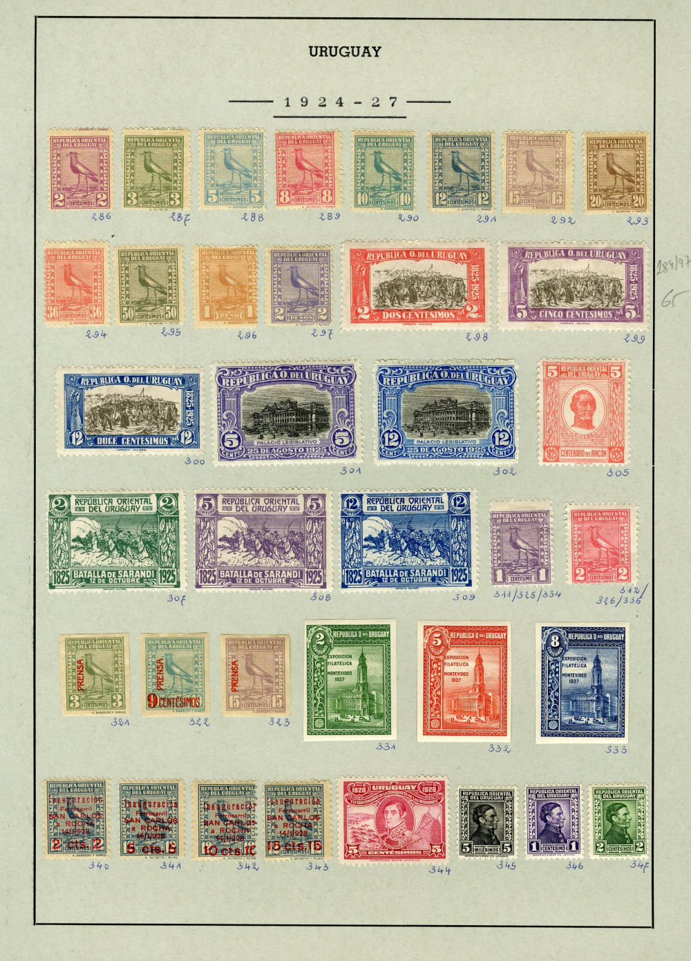 1438 og   imageURUGUAY 1912-72 collection on pages, virtually complete, regular issues and commemoratives, Air Post Albatross, Pegasus, also, back of the book, Postage Dues, Officials, souvenir sheets, etc., h.r., fine-v.f. A nice collection of Uruguay (Image) (Image 2) (Image 3) (Image 4) (Image 5) (Image 6) (Image 7) (Image 8) (Image 9) (Image 10) (Image 11) (Image 12) (Image 13) (Image 14) (Image 15) (Image 16) (Image 17) (Image 18) (Image 19) (Image 20) (Image 21) (Image 22) (Image 23) (Image 24) (Image 25) (Image 26) (Image 27) (Image 28) (Image 29) (Image 30) (Image 31) (All Images)