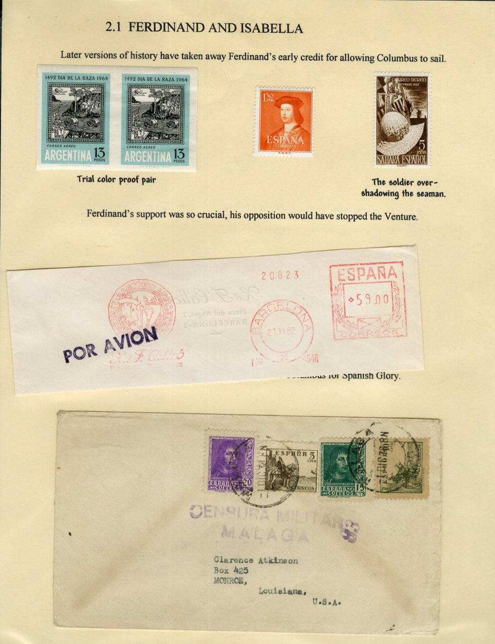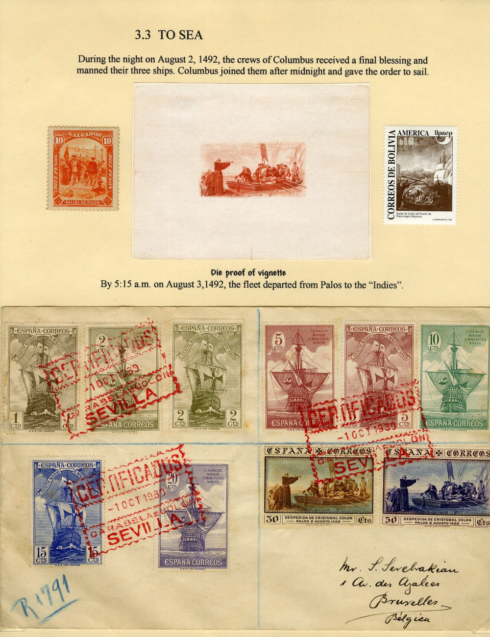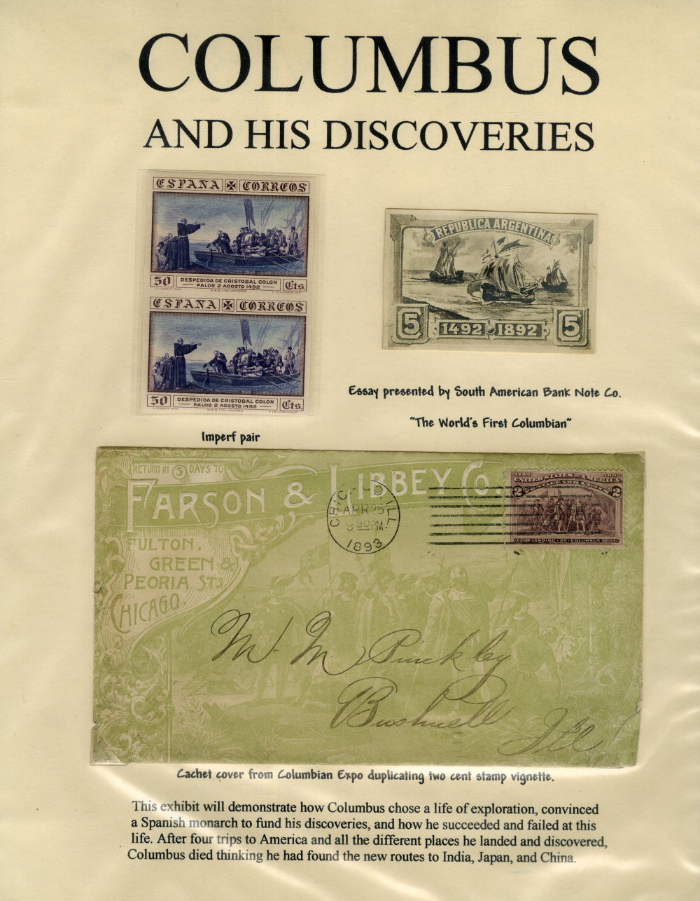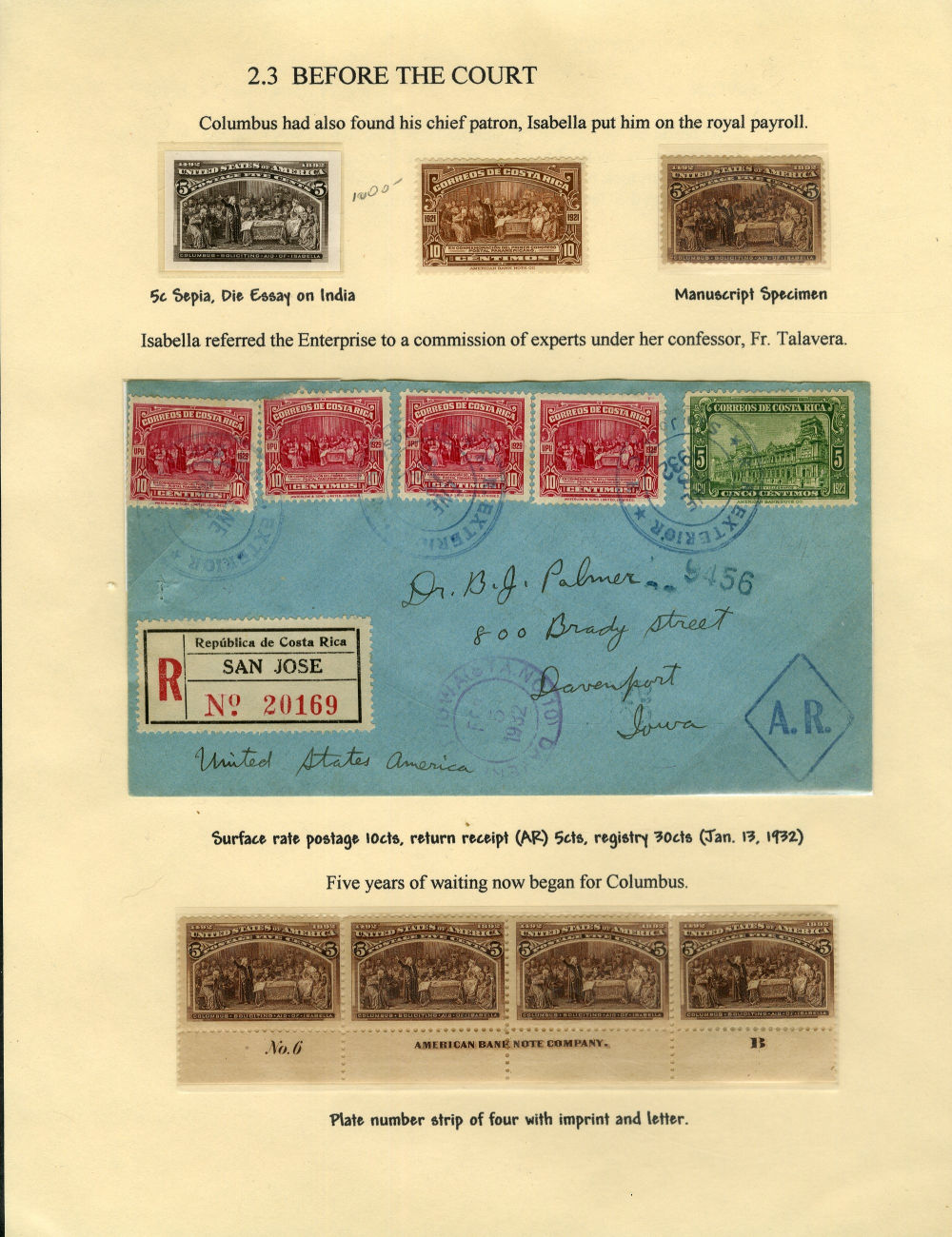 1452 O, og, P, COVER   imageWORLDWIDE COLLECTIONS and BALANCES 1869-1893 Christopher Columbus and Columbian Exposition, exhibit collection on 112 pages, showing an impressive array of stamps, proofs, Specimen overprints, Plate Number strips, singles and covers of the U.S.Columbian issue, plus Latin and South American and Worldwide Columbus topical issues and proofs documenting the discovery of the Americas. The collection is somewhat scattered, making it difficult to spot the better pieces, which include U.S. Scott 118 unused (PFC), 119 unused and on a small cover to France, 129 unused (PFC), 119P2, 119P3 block of four, 230-245P4, 230 plate number strip of 4, 231 plate number strip of 4, 232 on Columbian Exposition cover, 232 plate number strip of four, 233 on cover to Austria, 233 plate number strip of 3, 233S, 233-E2a large die sunk on reduced card, 234 plate number strip of 4 (PFC), 234 on cover, 234P2, 234S (PFC), 235 plate number strip of 4, 235S, 236 plate block of 8, 236 on registered cover, 237 on Groceries ad cover, 238, 238 on registered cover, 238 plate number strip of 4, 238P1 large die sunk on reduced card, 239,240 each unused, Specimen overprint and on cover, 241 $1 unused and on cover, 242 $2 on cover, 242P1, 242S, 243 $3 unused (PFC), also on cover, 244 $4 unused, also on registered cover to Paris and finally 245 $5 unused, plus used on a small cover. Some mixed condition, minor faults noted, generally fine-v.f. An interesting collection with much value in this very popular area (Image) (Image 2) (Image 3) (Image 4) (Image 5) (Image 6) (Image 7) (Image 8) (Image 9) (Image 10) (Image 11) (Image 12) (Image 13) (Image 14) (Image 15) (Image 16) (Image 17) (Image 18) (Image 19) (Image 20) (Image 21) (Image 22) (Image 23) (Image 24) (Image 25) (Image 26) (Image 27) (Image 28) (Image 29) (Image 30) (Image 31) (Image 32) (Image 33) (Image 34) (Image 35) (Image 36) (Image 37) (Image 38) (Image 39) (Image 40) (Image 41) (Image 42) (Image 43) (Image 44) (Image 45) (Image 46) (Image 47) (Image 48) (Image 49) (Image 50) (All Images)