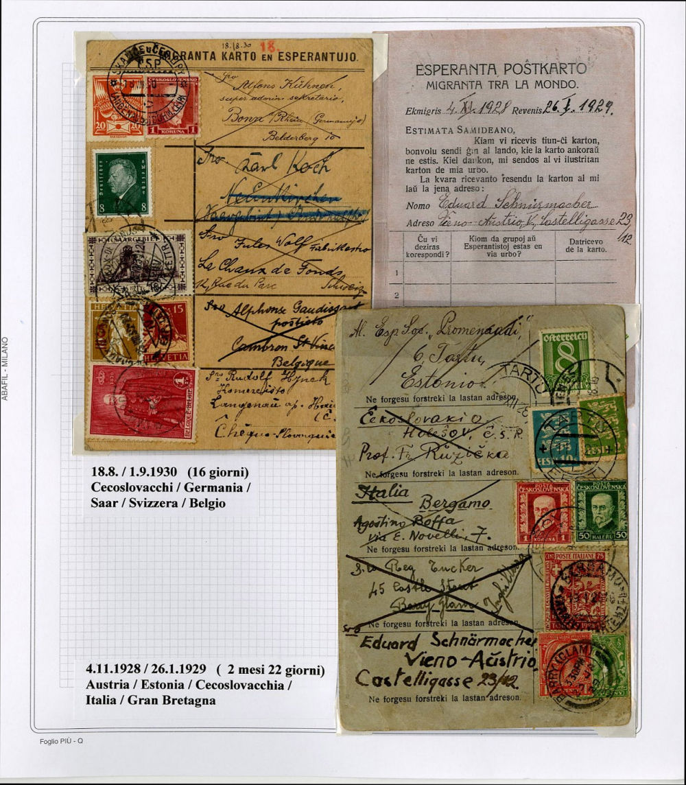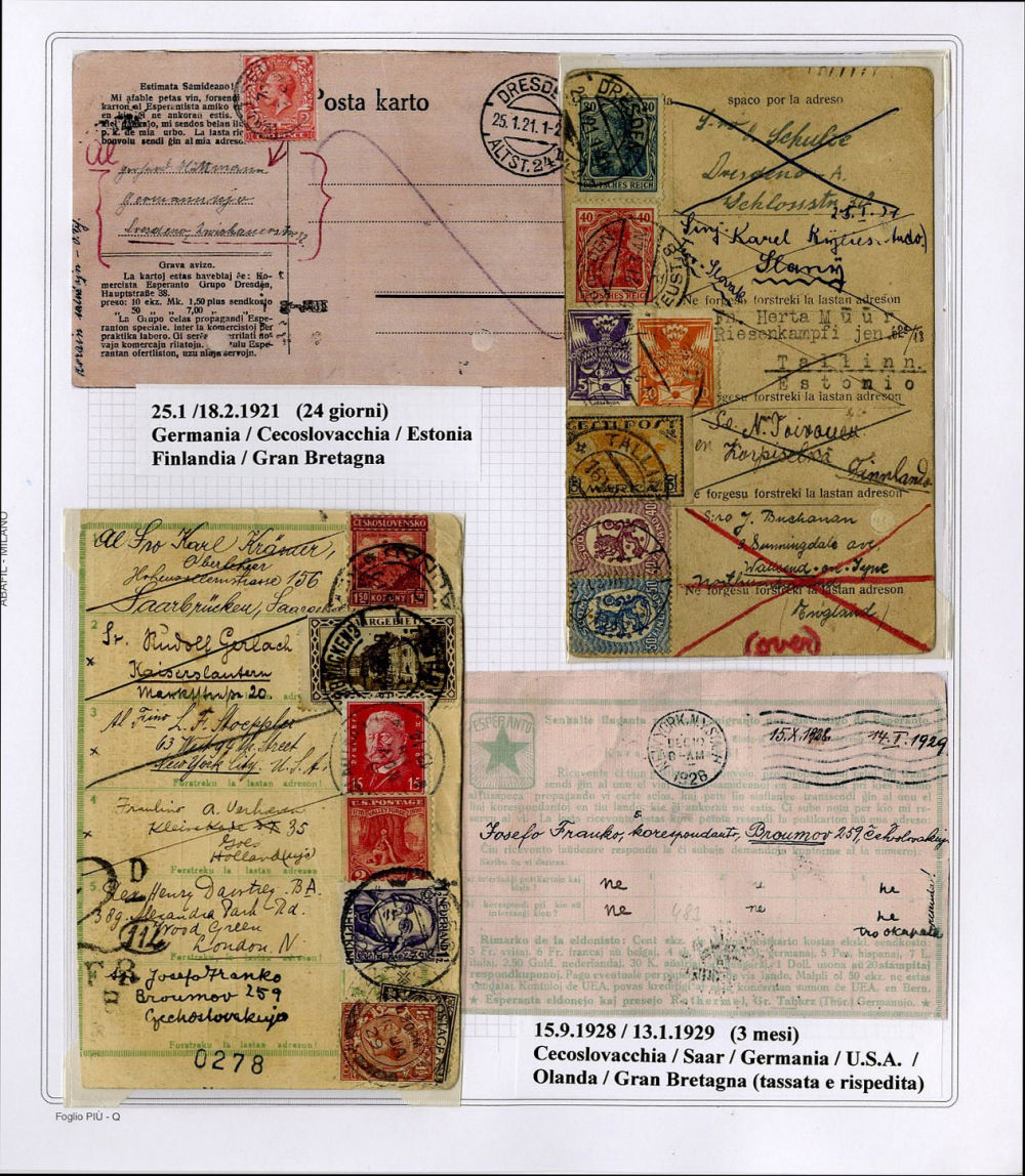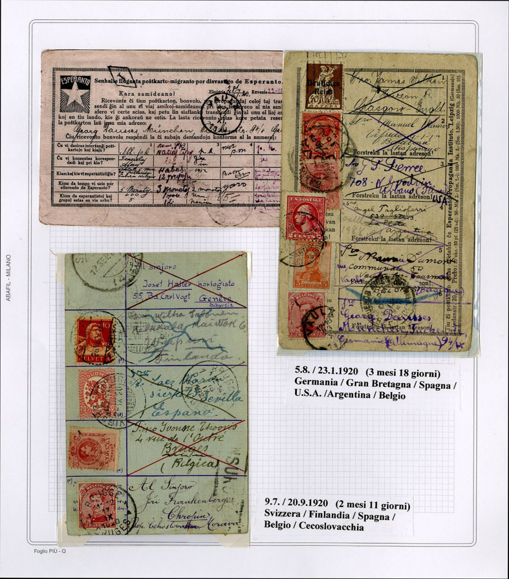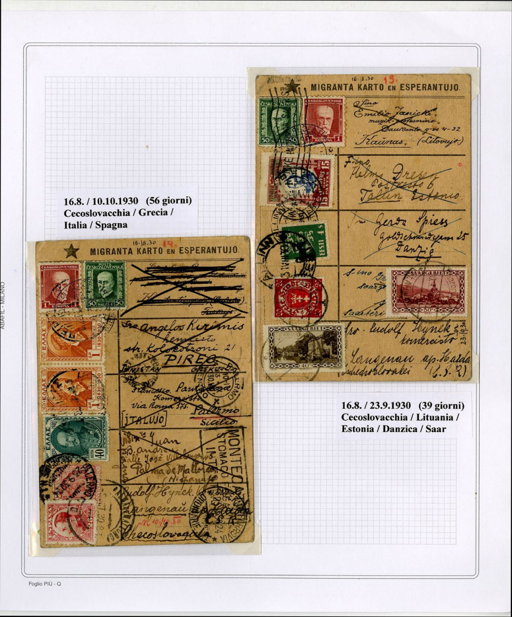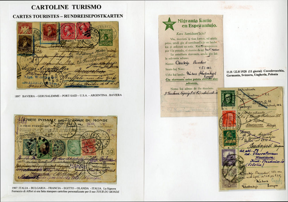 1460 COVER   imageWORLDWIDE COLLECTIONS and BALANCES 1905-1946 collection of 124 covers and cards, mostly multiple country frankings, Esperanto, Tourist, World Tour and Antarctica items, bearing appropriate markings and used in combination with many stamps from Albania, Austria, Germany, France, Japan, Norway, Czechoslovakia, Russia, Italy, Belgium, Spain, Portugal, Netherlands, French Colonies, Great Britain, Colombia, Ecuador and many others, neatly mounted and partly written up on pages, exceptionally nice quality for these. An interesting group of postal history, most of the items ($100+ category) can be offered individually (Image) (Image 2) (Image 3) (Image 4) (Image 5) (Image 6) (Image 7) (Image 8) (Image 9) (Image 10) (Image 11) (Image 12) (Image 13) (Image 14) (Image 15) (Image 16) (Image 17) (Image 18) (Image 19) (Image 20) (Image 21) (Image 22) (Image 23) (Image 24) (Image 25) (Image 26) (Image 27) (All Images)