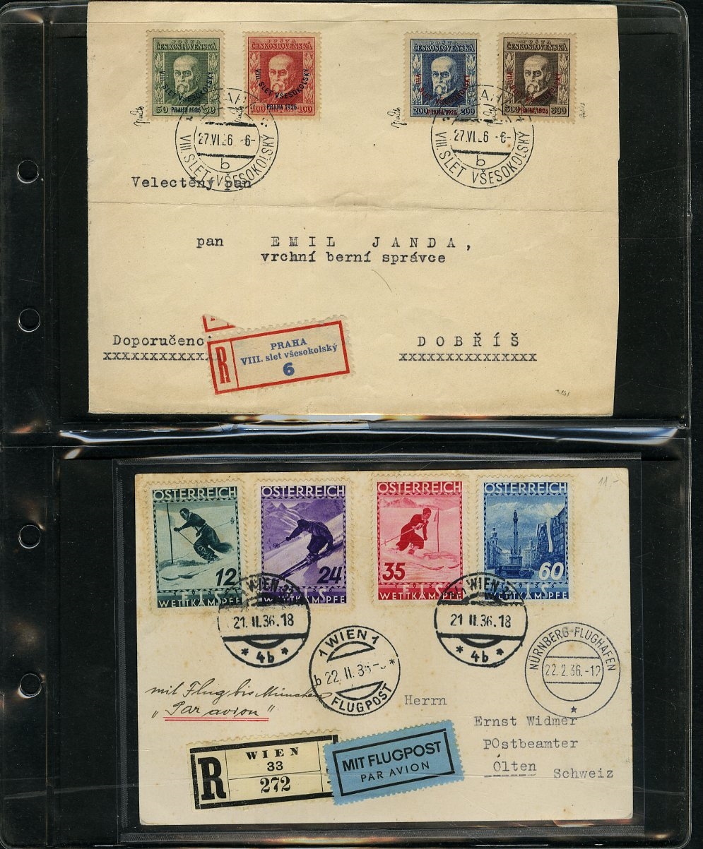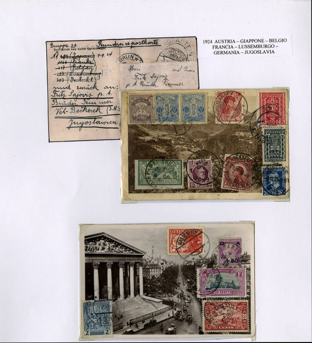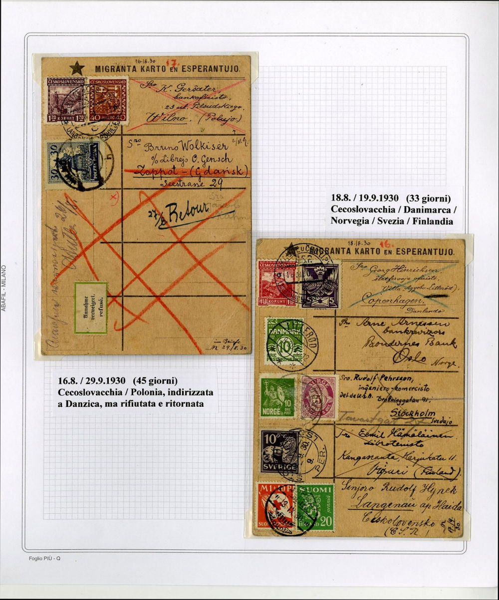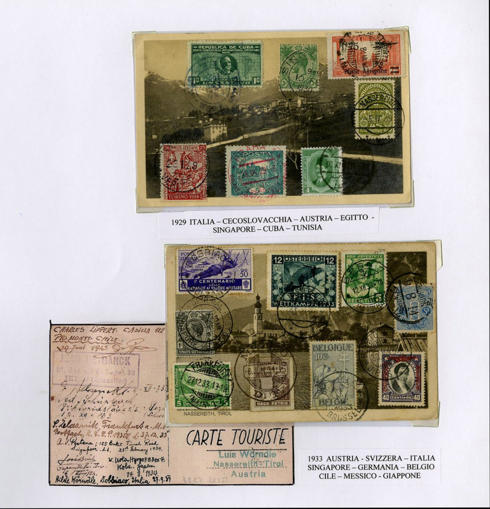1460 COVER   imageWORLDWIDE COLLECTIONS and BALANCES 1905-1946 collection of 124 covers and cards, mostly multiple country frankings, Esperanto, Tourist, World Tour and Antarctica items, bearing appropriate markings and used in combination with many stamps from Albania, Austria, Germany, France, Japan, Norway, Czechoslovakia, Russia, Italy, Belgium, Spain, Portugal, Netherlands, French Colonies, Great Britain, Colombia, Ecuador and many others, neatly mounted and partly written up on pages, exceptionally nice quality for these. An interesting group of postal history, most of the items ($100+ category) can be offered individually (Image) (Image 2) (Image 3) (Image 4) (Image 5) (Image 6) (Image 7) (Image 8) (Image 9) (Image 10) (Image 11) (Image 12) (Image 13) (Image 14) (Image 15) (Image 16) (Image 17) (Image 18) (Image 19) (Image 20) (Image 21) (Image 22) (Image 23) (Image 24) (Image 25) (Image 26) (Image 27) (All Images)