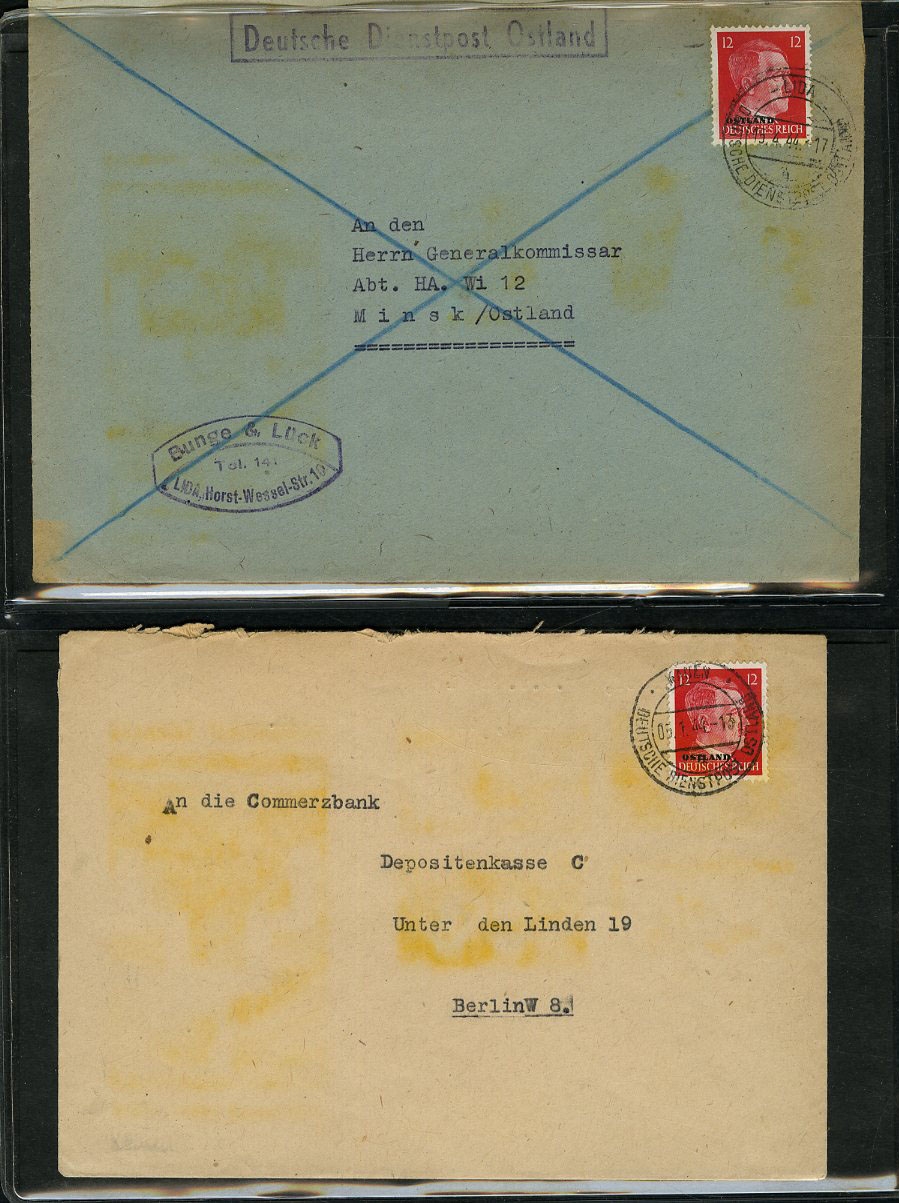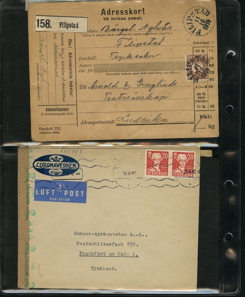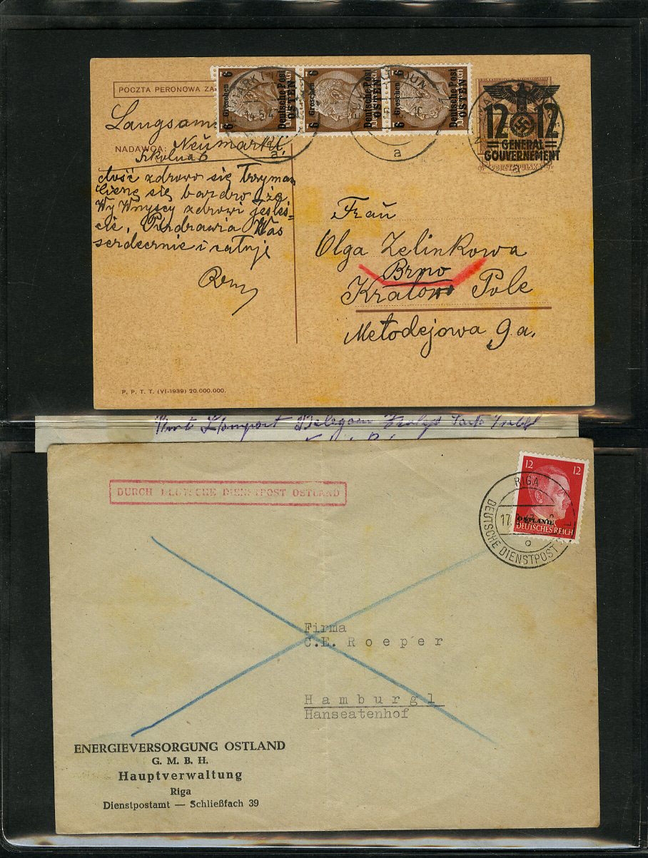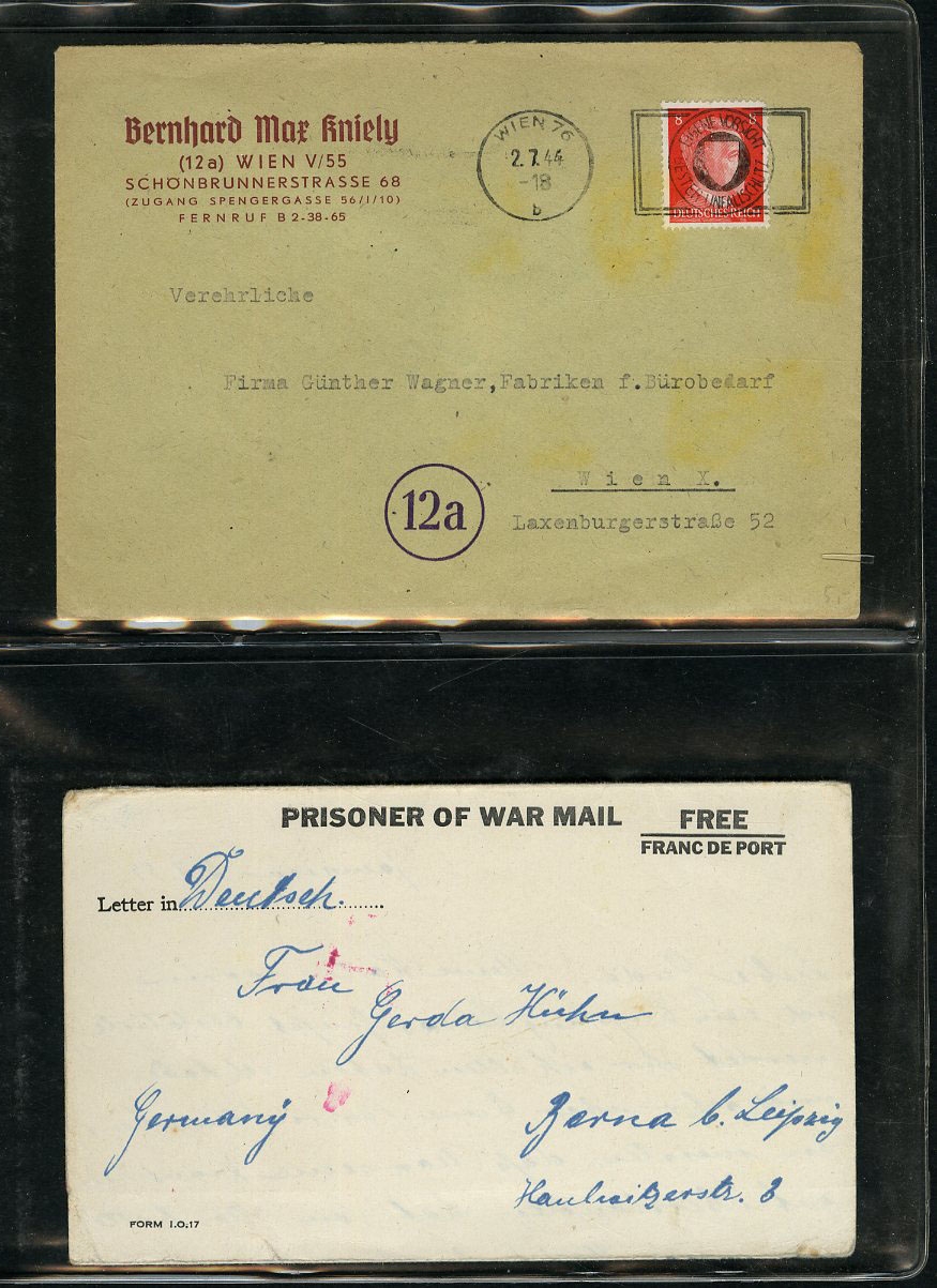 1458 COVER   imageWORLDWIDE COLLECTIONS and BALANCES 1870s-1960s carton with 2,000+ covers or cards, mostly in plastic pochettes, strength in Germany, Empire, post World War II Currency Reform, Soviet Zone, France & Colonies, Canada, some 19th Century, better Italy and Italian Area, South America bisects on cover, occasional United States & Possessions, Japan, etc., many better items ($100+), mixed condition, generally fine or better (Image) (All Images)