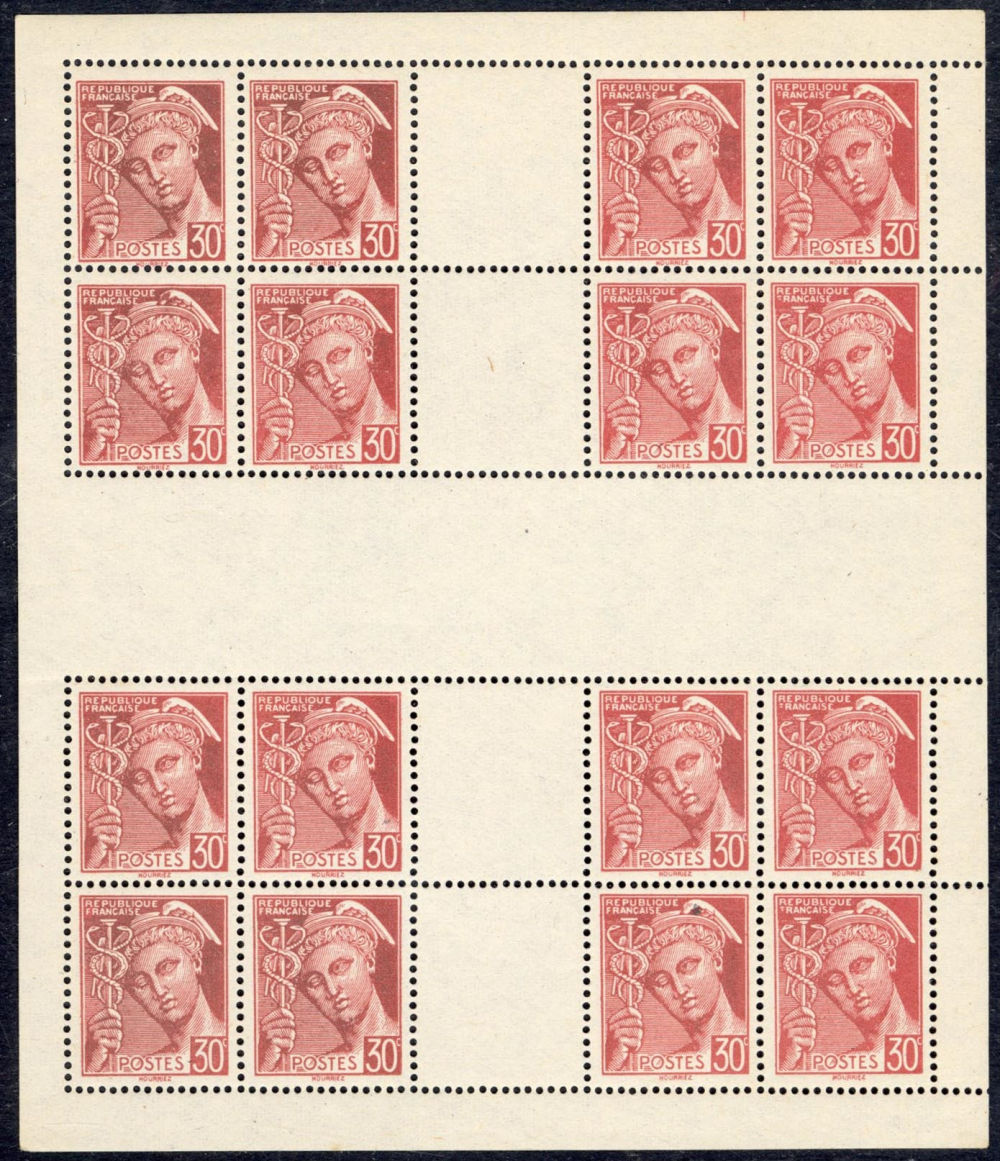 1943 30c brown orange, single (l.h.), also gutter sheetlet of 16, n.h., fine-v.f., with explanatory article, €2,040 (Image)