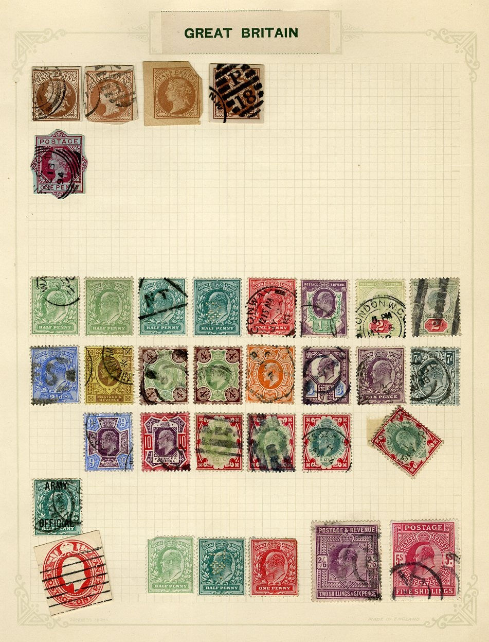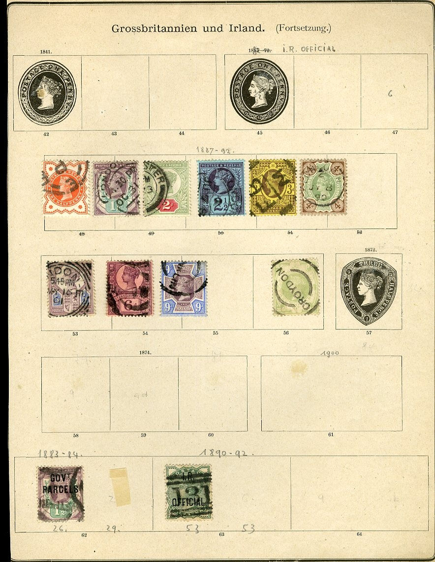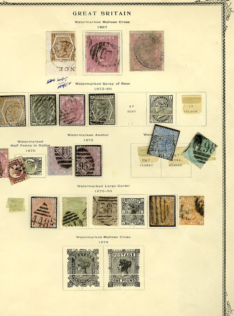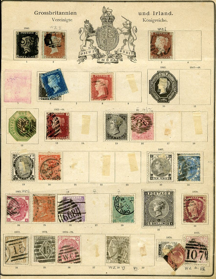 1124 O, og   imageGREAT BRITAIN 1840-1950 accumulation mounted on assorted album pages, originating from 1960s-1970s auction lots purchased by the original owner and untouched since. An enormous range of predominantly used Victorian-period material, with two 1840 Penny Blacks, numerous imperforate Penny Reds and perforated Two Penny Blues, along with several different plate and color studies spanning the 1860s-1880s issues. Multiple high-denomination stamps are present, including 5sh and 10sh Queen Victoria and Edward VII issues, as well as George V Seahorses. An ideal for any collector interested in Victorian-era cancellation varieties, with many dated and numeral postmarks throughout. Faults are to be expected, still with many fine-v.f. stamps included. High overall catalog value and well worth close inspection (Image) (Image 2) (Image 3) (Image 4) (Image 5) (Image 6) (Image 7) (Image 8) (Image 9) (Image 10) (Image 11) (Image 12) (Image 13) (Image 14) (Image 15) (Image 16) (Image 17) (Image 18) (Image 19) (Image 20) (Image 21) (Image 22) (Image 23) (Image 24) (Image 25) (Image 26) (Image 27) (Image 28) (Image 29) (Image 30) (Image 31) (Image 32) (Image 33) (Image 34) (Image 35) (Image 36) (Image 37) (Image 38) (Image 39) (Image 40) (Image 41) (Image 42) (Image 43) (Image 44) (Image 45) (Image 46) (Image 47) (Image 48) (Image 49) (Image 50) (All Images)