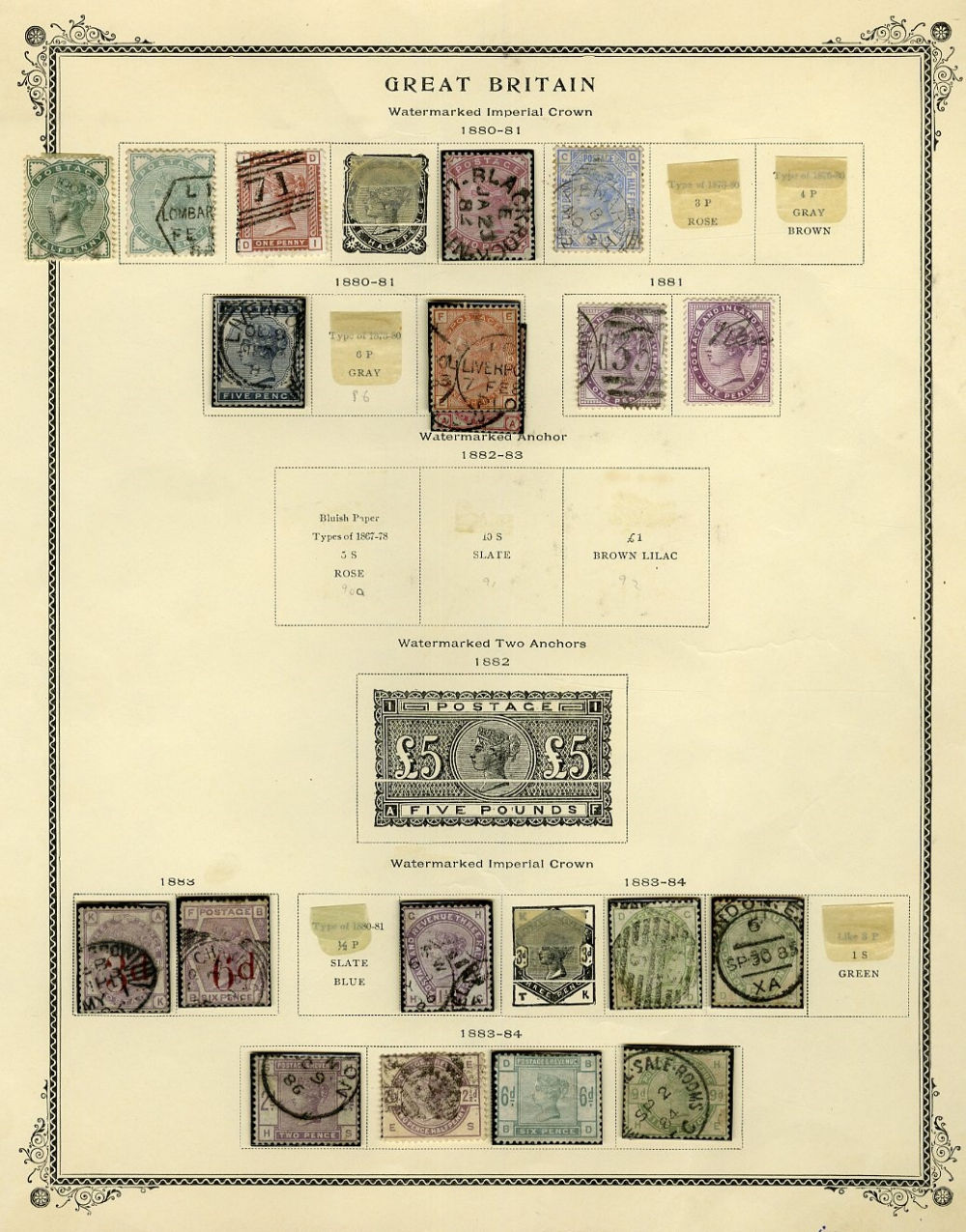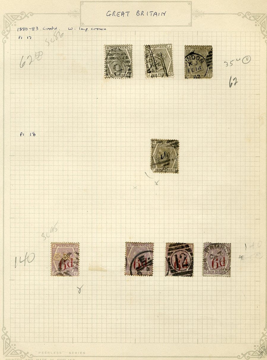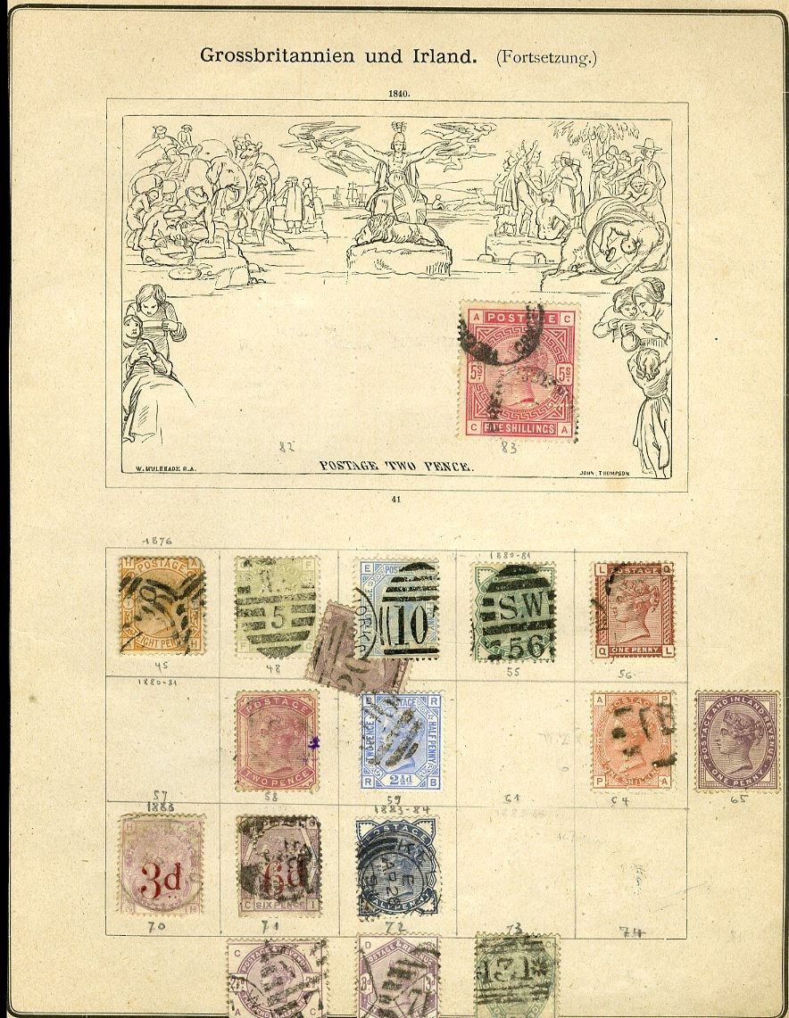 1124 O, og   imageGREAT BRITAIN 1840-1950 accumulation mounted on assorted album pages, originating from 1960s-1970s auction lots purchased by the original owner and untouched since. An enormous range of predominantly used Victorian-period material, with two 1840 Penny Blacks, numerous imperforate Penny Reds and perforated Two Penny Blues, along with several different plate and color studies spanning the 1860s-1880s issues. Multiple high-denomination stamps are present, including 5sh and 10sh Queen Victoria and Edward VII issues, as well as George V Seahorses. An ideal for any collector interested in Victorian-era cancellation varieties, with many dated and numeral postmarks throughout. Faults are to be expected, still with many fine-v.f. stamps included. High overall catalog value and well worth close inspection (Image) (Image 2) (Image 3) (Image 4) (Image 5) (Image 6) (Image 7) (Image 8) (Image 9) (Image 10) (Image 11) (Image 12) (Image 13) (Image 14) (Image 15) (Image 16) (Image 17) (Image 18) (Image 19) (Image 20) (Image 21) (Image 22) (Image 23) (Image 24) (Image 25) (Image 26) (Image 27) (Image 28) (Image 29) (Image 30) (Image 31) (Image 32) (Image 33) (Image 34) (Image 35) (Image 36) (Image 37) (Image 38) (Image 39) (Image 40) (Image 41) (Image 42) (Image 43) (Image 44) (Image 45) (Image 46) (Image 47) (Image 48) (Image 49) (Image 50) (All Images)