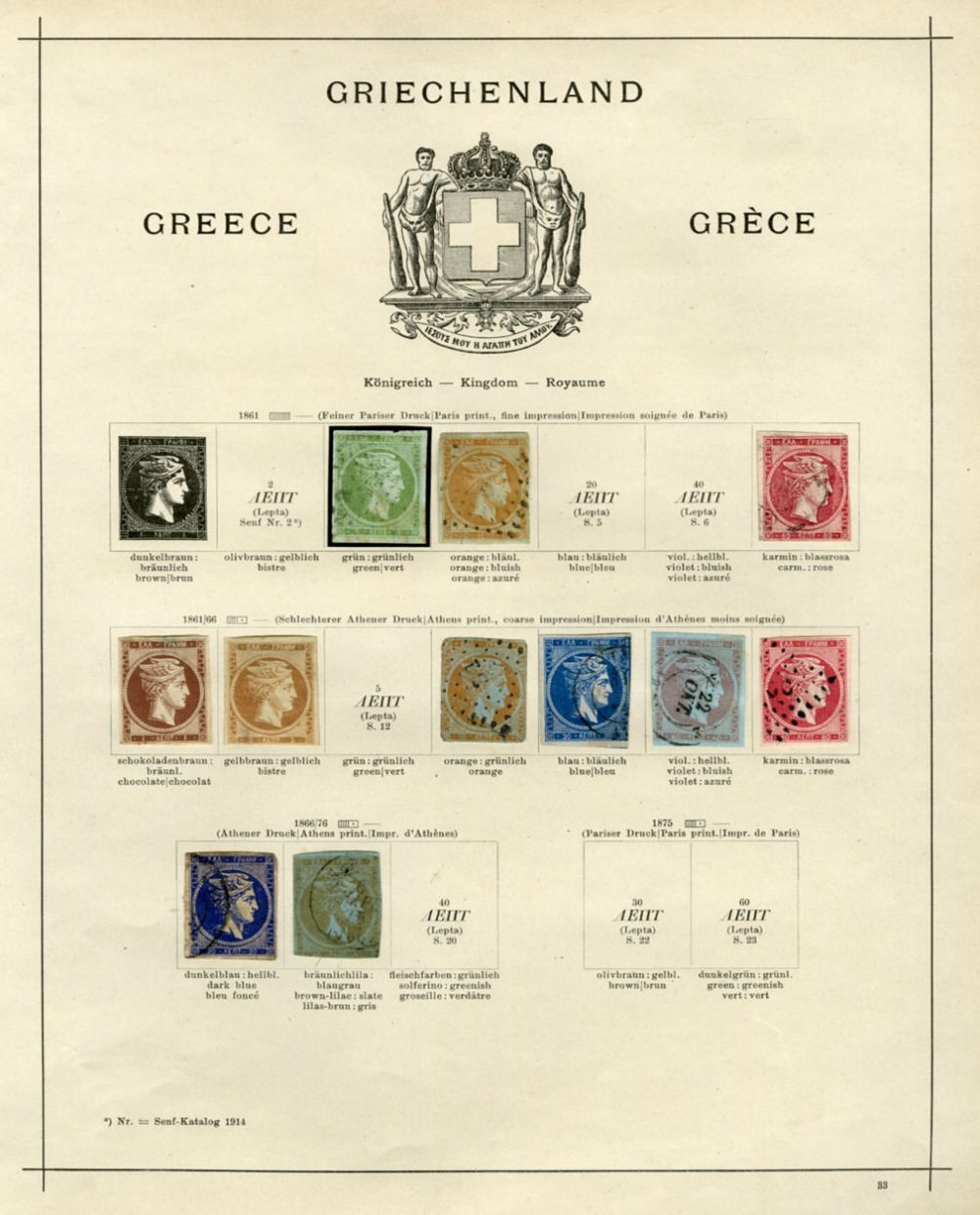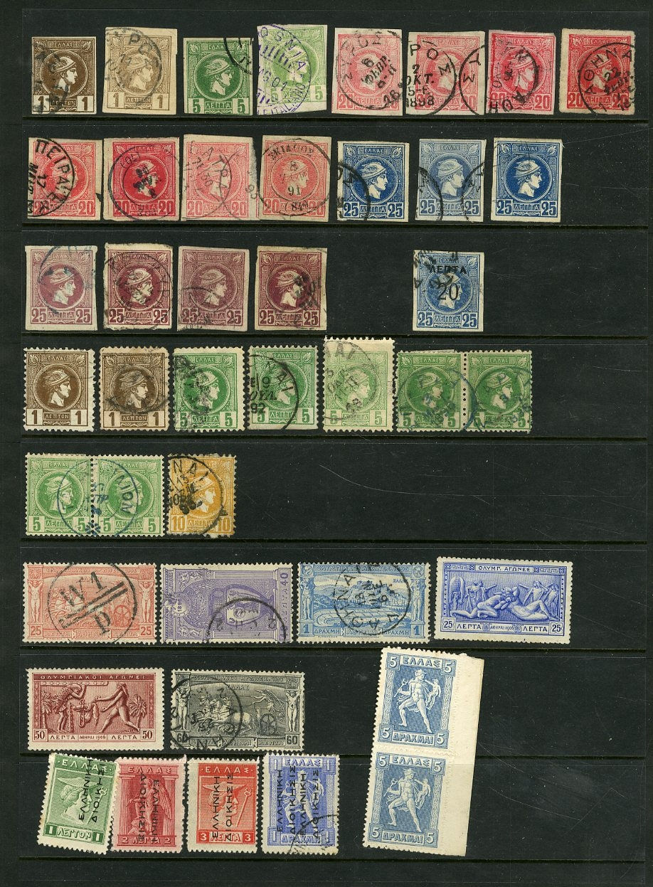 1131 O, og   imageGREECE 1861-1948 collection on pages, mostly used to 1920, with Hermes Heads imperf. and perf., mixed condition, 1896 Olympics 1d-10d, some overprints and surcharges, 1906 Olympics complete, Postage Dues, etc., unused from 1924, with Commemoratives, better items, 1933 Youth of Marathon set of three, Air Post issues, 1940 Greek Youth organization complete, also 1941 North Epirus overprints, fine-v.f. (Image) (Image 2) (Image 3) (Image 4) (Image 5) (Image 6) (Image 7) (Image 8) (Image 9) (Image 10) (Image 11) (Image 12) (Image 13) (Image 14) (Image 15) (Image 16) (Image 17) (Image 18) (Image 19) (Image 20) (All Images)
