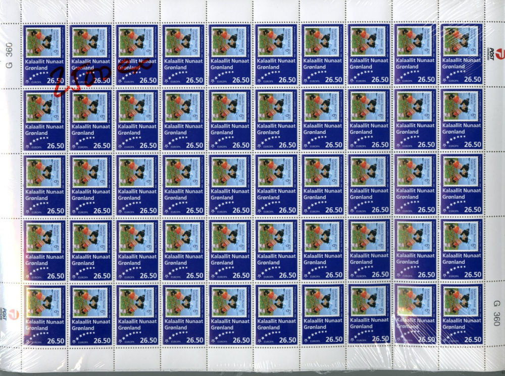 1134 nh   imageGREENLAND 2006 EUROPA Issue, 10,000 stamps (all in sheets), n.h., v.f. (Face value 265,000 Danish Kronen, equivalent of $41,605) (Image)