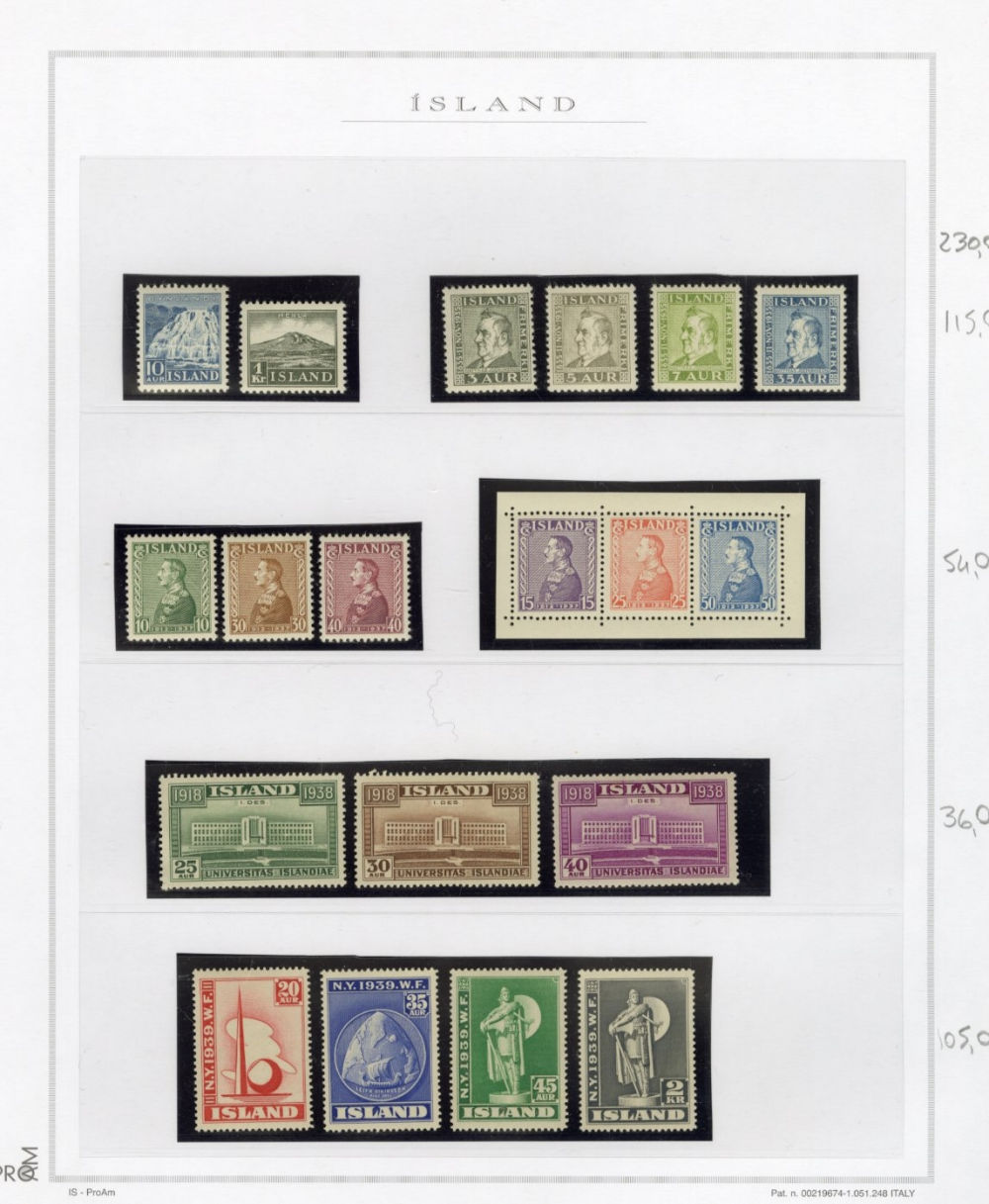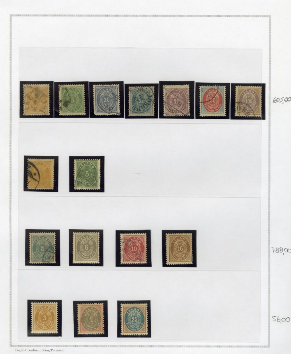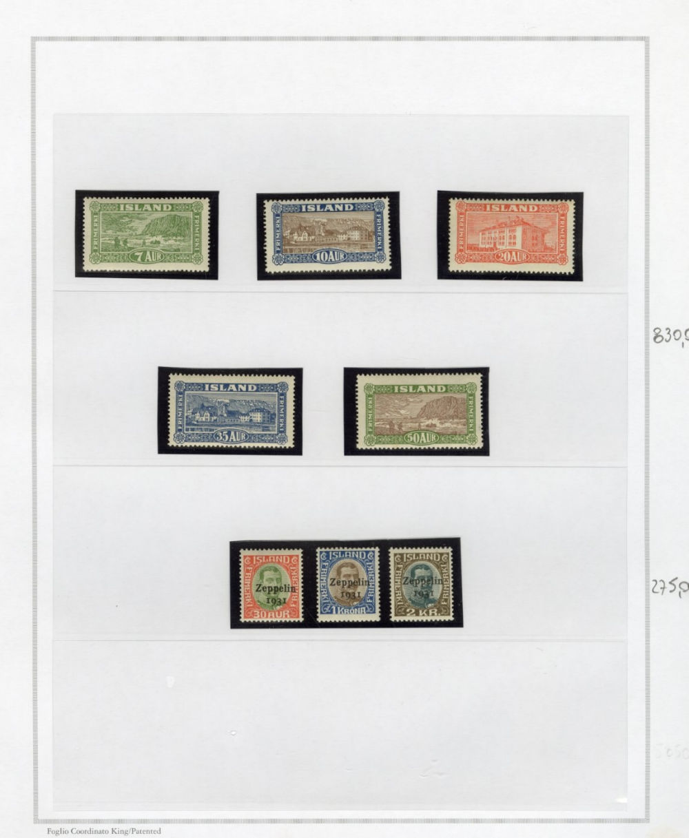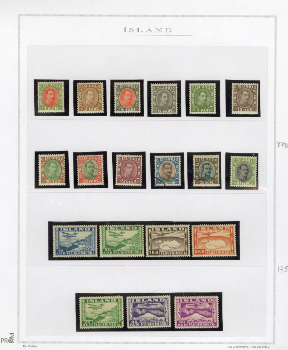 1137 O, og   imageICELAND 1873-2015 two-volume collection on pages, used and unused singles and sets, good showing of 19th Century, mixed condition, mostly complete from 1907, generally n.h. (when unused), including 1907-12 issues (71-98), 1920-22 Christian X, many better singles, surcharges, Landing the mail set of five, Parliament set complete, also Officials (152-66,O53-57) all n.h., Air Post (missing Hopflug Itala), modern issues with booklet panes, etc., also back-of-book, souvenir sheets and more. A nice collection of Iceland, high catalogue value (Image) (Image 2) (Image 3) (Image 4) (Image 5) (Image 6) (Image 7) (Image 8) (Image 9) (Image 10) (Image 11) (Image 12) (Image 13) (Image 14) (Image 15) (Image 16) (Image 17) (All Images)