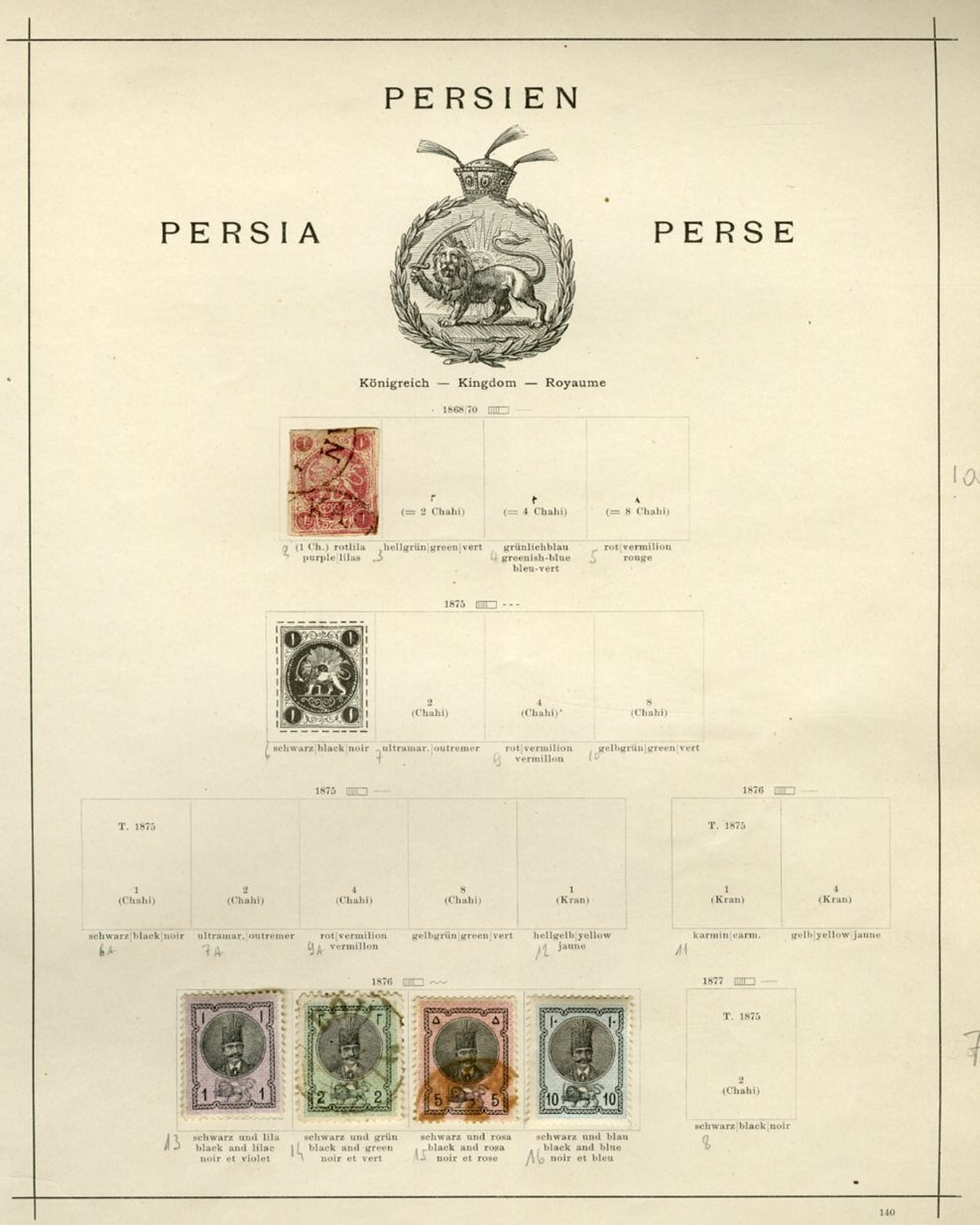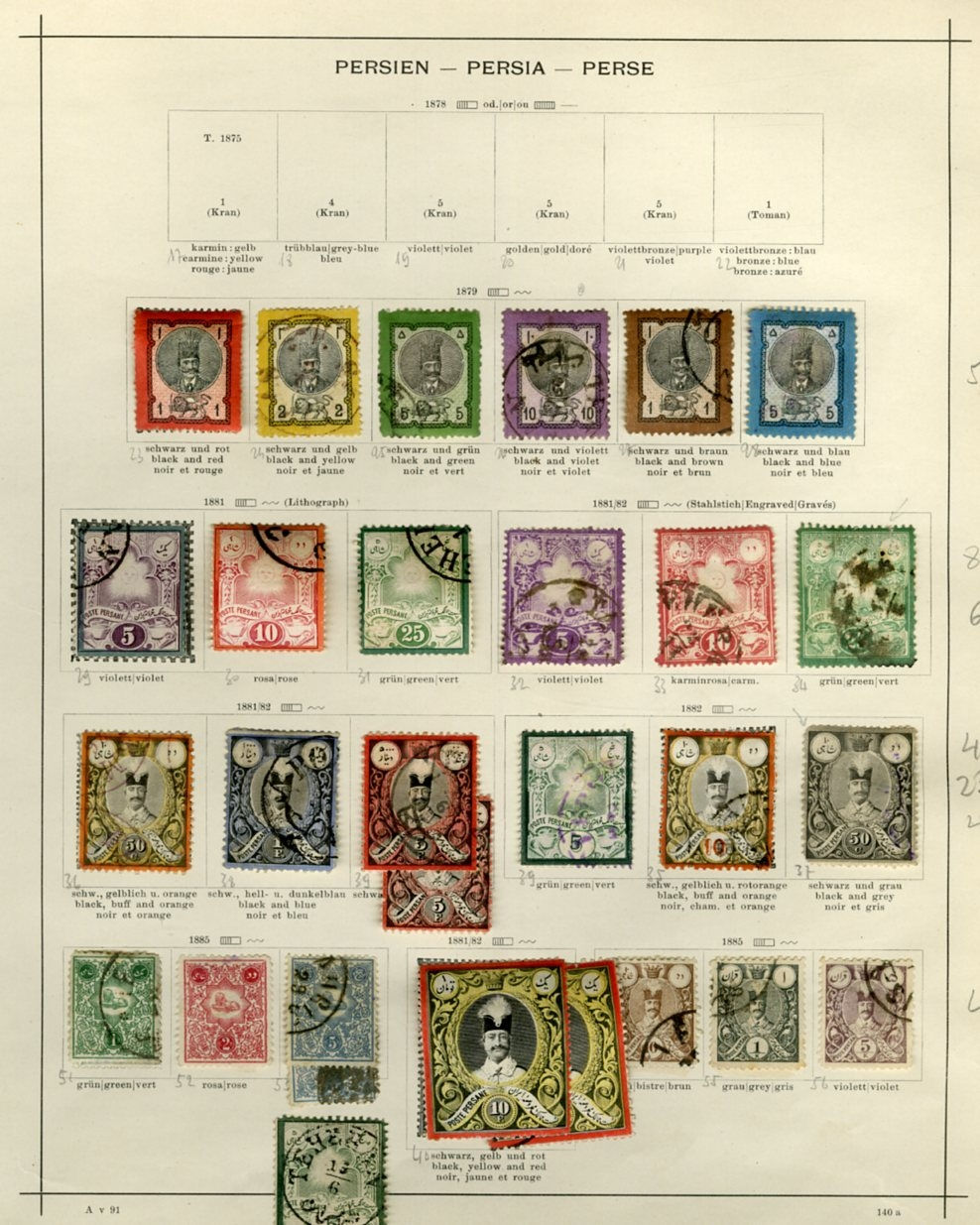 1140 O, og   imageIRAN 1868-1935 collection of hundreds, used and unused singles and sets on album pages, Regular Issues, commemoratives, Air Post, Parcel Post, many better items, some doubtful and reference items throughout, mostly fine or better (Image) (Image 2) (Image 3) (Image 4) (Image 5) (Image 6) (Image 7) (Image 8) (Image 9) (Image 10) (Image 11) (All Images)