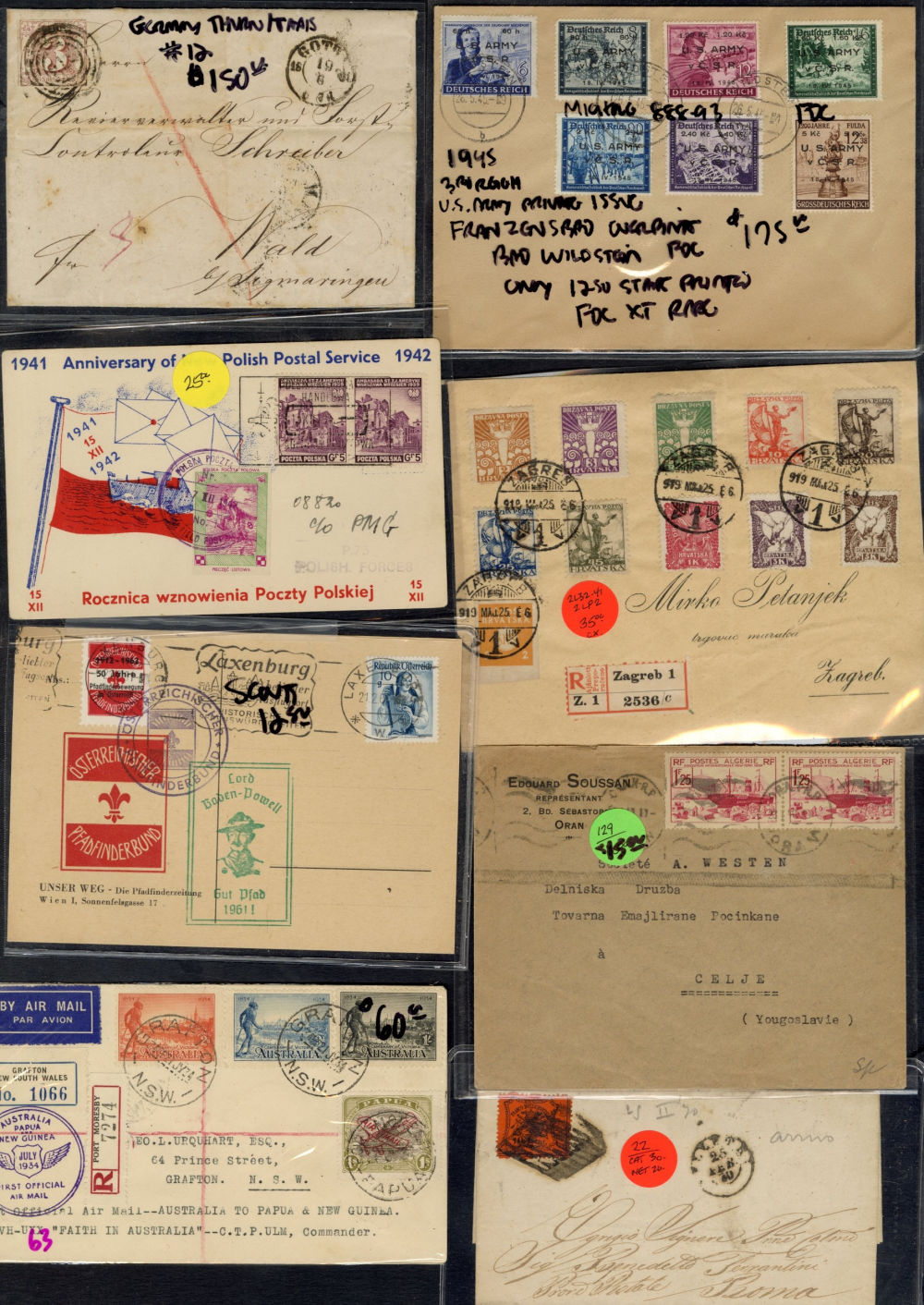 1243 c   imageWORLDWIDE COVERS and POSTAL HISTORY 1860s-1950s carton with 750+ covers or cards, many better and interesting items, British Commonwealth, Egypt, Germany, etc., many dealer-priced, with retail of $6,000+ (Image) (Image 2) (Image 3) (All Images)
