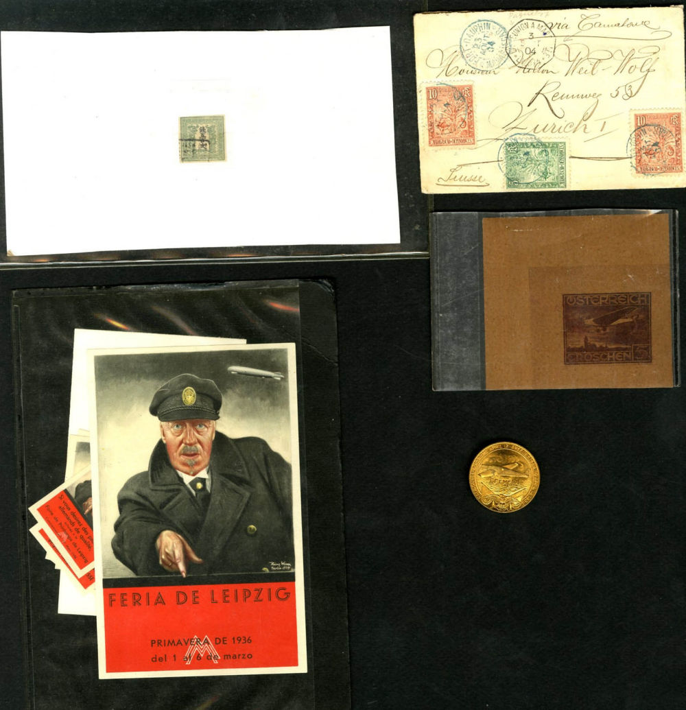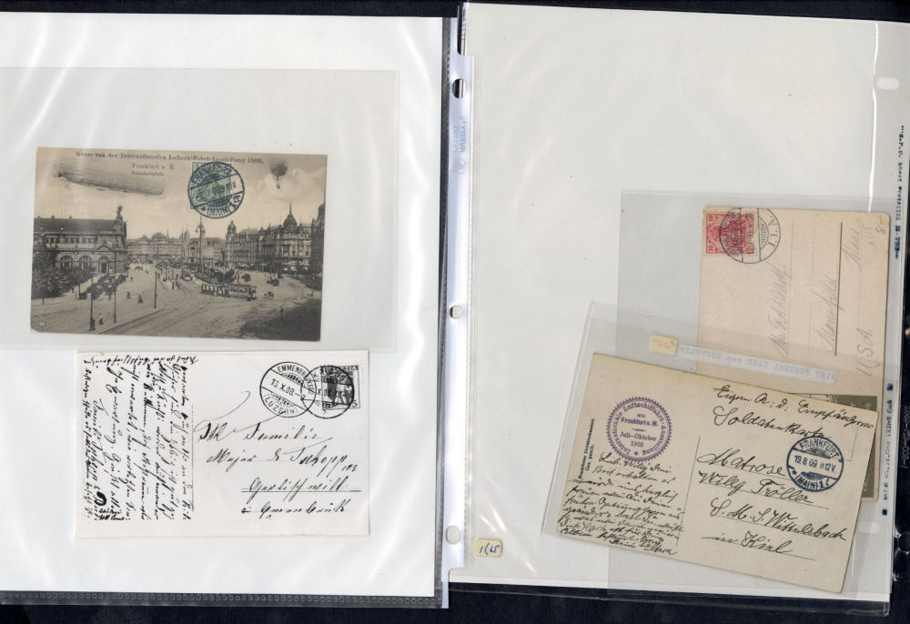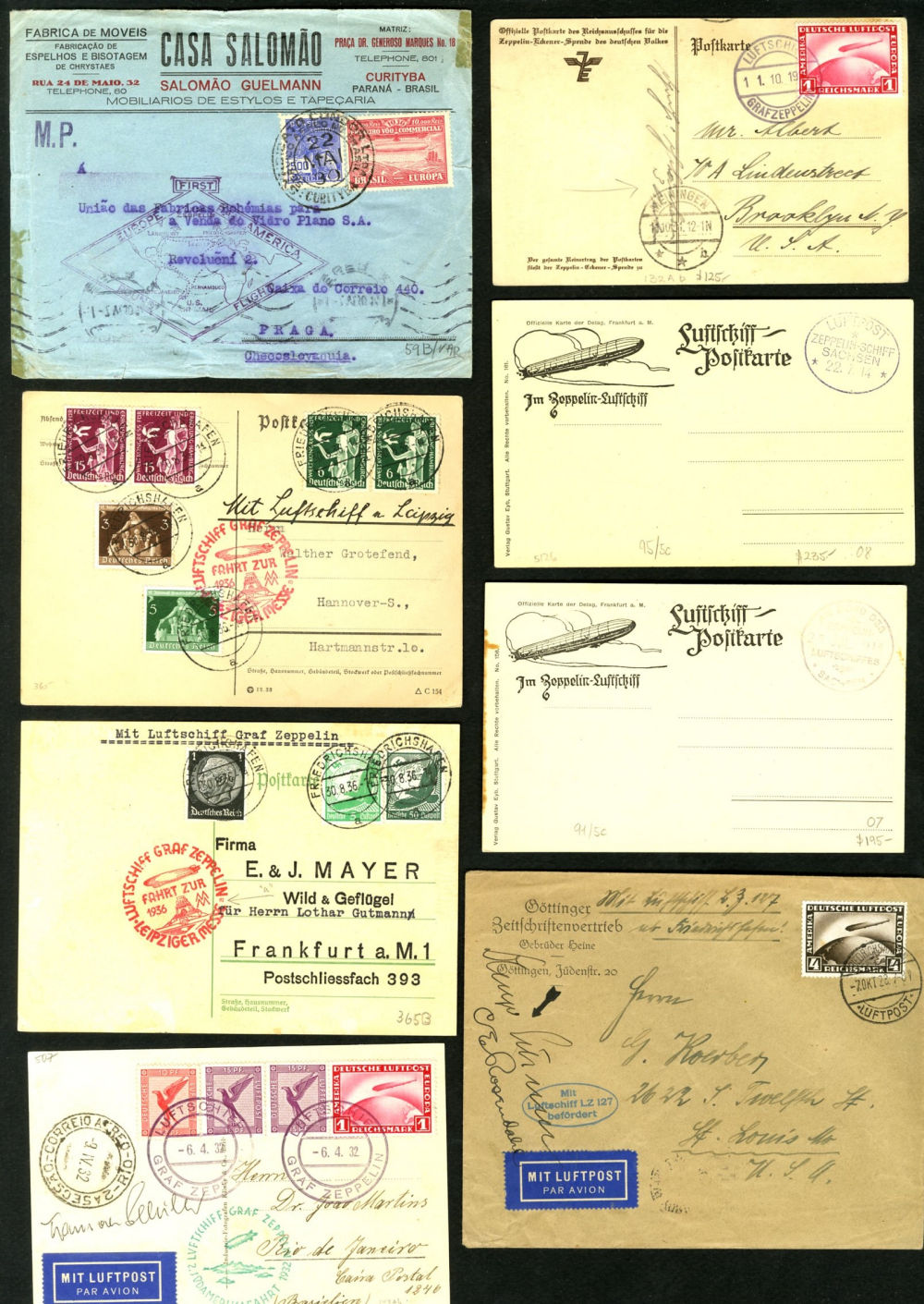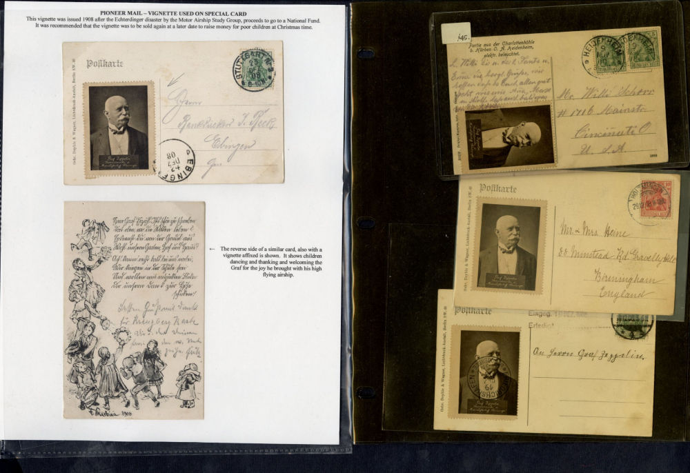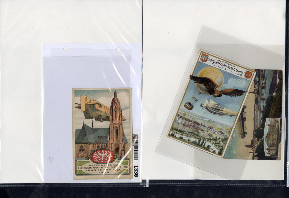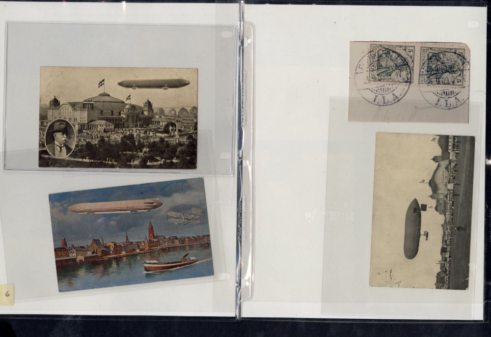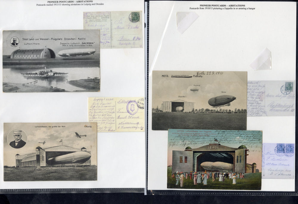 1244 c   imageWORLDWIDE COVERS and POSTAL HISTORY1909-18 collection of 160+ mostly used Zeppelin picture postcards (not flown by Zeppelin), views with Zeppelin in the air or moored at an air station, showing the early struggles of these giant oblong objects gliding through the air, almost always ending in a disaster. Most of these cards were issued at various Air shows, the 1909 International Aeronautical Exhibition (I.L.A.) and others, mostly in Germany, few other countries, many elaborate designs, embossing, extended cards, panoramic pop-up folding cards, pull-out postcards, some with additional labels, generally fine-v.f., many $100+ items, difficult to assemble (Image) (Image 2) (Image 3) (Image 4) (Image 5) (Image 6) (Image 7) (Image 8) (Image 9) (Image 10) (Image 11) (Image 12) (Image 13) (Image 14) (Image 15) (Image 16) (Image 17) (Image 18) (Image 19) (Image 20) (Image 21) (Image 22) (Image 23) (Image 24) (Image 25) (Image 26) (Image 27) (Image 28) (Image 29) (Image 30) (Image 31) (Image 32) (Image 33) (Image 34) (Image 35) (Image 36) (All Images)
