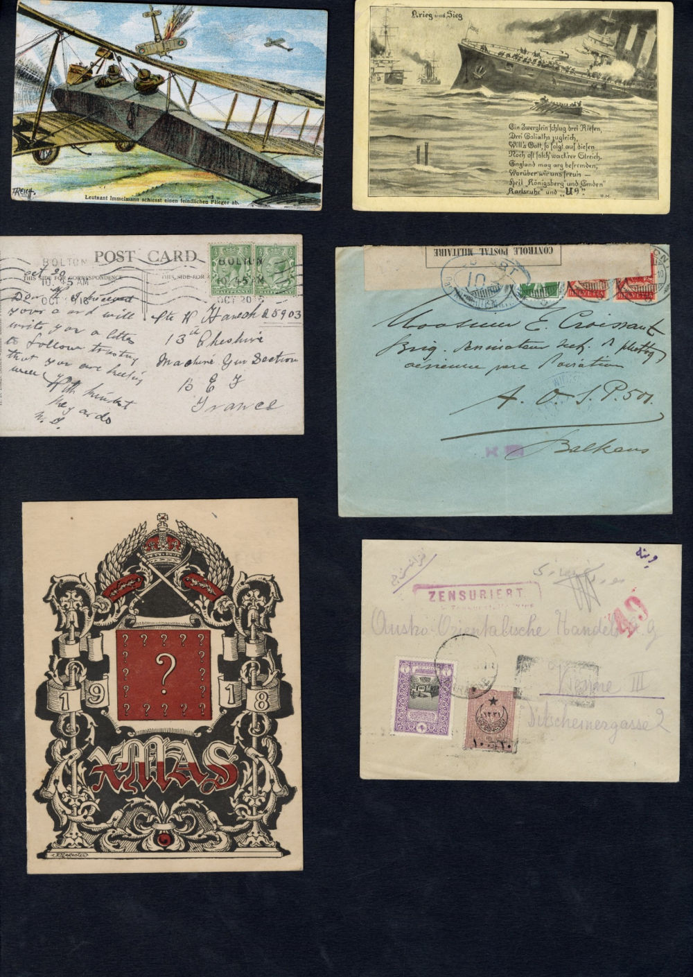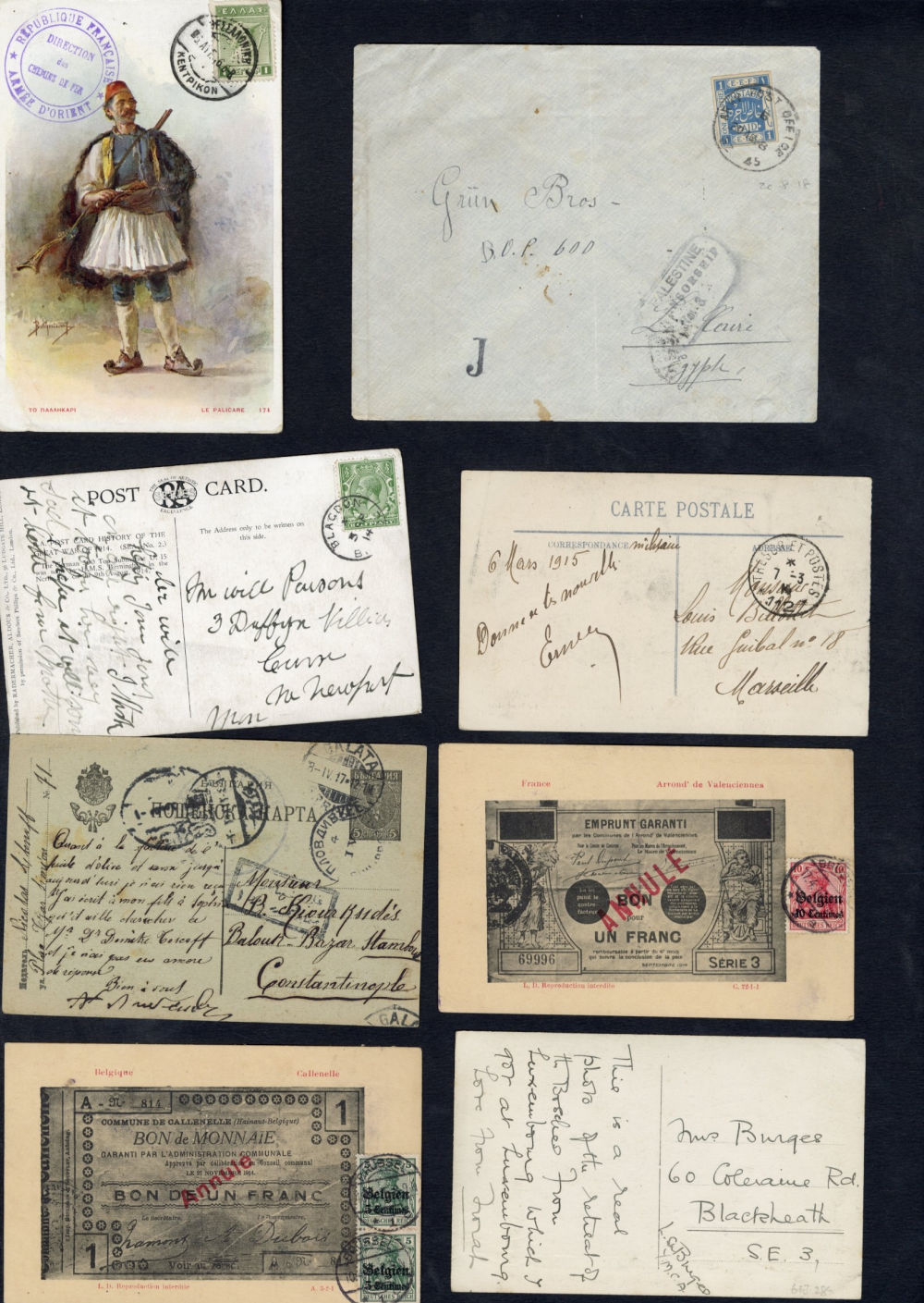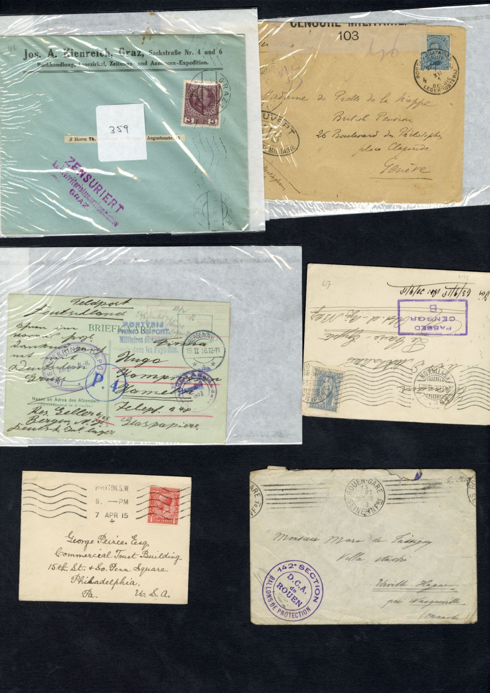 1245 c   imageWORLDWIDE COVERS and POSTAL HISTORY1914-18 selection of 14 covers or cards used during WWI, including Palestine, Ottoman, Switzerland, Great Britain, Germany, Bulgaria, etc., interesting markings, mostly fine (Image) (Image 2) (All Images)