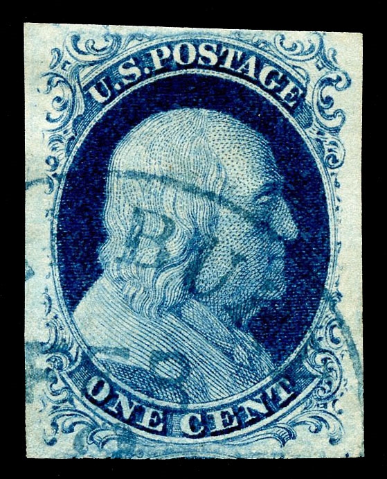 One of only five recorded proof impressions from the one-cent 1851 die—a major rarity, with two known in blue and three in black. A significant item for specialists focused on the 1851 Issue and U.S. classic proof material.