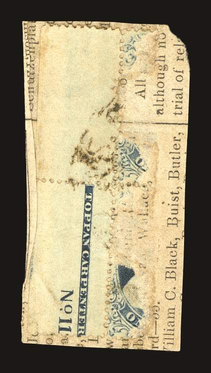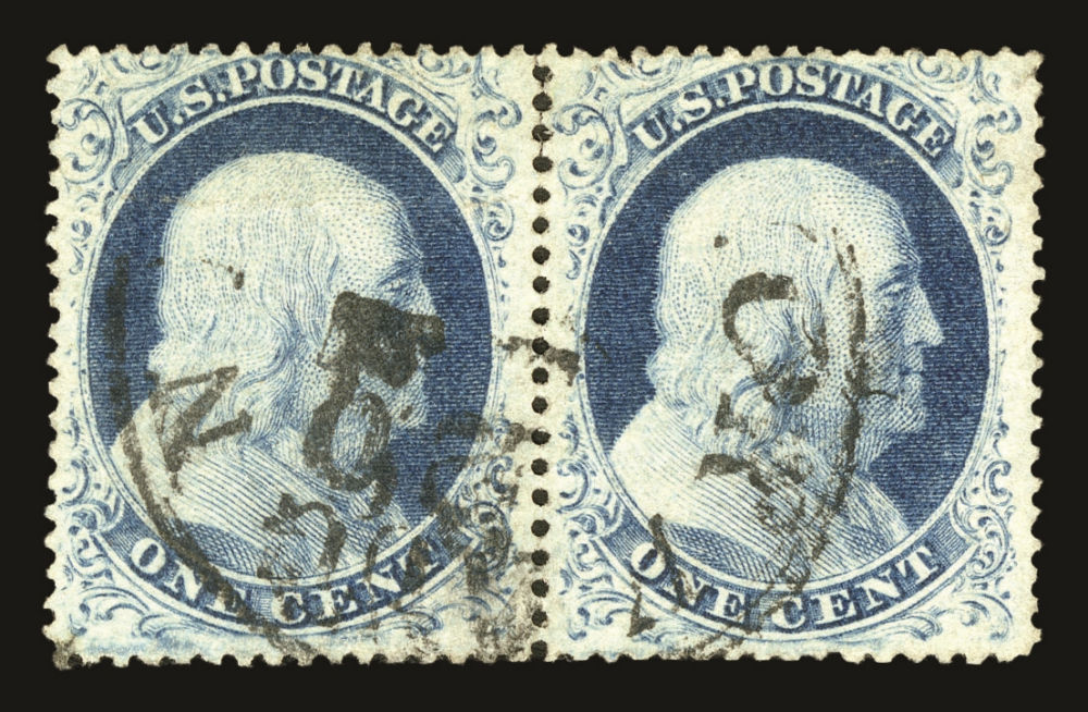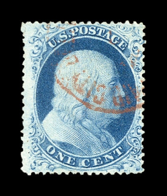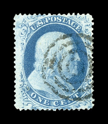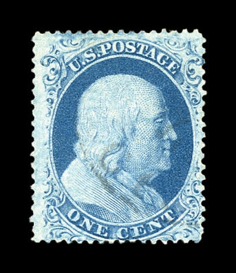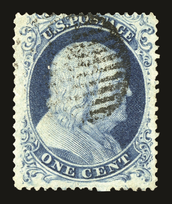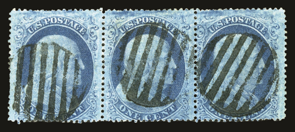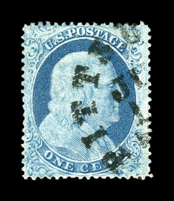 (22) Group of ten 1857-61 1¢ blue Franklin Type IIIa, used B Relief singles from Plate 11, including B Relief used by manuscript pen cancel (census B218), position 29R11 with double transfer used by red New York City carrier cancel (census B99), B Relief used by partial New York cds (census B155), B Relief used by “PAID” cancel (census B217), B Relief used by partial straightline “PAID” cancel (census B214), B Relief used by black target cancel (census B219), B Relief with double transfer used by black grid cancel (census B62), B Relief used by “PAID” in grid cancel (census B143), B Relief used by “PAID” and red cancels (census B262), and B Relief used by partial black cds (census B366). A few faults noted but overall a fine-v.f. and useful group of Plate 11 B Relief singles. All ex. Celler except for census B366, cat. value $5,300+