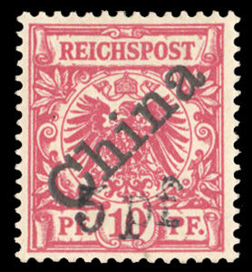 COLONIES German Offices in China - Foochow Issue (16a) 1900 5pf on 10pf carmine, l.h., v.f., signed Bothe, Pfenninger, etc. (Mi.7 IB, Euro 700) cat. value $650