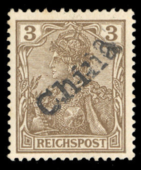 COLONIES German Offices in China - Tientsin Issue (17) 1900 3pf brown, l.h., v.f., signed Bothe, Sismondo, etc. (Mi.8, Euro 750) cat. value $600 (Image)