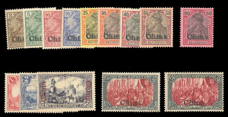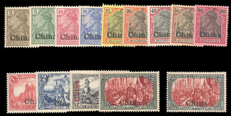 COLONIES German Offices in China (24-36b,36A) 1901 Regular Issue, complete set of 14, with 5M type Ib and Type II, l.h. or h.r., fine-v.f. (Mi.25-27II,III, Euro 710)