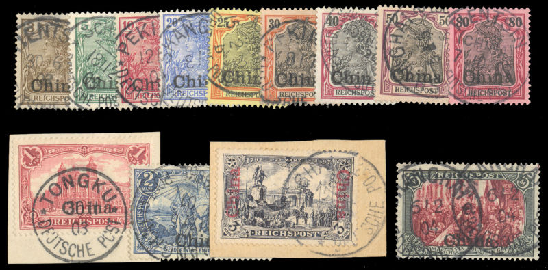 COLONIES German Offices in China (24-36b) 1901 Regular Issue, complete to 5M type Ib, used, fine-v.f. (Mi.25-27III) (Image)