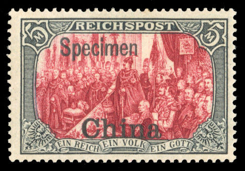 COLONIES German Offices in China (36b/S) 1901 5M overprinted Specimen, l.h., v.f. (Mi.27 II SP, Euro 300) (Image)