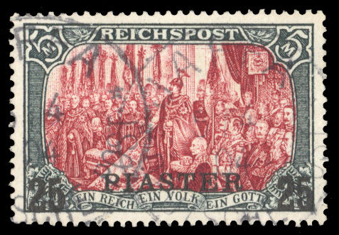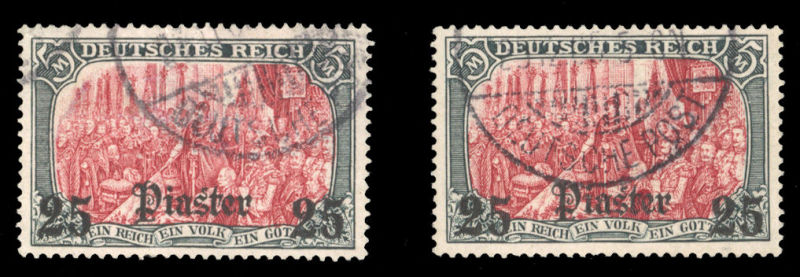 COLONIES German Offices in the Turkish Empire (42) 1905 25pi on 5m slate & carmine, used, two distinct shades, v.f., one signed Bloch, etc. (Mi.35a, Euro 1,400) cat. value $1050 (Image)