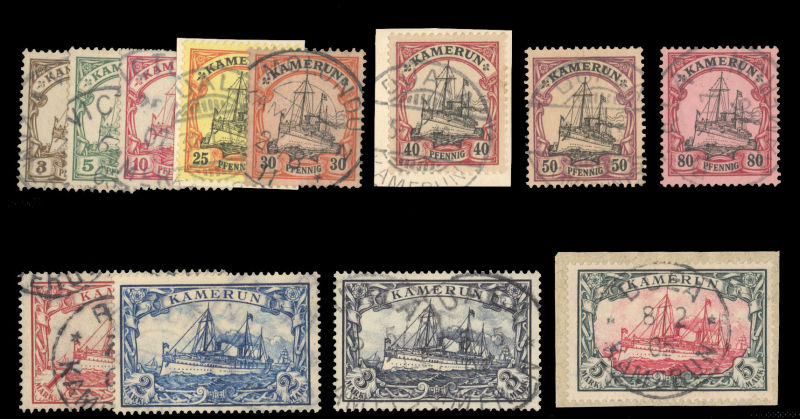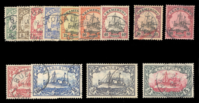 COLONIES Cameroun (7-19) 1900 Kaiser's Yacht, complete set used, top value canceled on piece by Buea pmk, fine-v.f., with Bothe certificate (Mi.Euro 950) cat. value $723