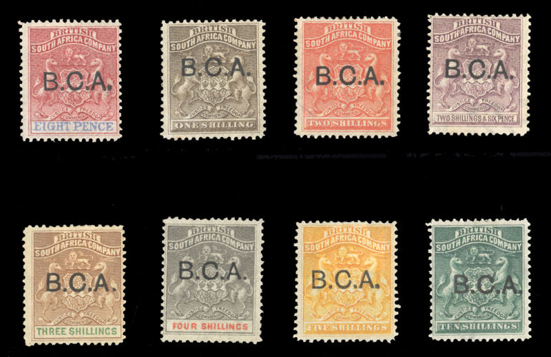 COMMONWEALTH BRITISH CENTRAL AFRICA (6-13) 1891-96 B.C.A. 8c-10sh, eight different, h.r., fine-v.f., cat. value $650 (Image)