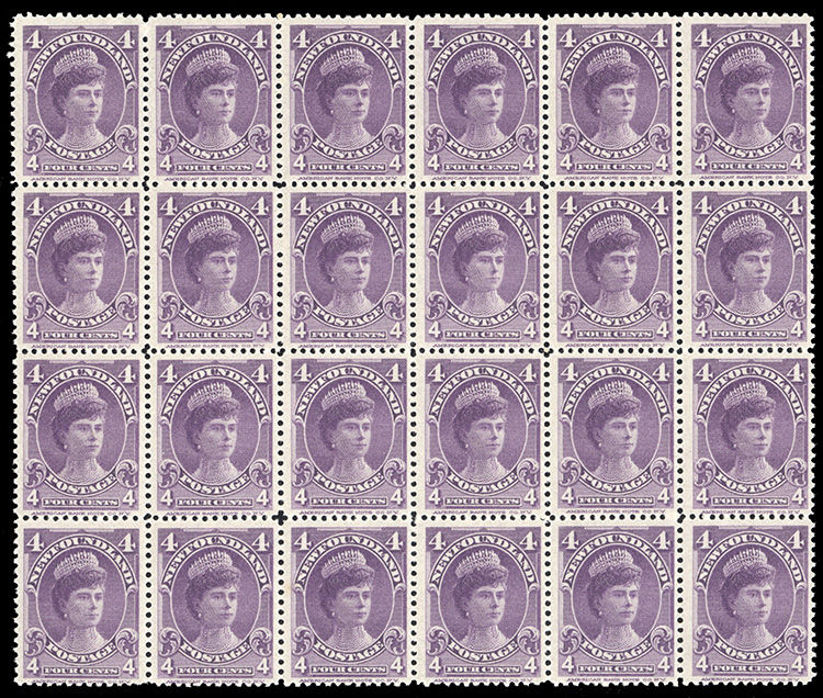 COMMONWEALTH CANADIAN PROVINCES - Newfoundland (84) 1897 4c violet, large pane of 24, n.h., post office fresh, well centered, fine-v.f., cat. value $2160 (Image)