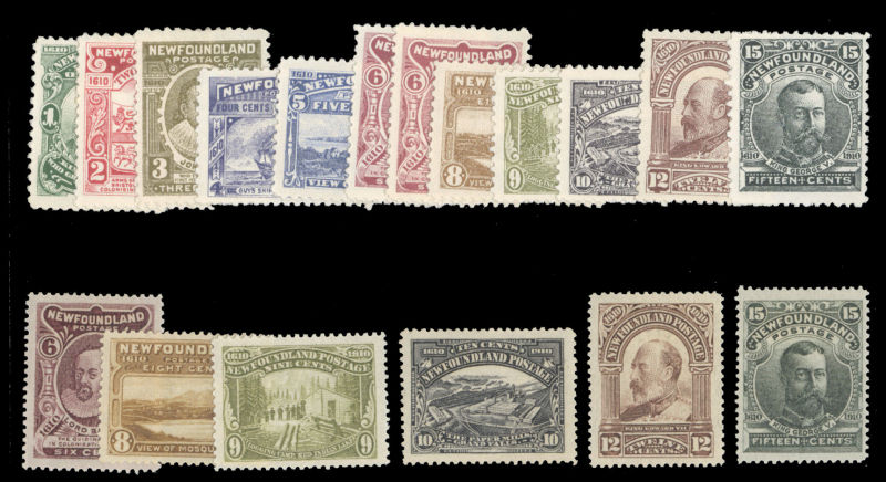 COMMONWEALTH CANADIAN PROVINCES - Newfoundland (87-97,98-103) 1910 Guy Issue complete, two sets, l.h. or h.r., fine-v.f., cat. value $1027 (Image)