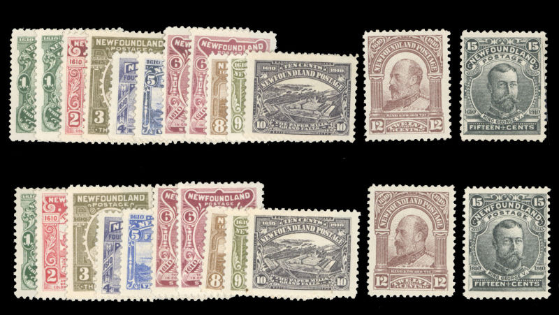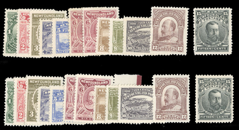 COMMONWEALTH CANADIAN PROVINCES - Newfoundland (87-97,98-103) 1910-11 Guy Issue complete, l.h. or h.r., well centered, fine-v.f., cat. value $1027 (Image)