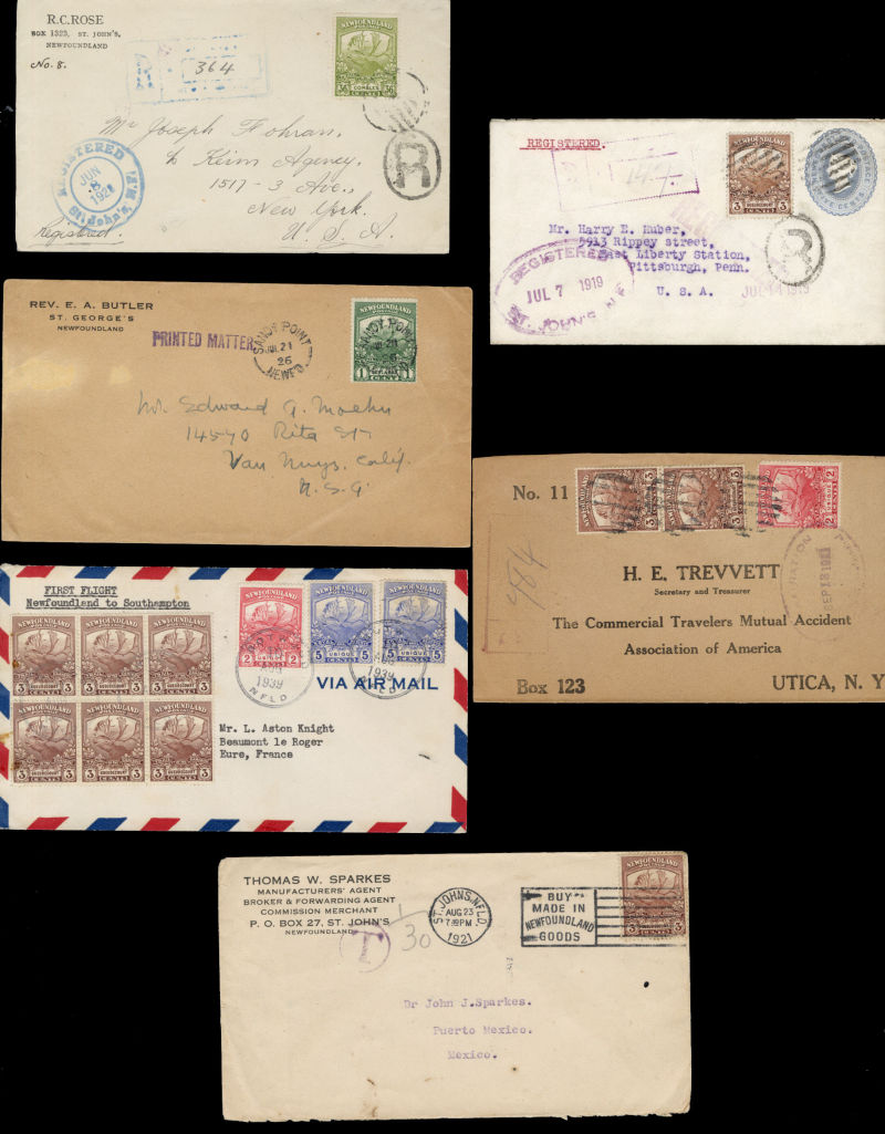 COMMONWEALTH CANADIAN PROVINCES - Newfoundland (115/26) 1919 Caribou, selection of six covers, variety of frankings, origins and destinations, mostly fine (Image)