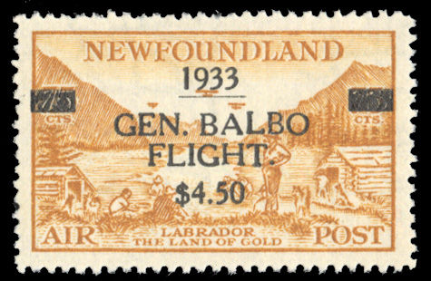 COMMONWEALTH CANADIAN PROVINCES - Newfoundland Air Post (C18) 1933 $4.50 on 75c bister, General Balbo Flight overprint, n.h., v.f., cat. value $450 (Image)