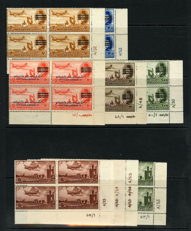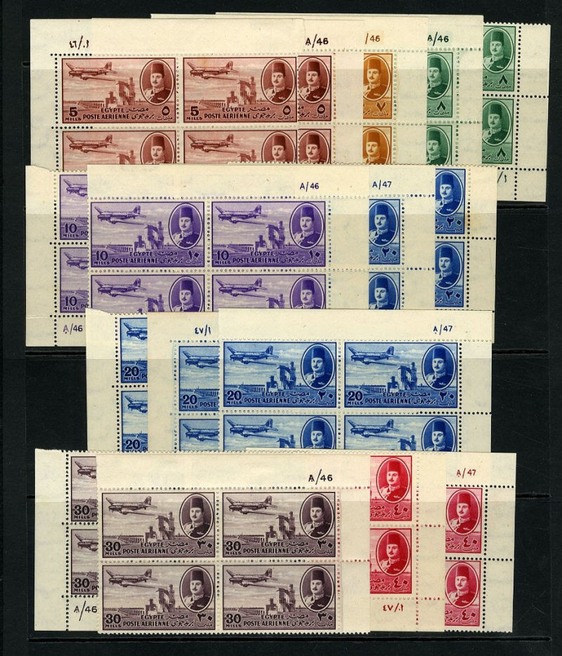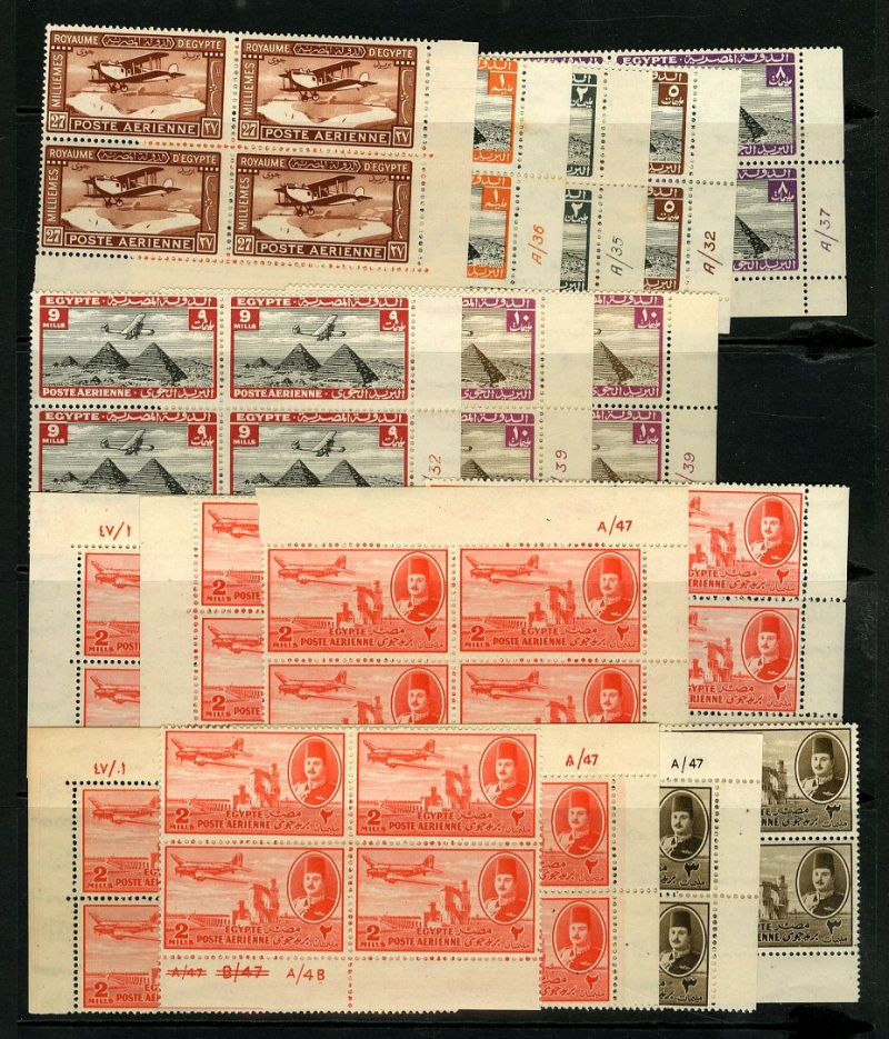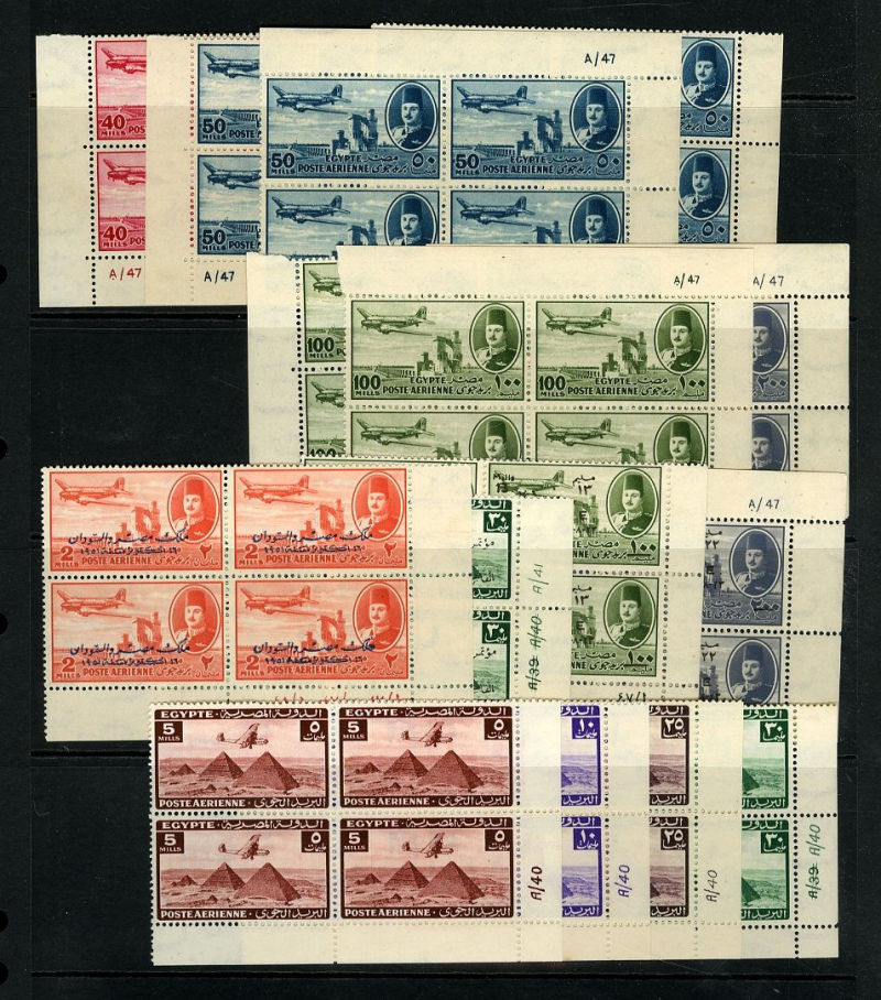 1303 og, nh, bl   imageLARGE LOTS AND COLLECTIONS EGYPT Air Post 1929-53 Control No. Blocks of four, selection of 56 different, including 1929 27m orange brown, 1947 2m-200m set of 12, with additional blocks with "dotted" control numbers, mostly n.h., fine-v.f. (Image) (Image 2) (Image 3) (Image 4) (All Images)