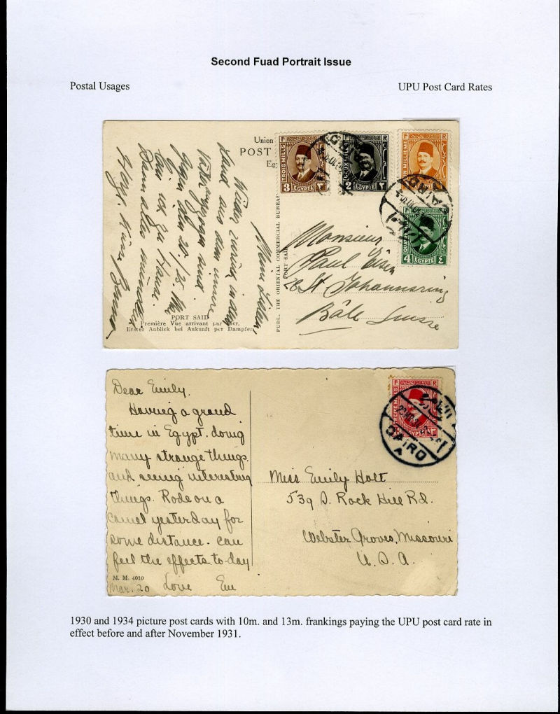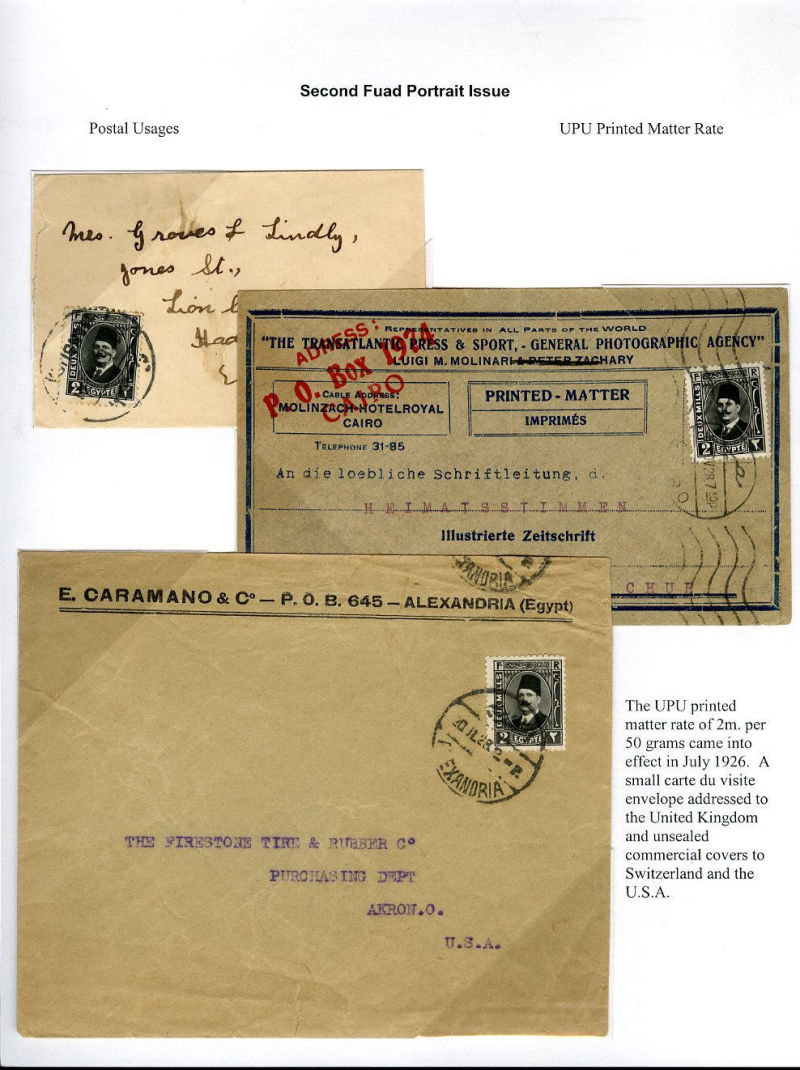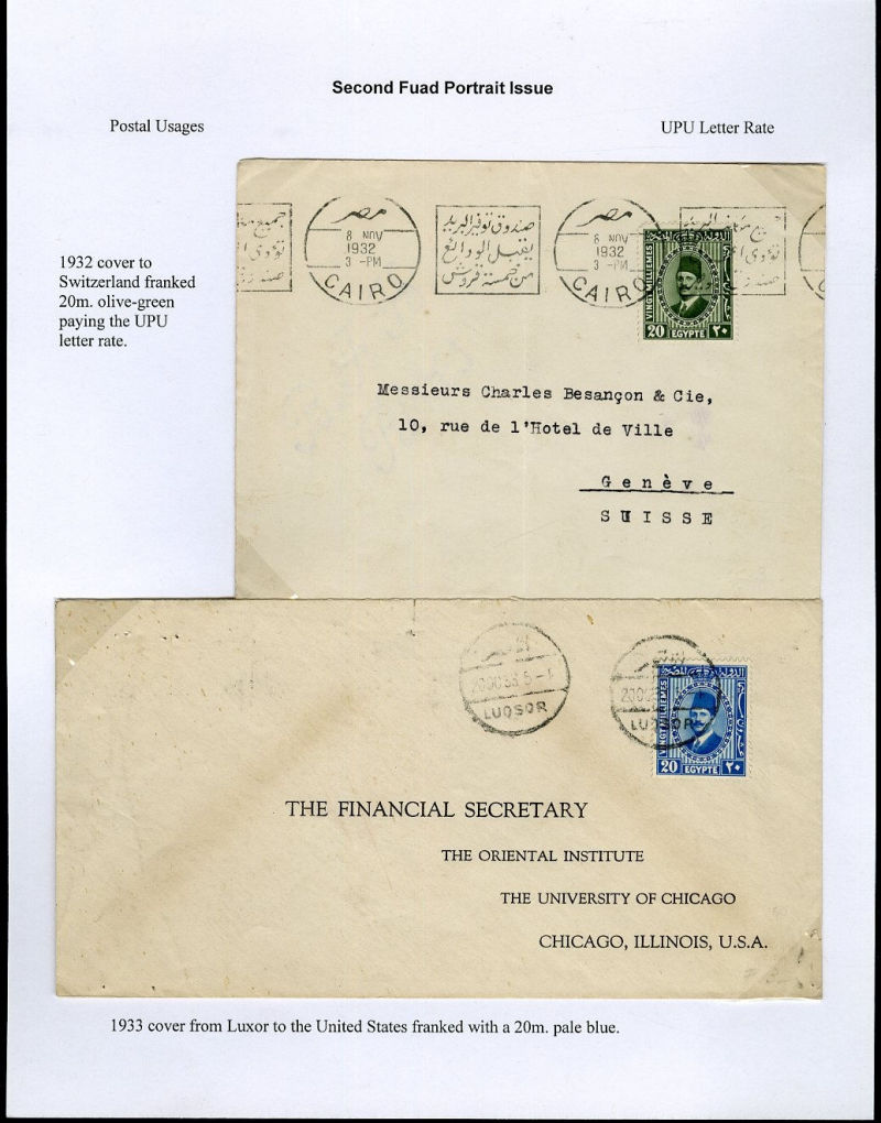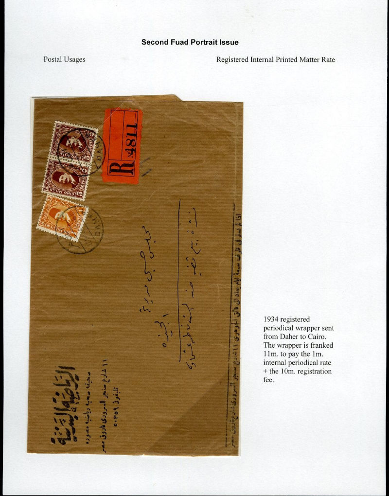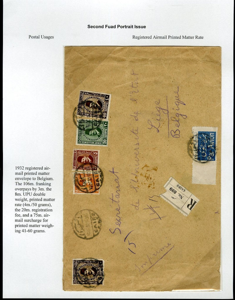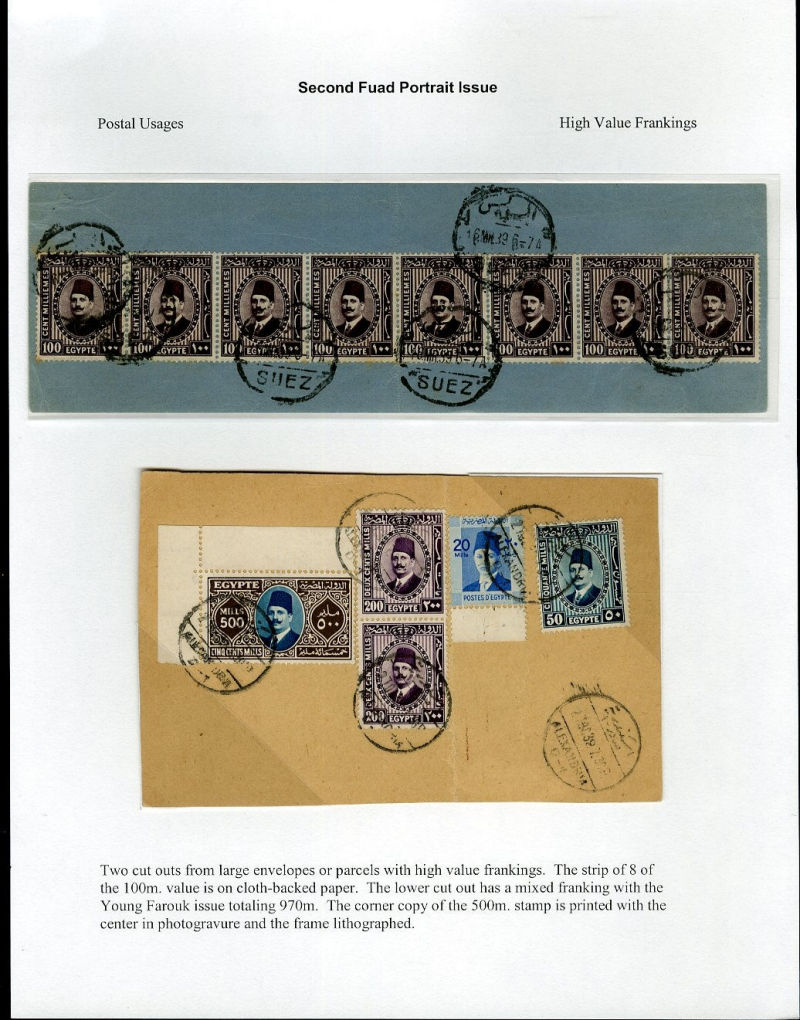 1309 c   imageLARGE LOTS AND COLLECTIONS EGYPT - Covers and Postal History 1927-35 collection of 75 covers, two parcel post cards and several pieces franked with the 1m-500m Second Fuad Portrait Issue, all mounted on exhibit pages, wide range of frankings, uncommon destinations and postal usages, fine and attractive showing (Image) (Image 2) (Image 3) (Image 4) (Image 5) (Image 6) (Image 7) (Image 8) (Image 9) (Image 10) (Image 11) (Image 12) (Image 13) (Image 14) (Image 15) (Image 16) (Image 17) (Image 18) (Image 19) (Image 20) (Image 21) (Image 22) (Image 23) (Image 24) (Image 25) (Image 26) (Image 27) (Image 28) (Image 29) (Image 30) (Image 31) (Image 32) (Image 33) (Image 34) (Image 35) (Image 36) (Image 37) (Image 38) (Image 39) (Image 40) (Image 41) (Image 42) (All Images)