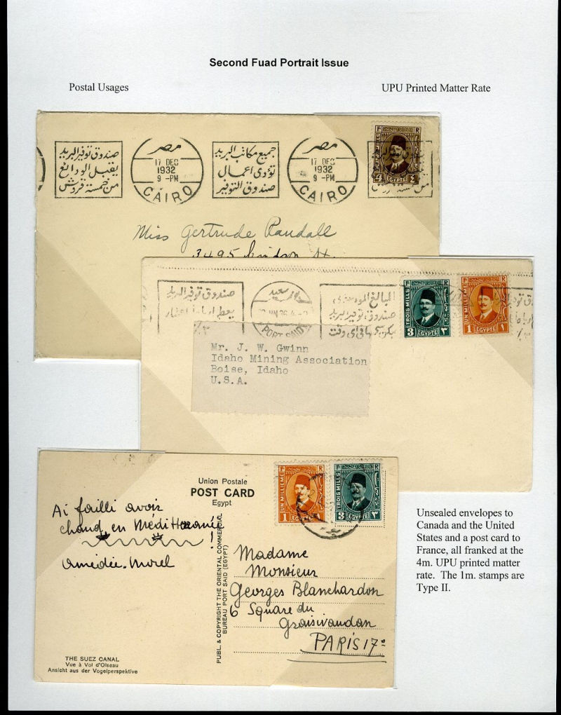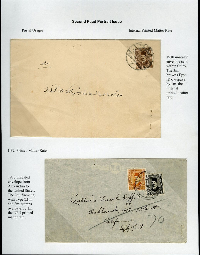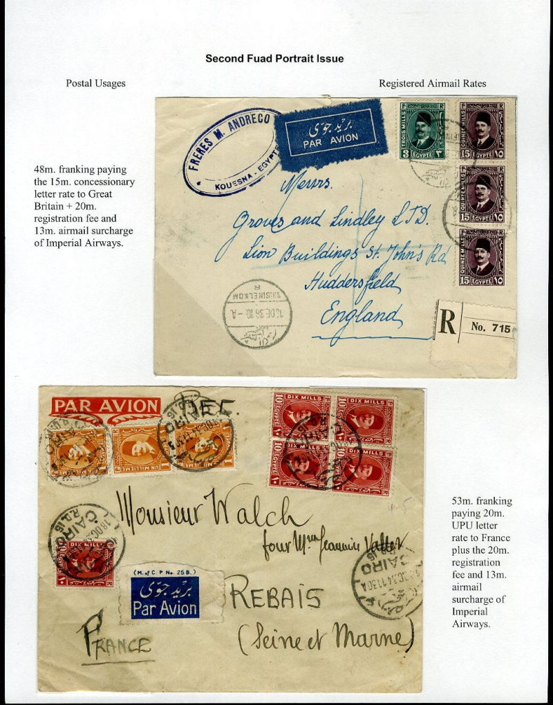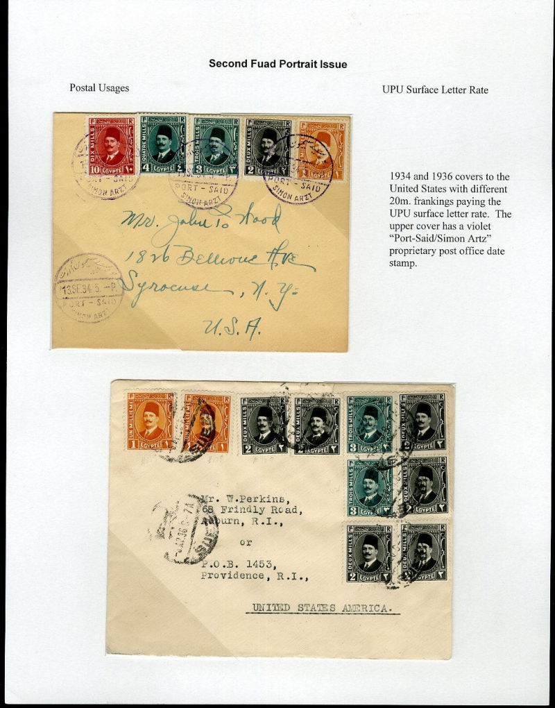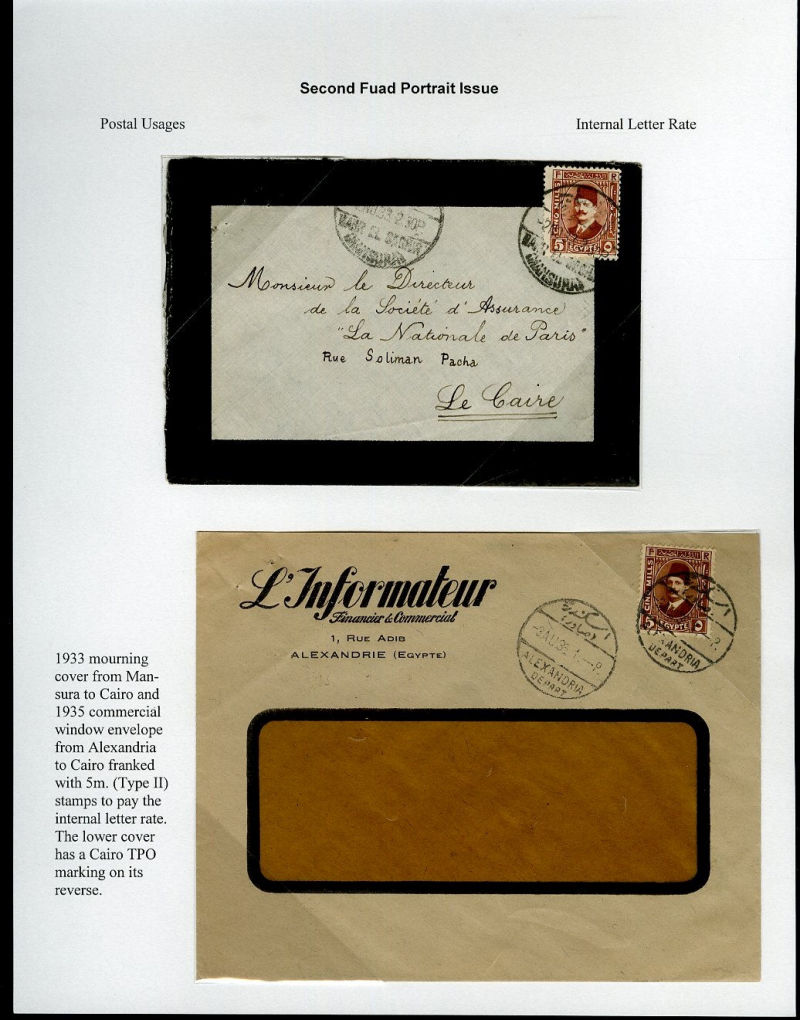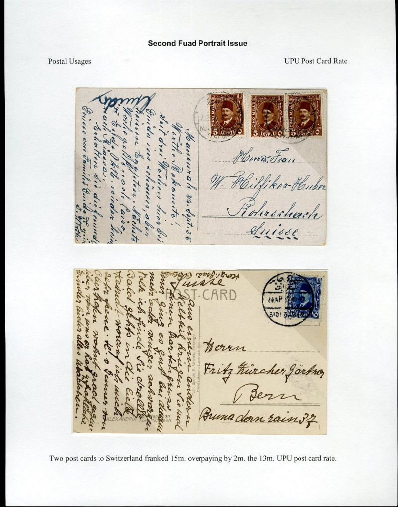 1309 c   imageLARGE LOTS AND COLLECTIONS EGYPT - Covers and Postal History 1927-35 collection of 75 covers, two parcel post cards and several pieces franked with the 1m-500m Second Fuad Portrait Issue, all mounted on exhibit pages, wide range of frankings, uncommon destinations and postal usages, fine and attractive showing (Image) (Image 2) (Image 3) (Image 4) (Image 5) (Image 6) (Image 7) (Image 8) (Image 9) (Image 10) (Image 11) (Image 12) (Image 13) (Image 14) (Image 15) (Image 16) (Image 17) (Image 18) (Image 19) (Image 20) (Image 21) (Image 22) (Image 23) (Image 24) (Image 25) (Image 26) (Image 27) (Image 28) (Image 29) (Image 30) (Image 31) (Image 32) (Image 33) (Image 34) (Image 35) (Image 36) (Image 37) (Image 38) (Image 39) (Image 40) (Image 41) (Image 42) (All Images)